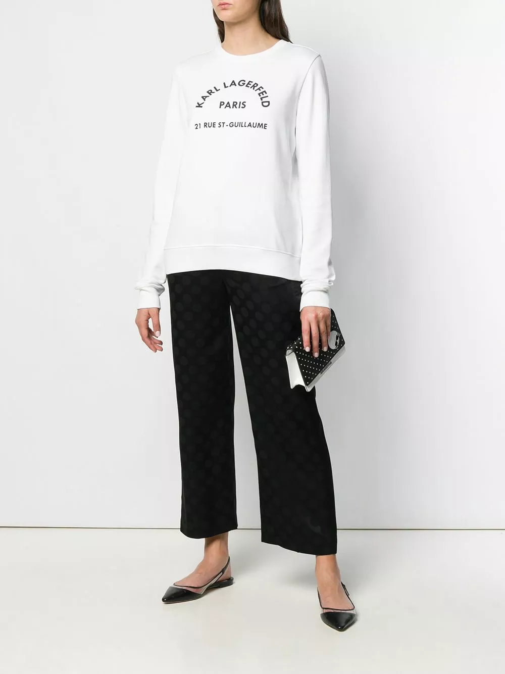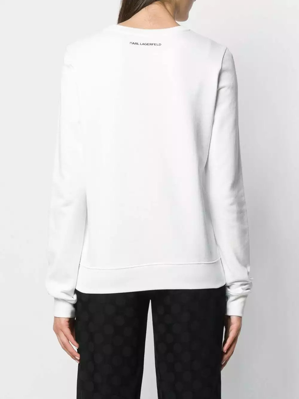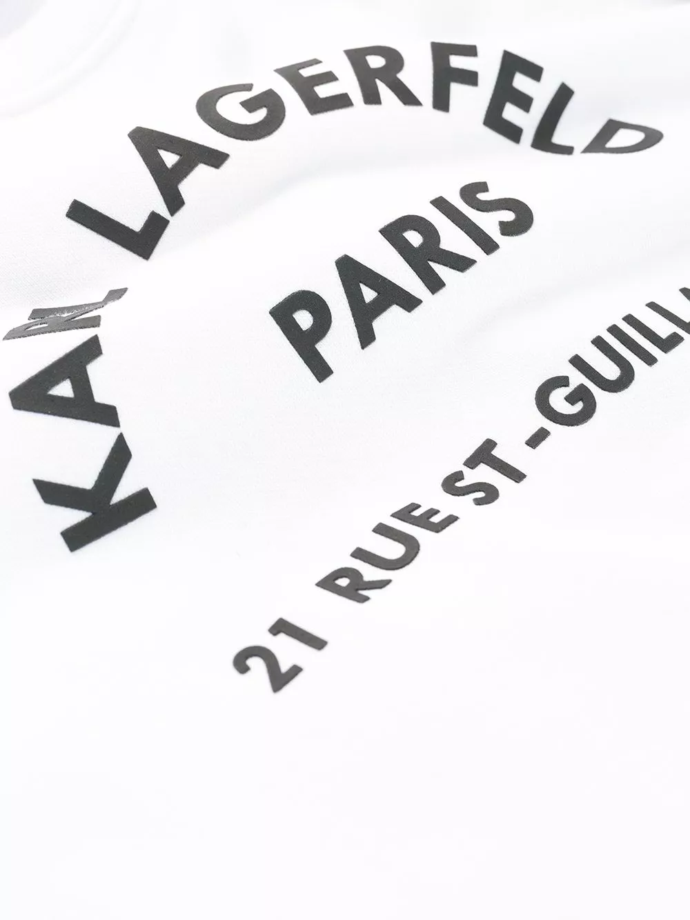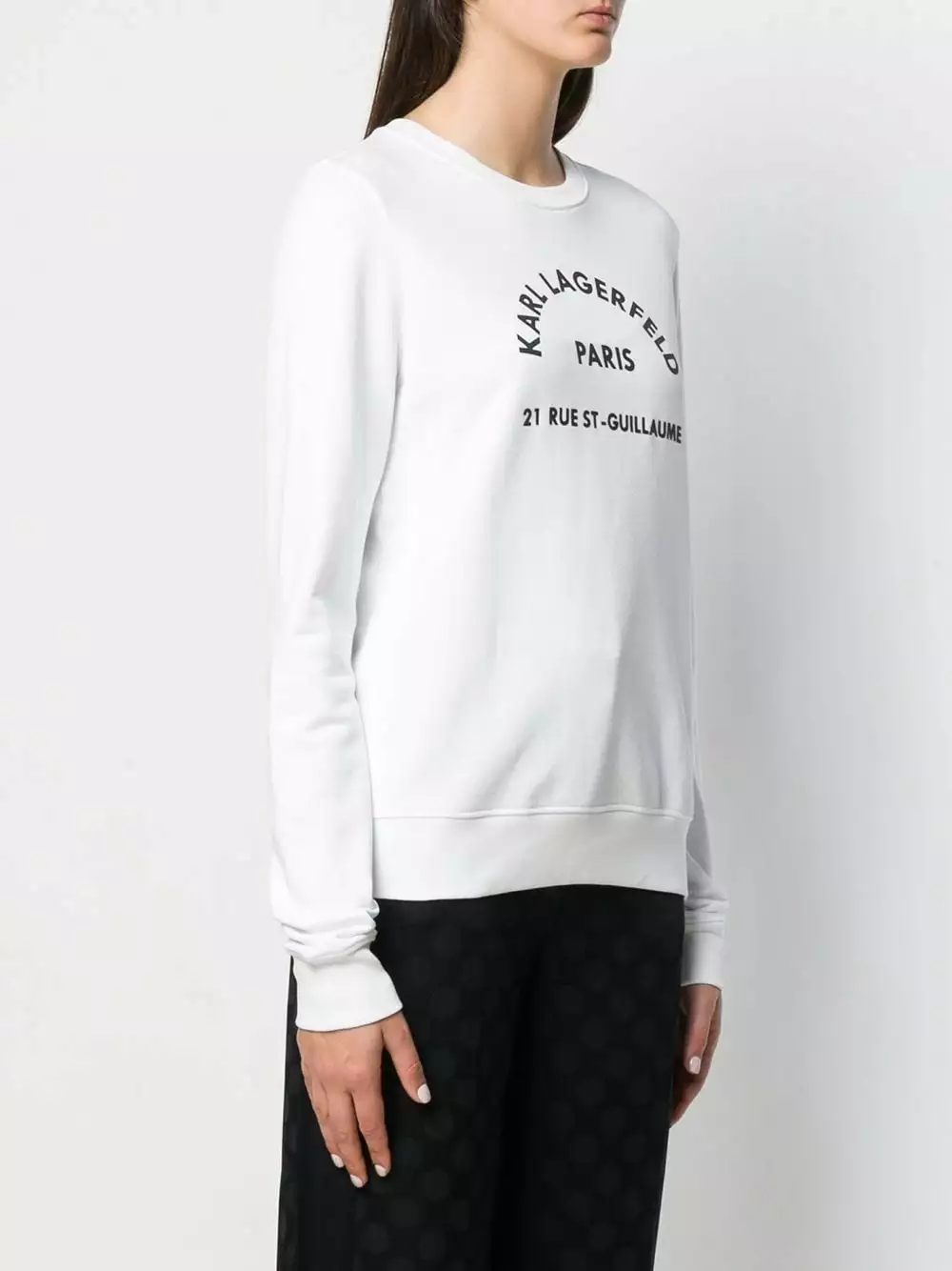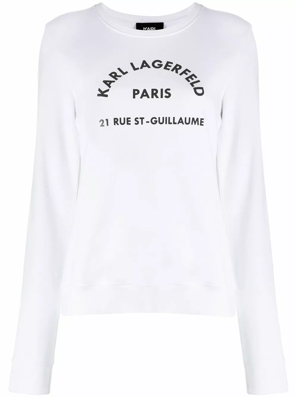 White cotton Address Logo sweatshirt from Karl Lagerfeld featuring a round neck, long sleeves and a ribbed hem and cuffs.