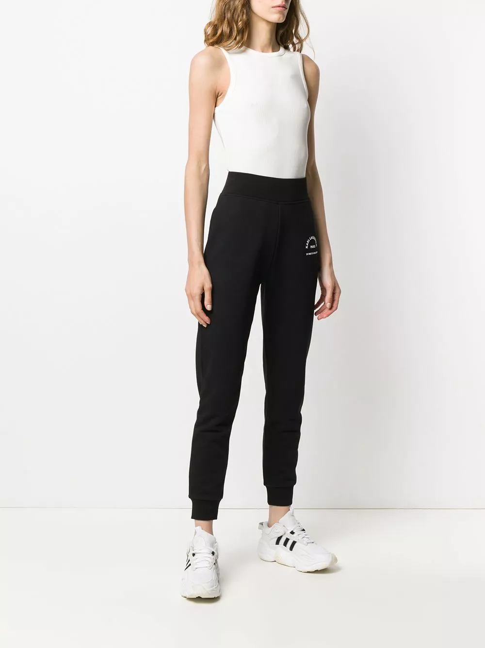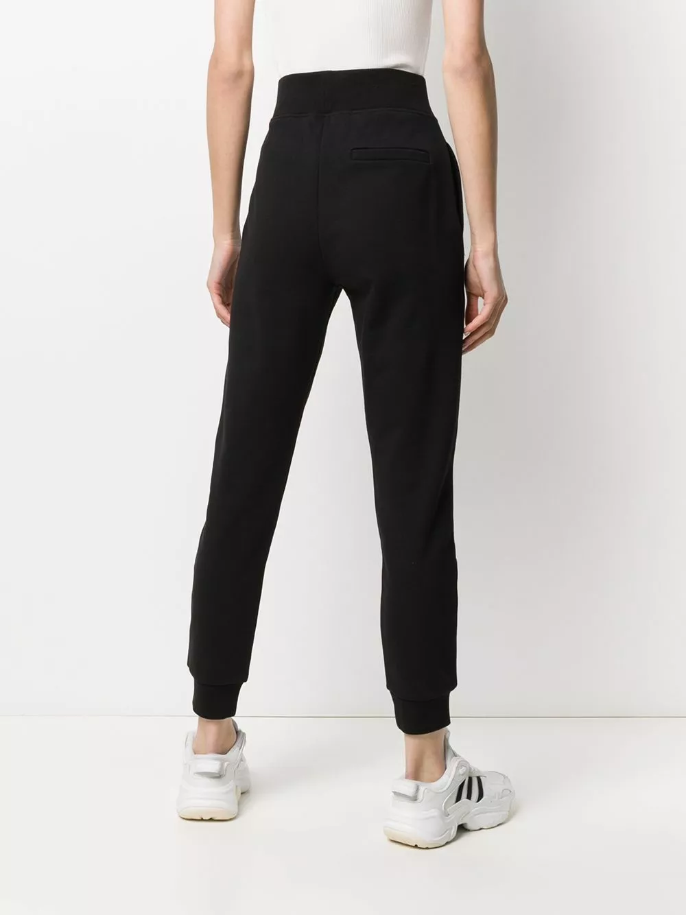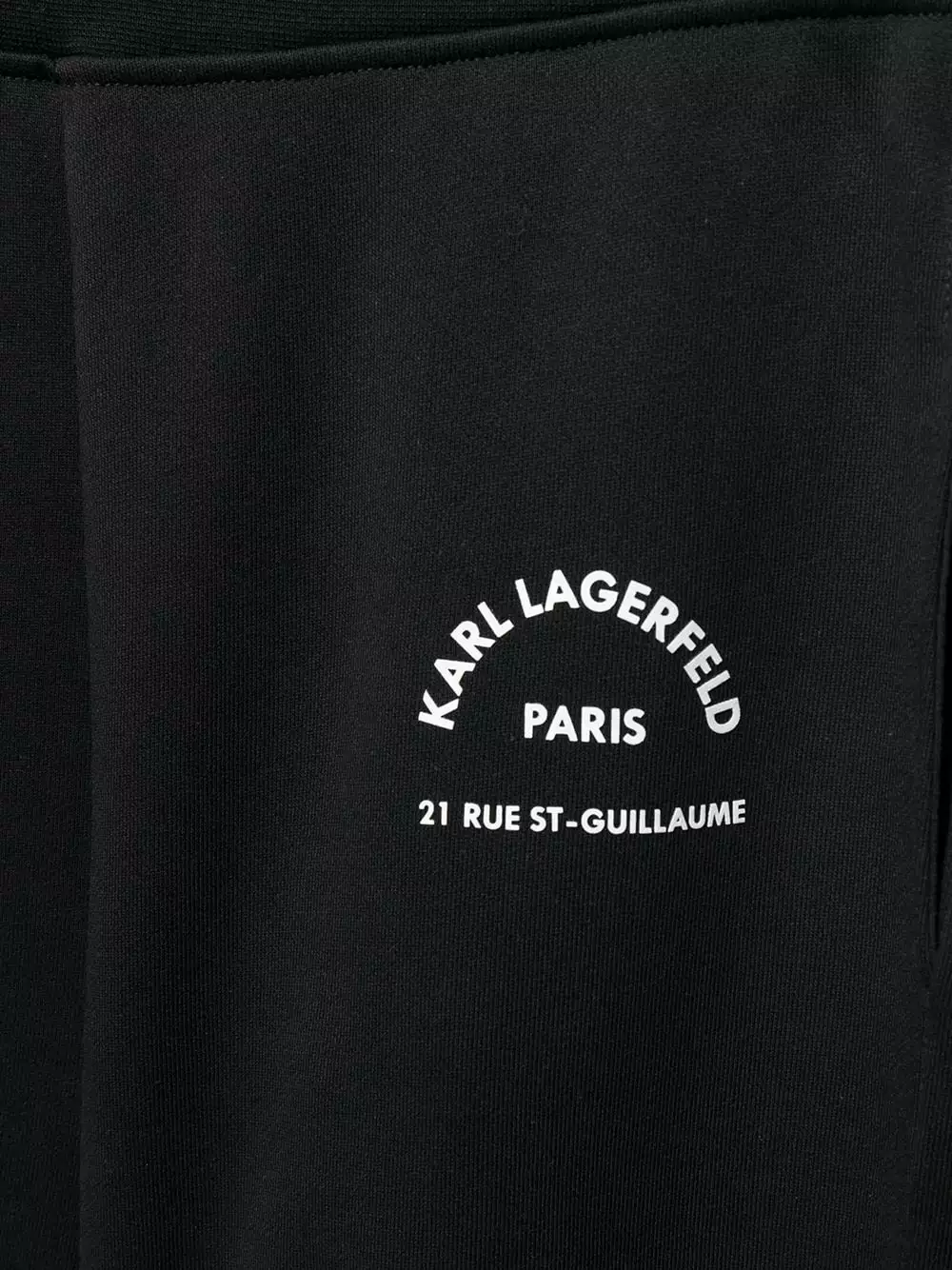 Black cotton Address logo track pants from Karl Lagerfeld featuring an elasticated waistband, side pockets and ribbed cuffs.