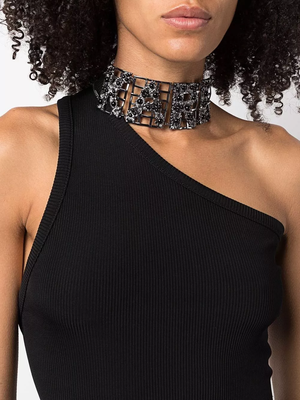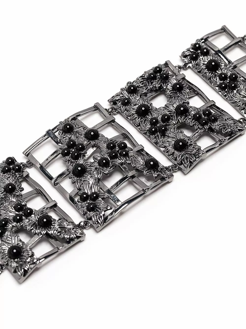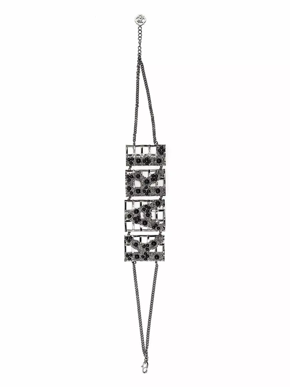 Offering a retro, nostalgic air is this logo choker necklace from Karl Lagerfeld. Made from gunmetal-tone brass, the style has a floral-embellished facade with bead detailing.