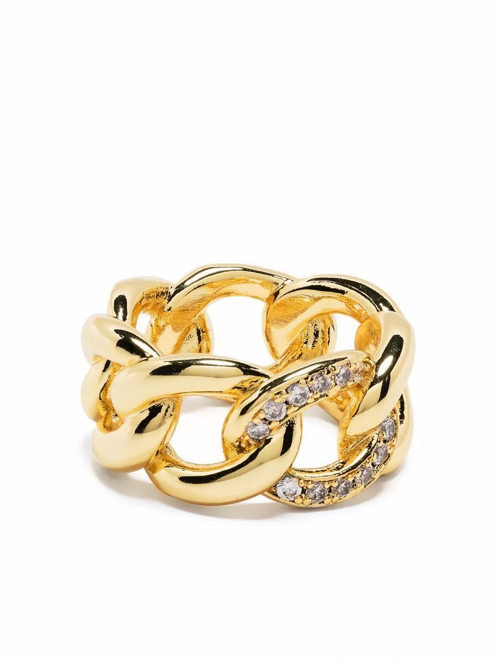 In a chain-link construction, this gold-tone ring from Karl Lagerfeld is finished with shimmering crystal embellishments.