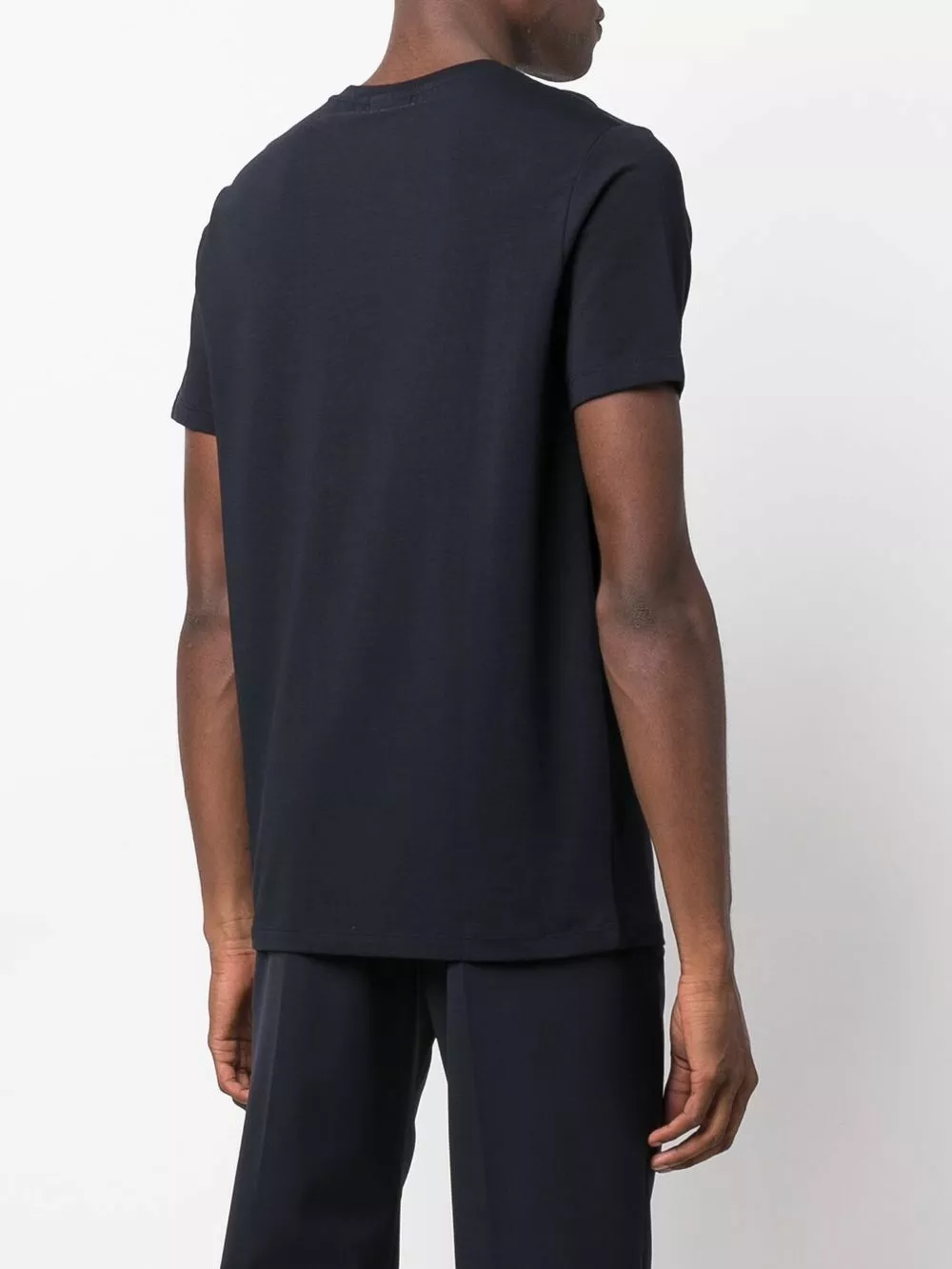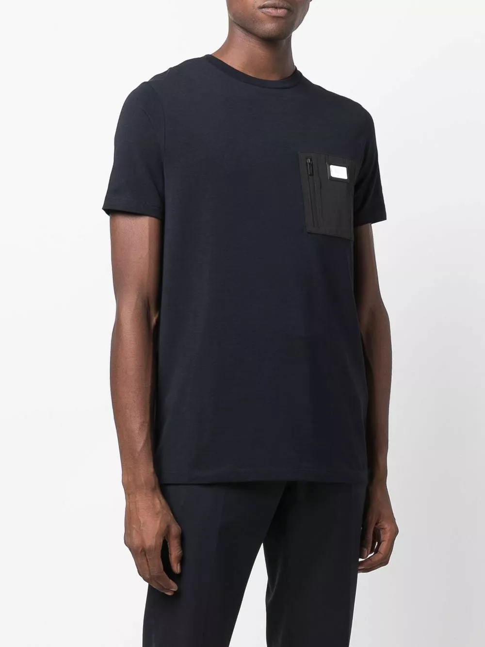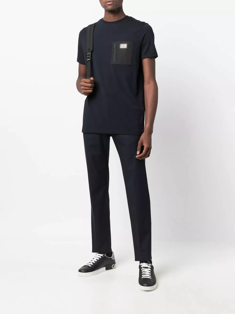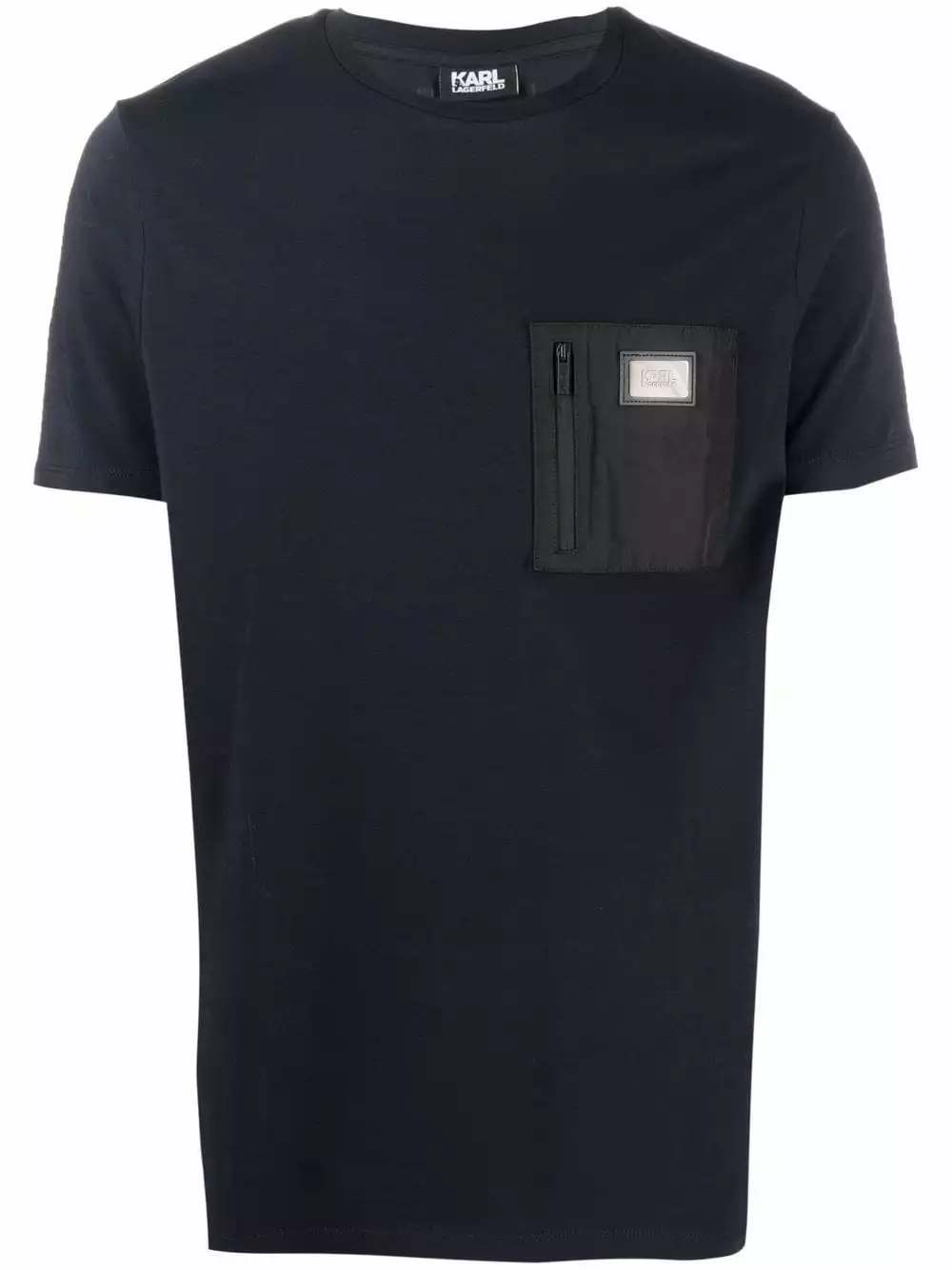 Blue cotton chest logo-patch T-shirt from KARL LAGERFELD featuring logo patch at the chest, zip-fastening pocket, round neck, short sleeves and straight hem.