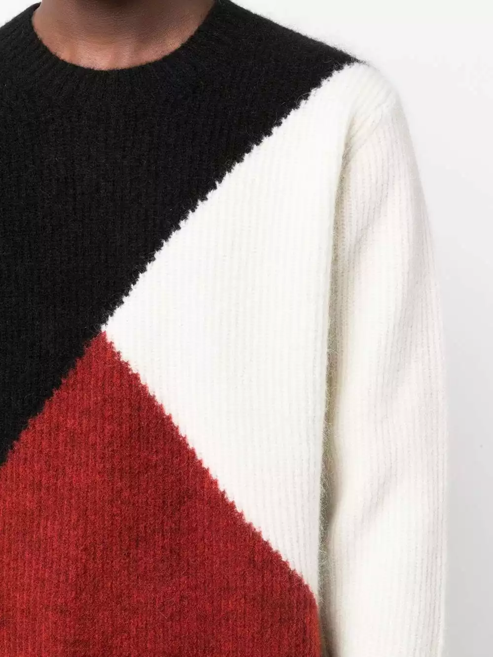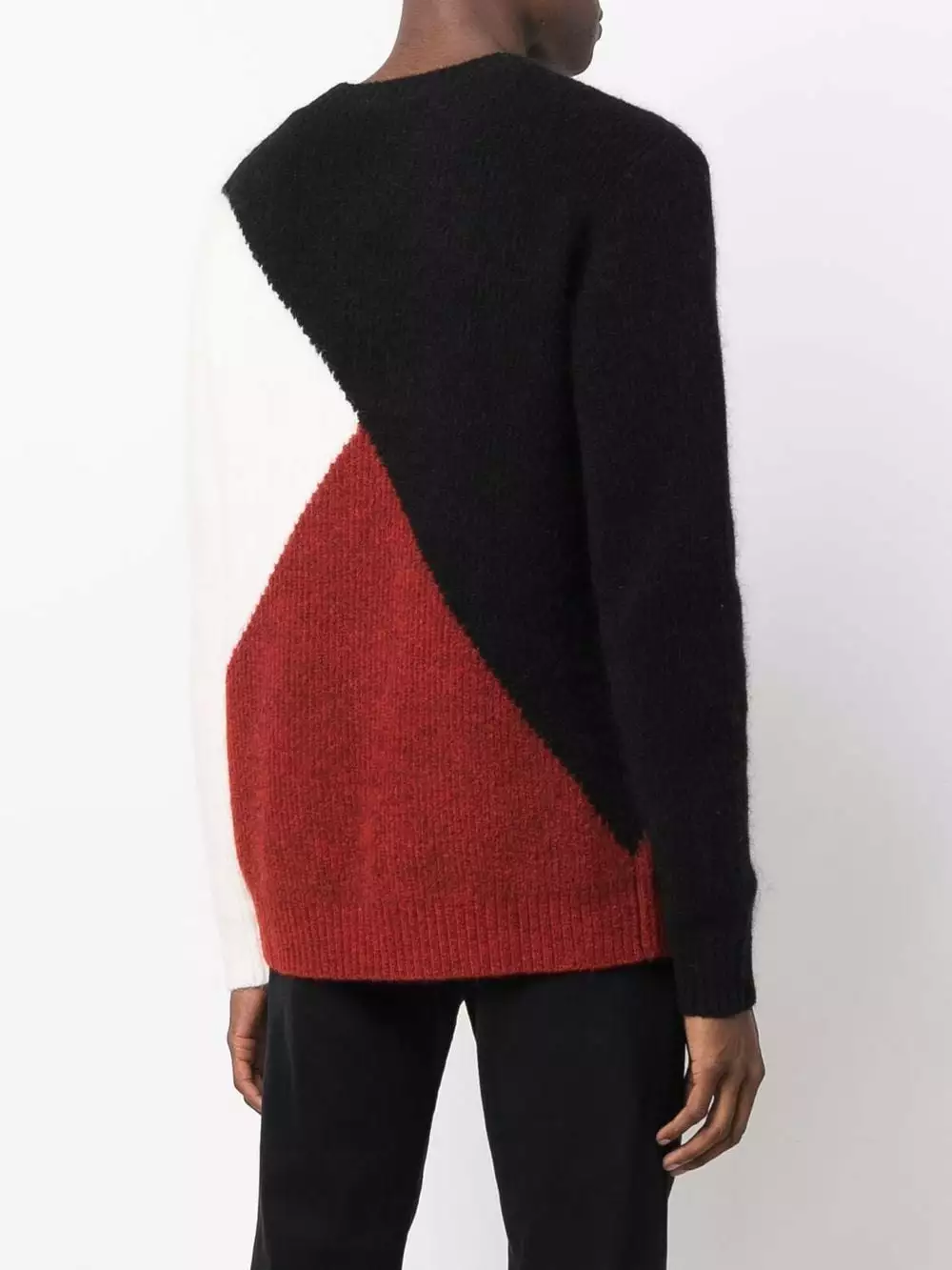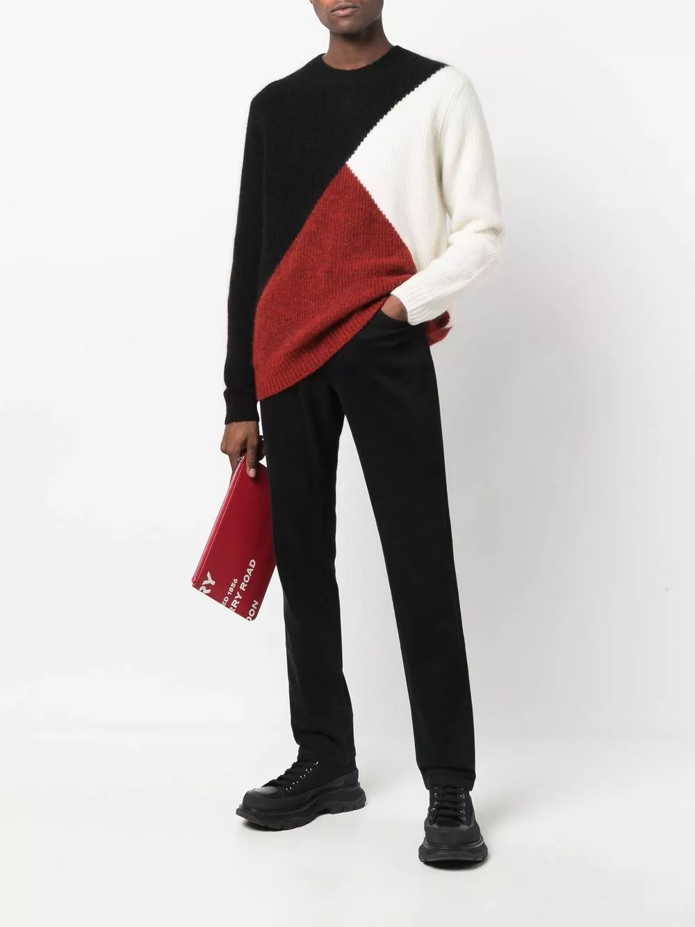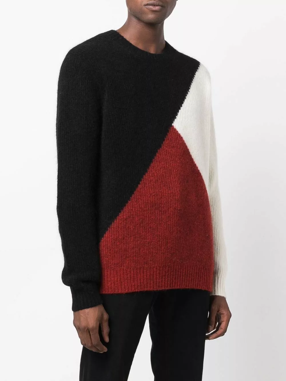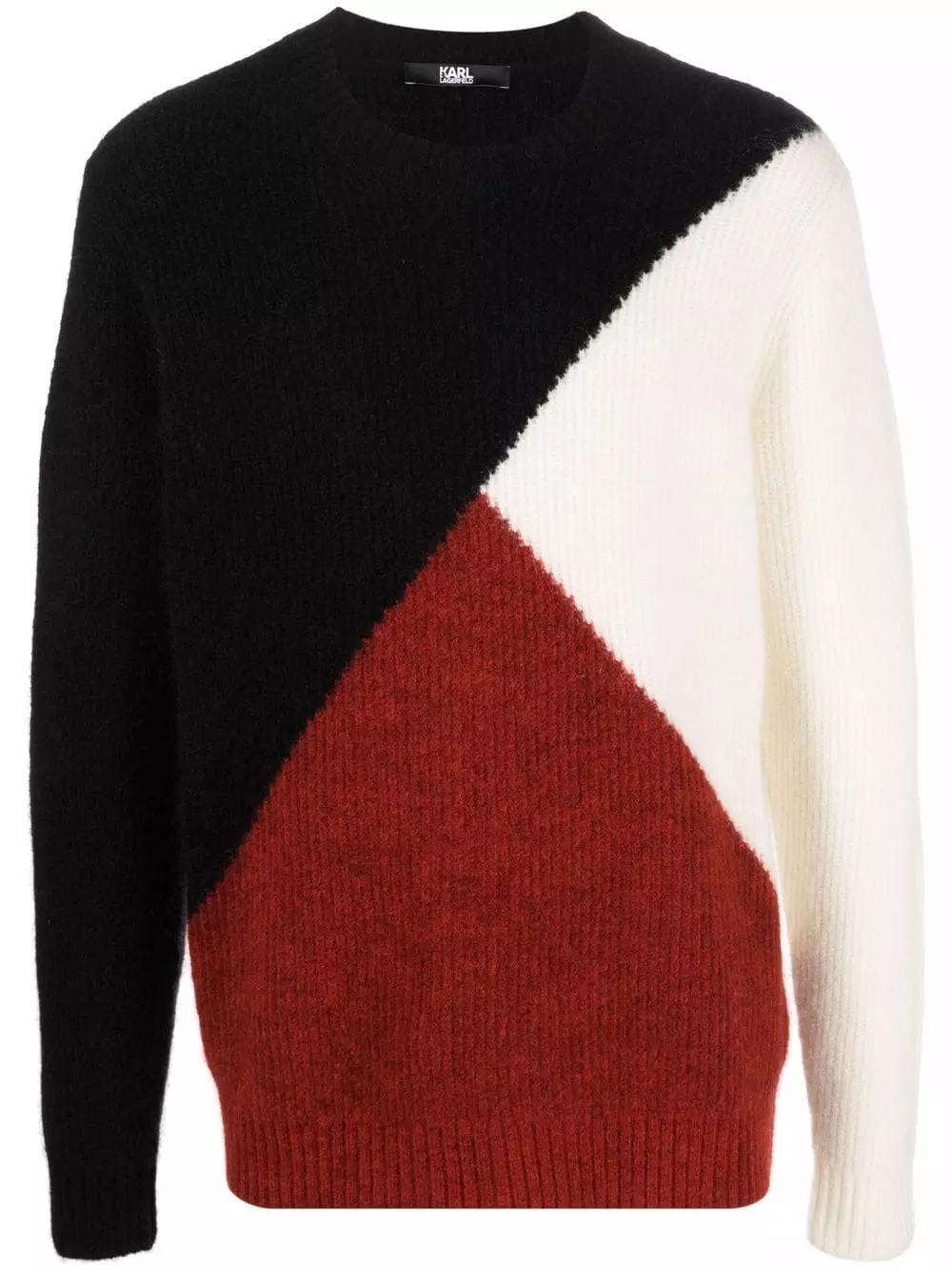 Black/white wool/mohair colour-block knit jumper from KARL LAGERFELD featuring ribbed detailing, colour-block panelled design, round neck, long sleeves and straight hem.