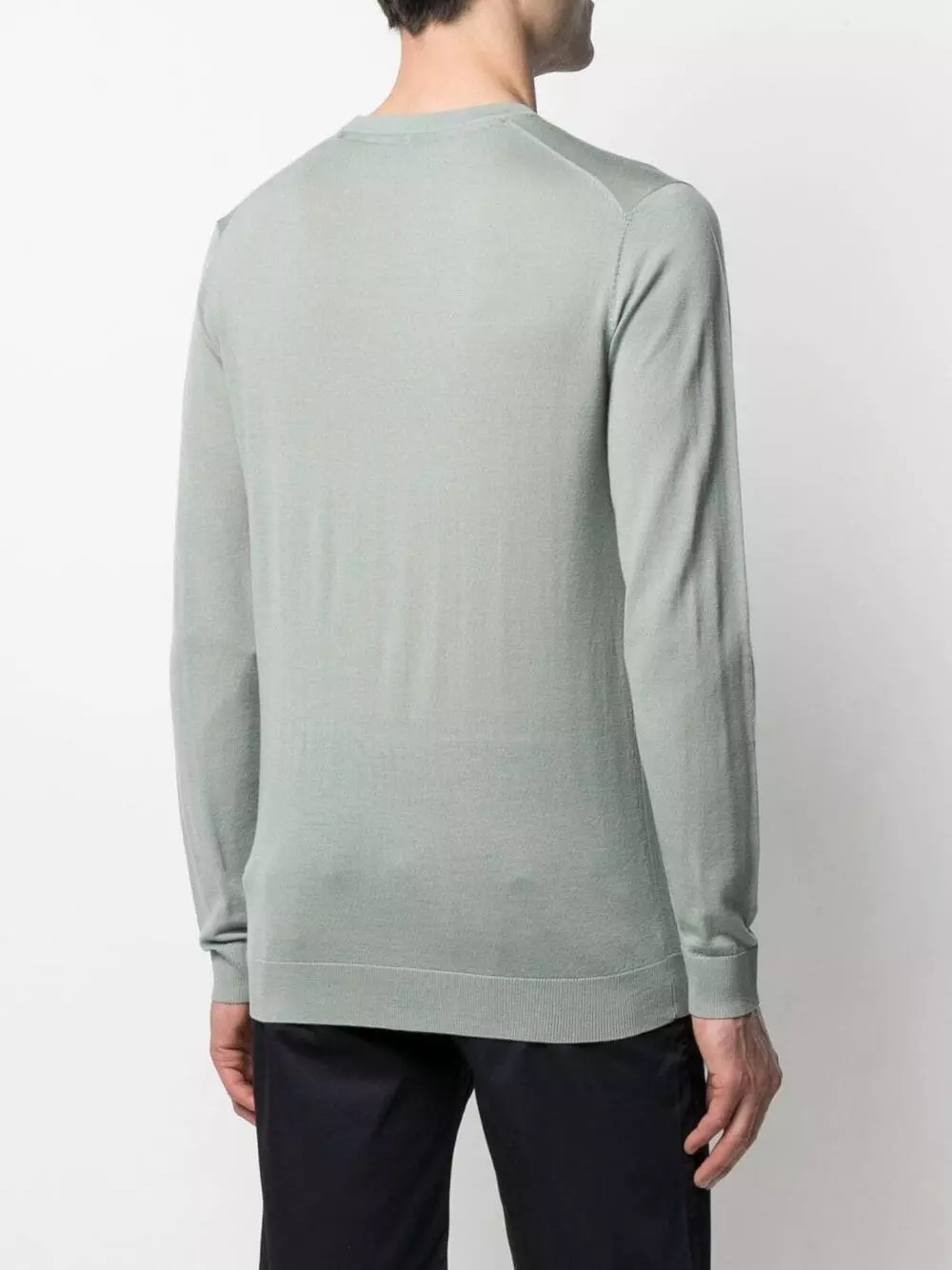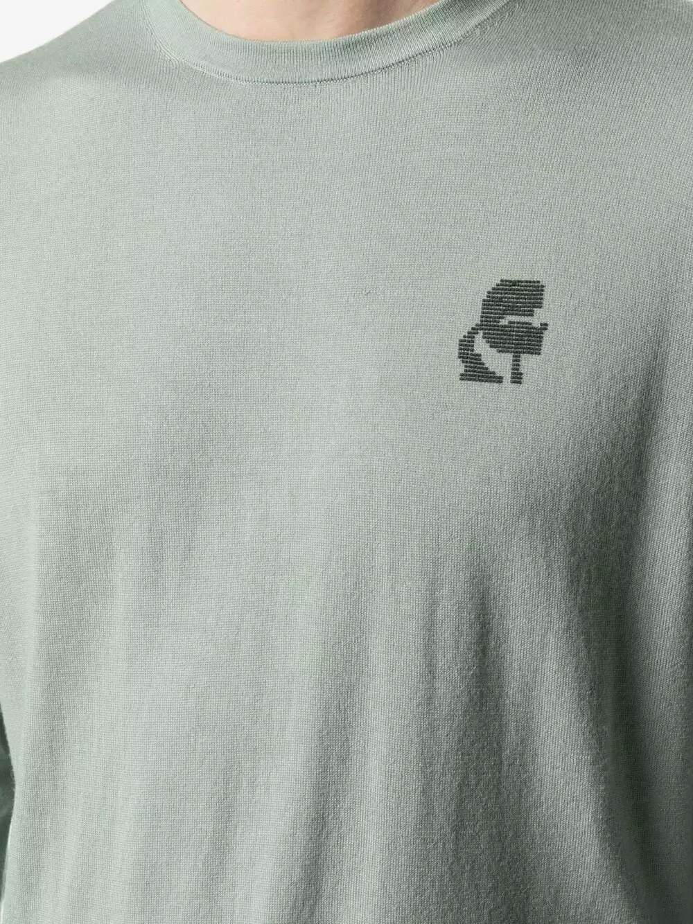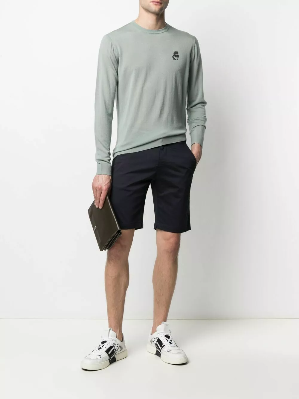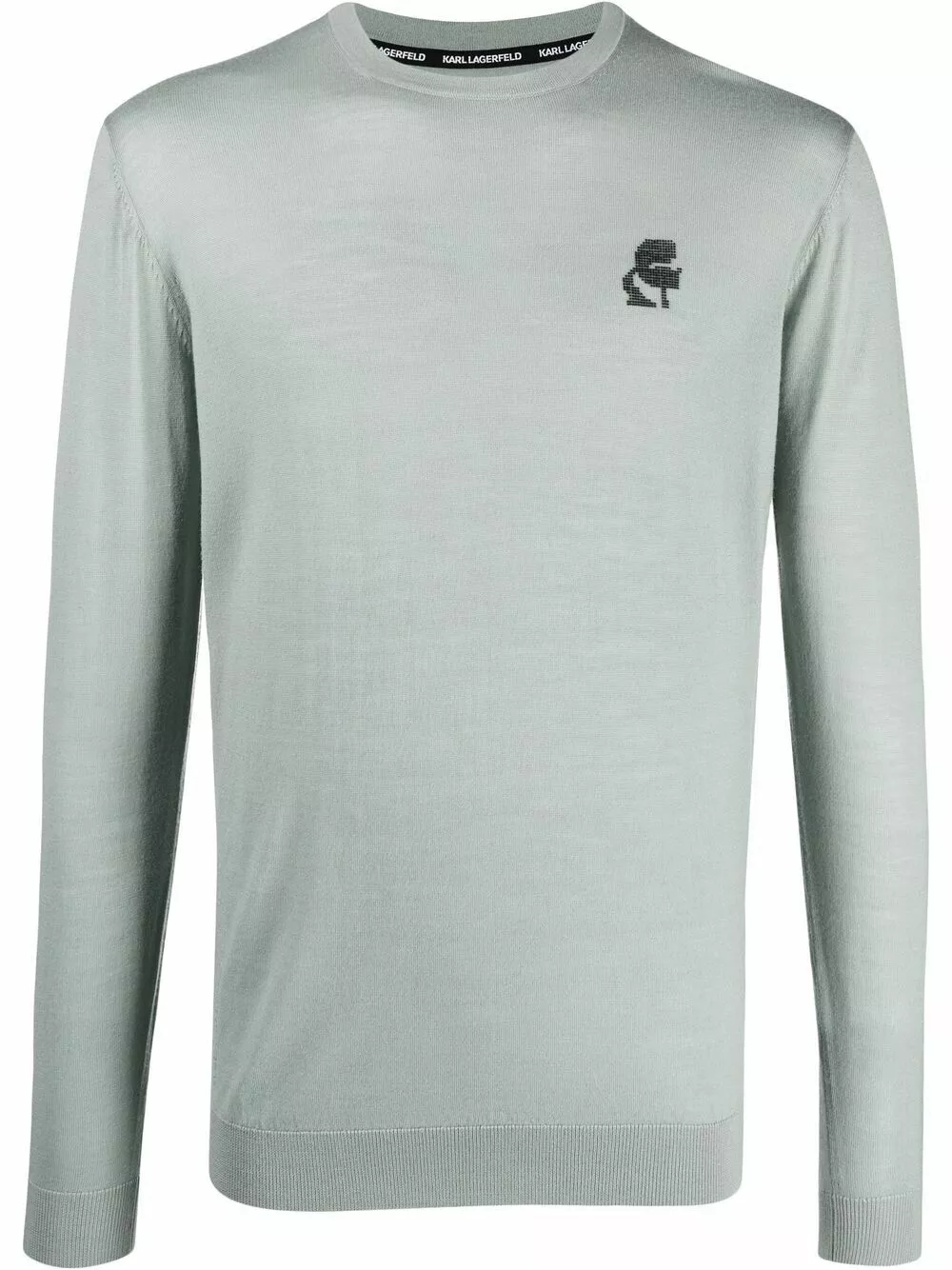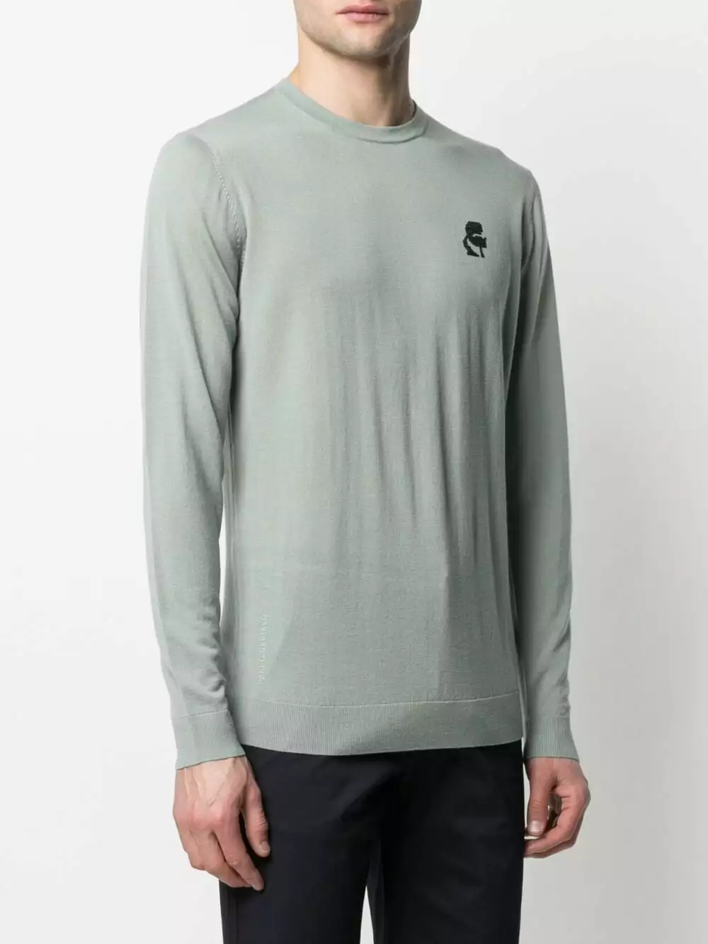 Sage wool crewneck jumper from KARL LAGERFELD featuring crew neck, embroidered logo at the chest, long sleeves and ribbed detailing.