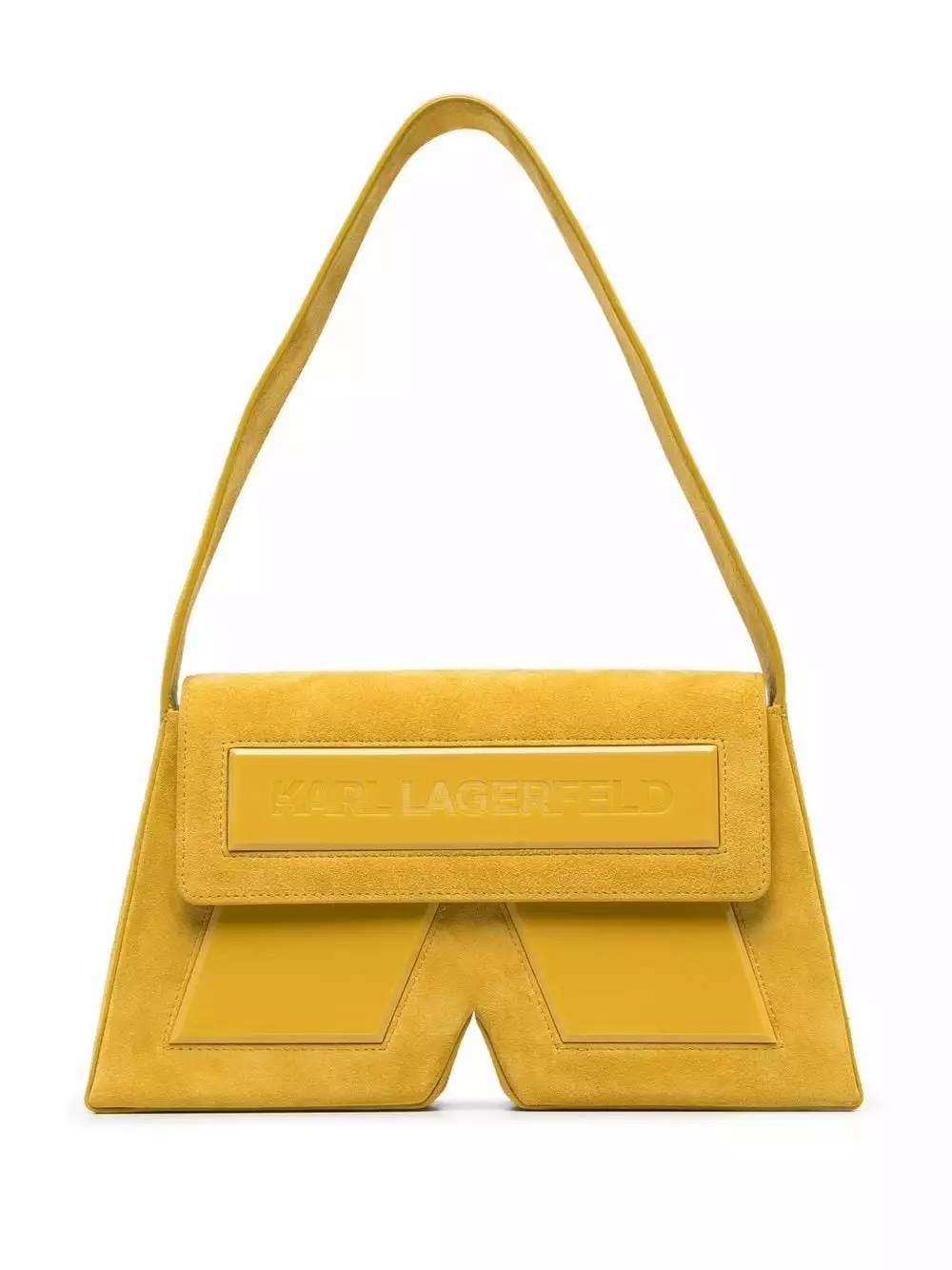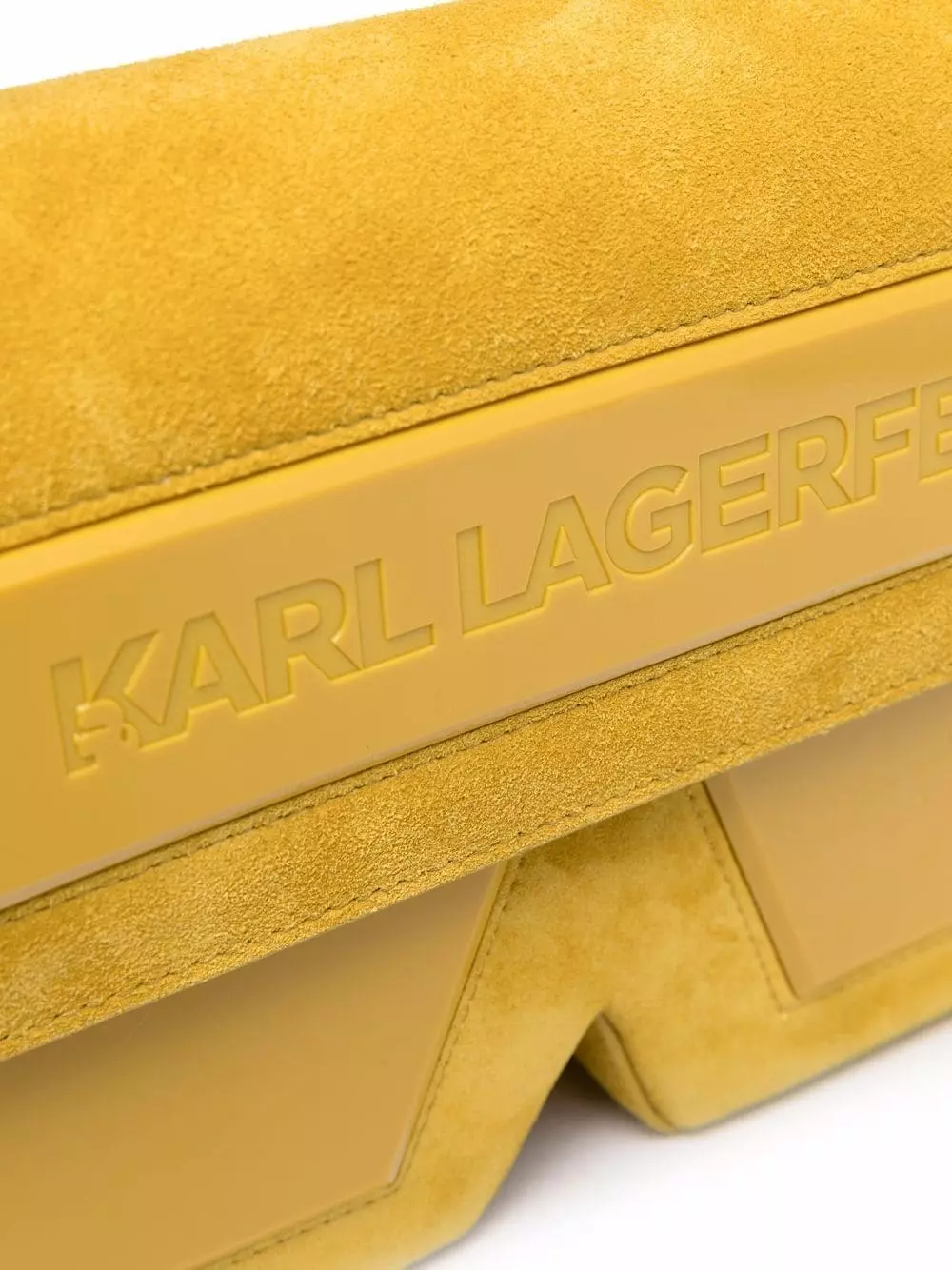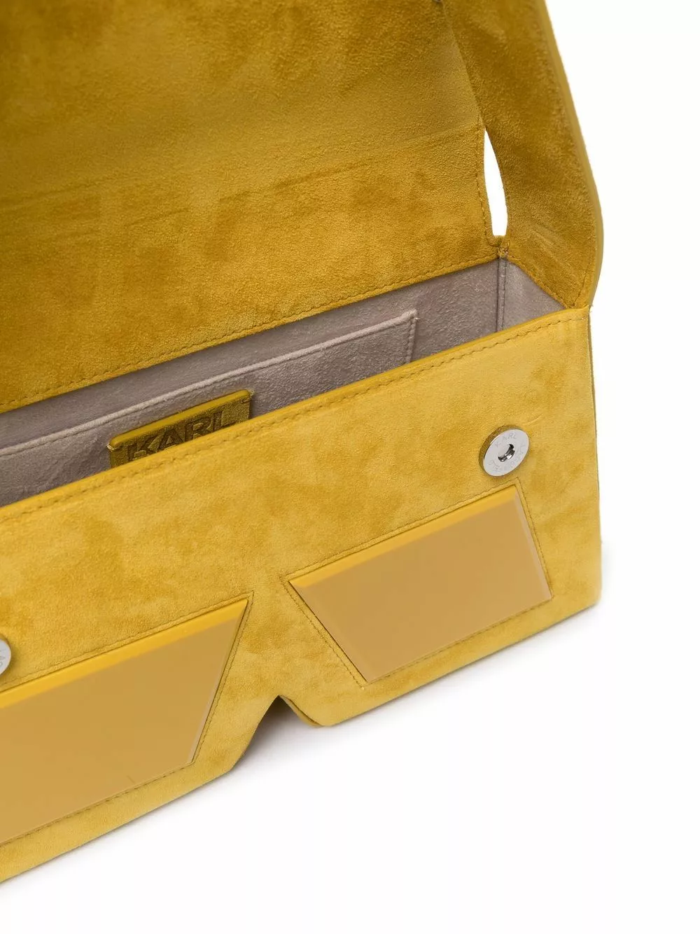 Karl Lagerfeld will remain one of the most emblematic icon of the luxury fashion industry. Crafted from yellow calf suede, this K/Kheops shoulder bag is detailed with his name on the front for a recognisable look.Â