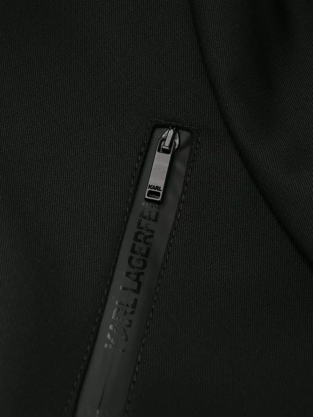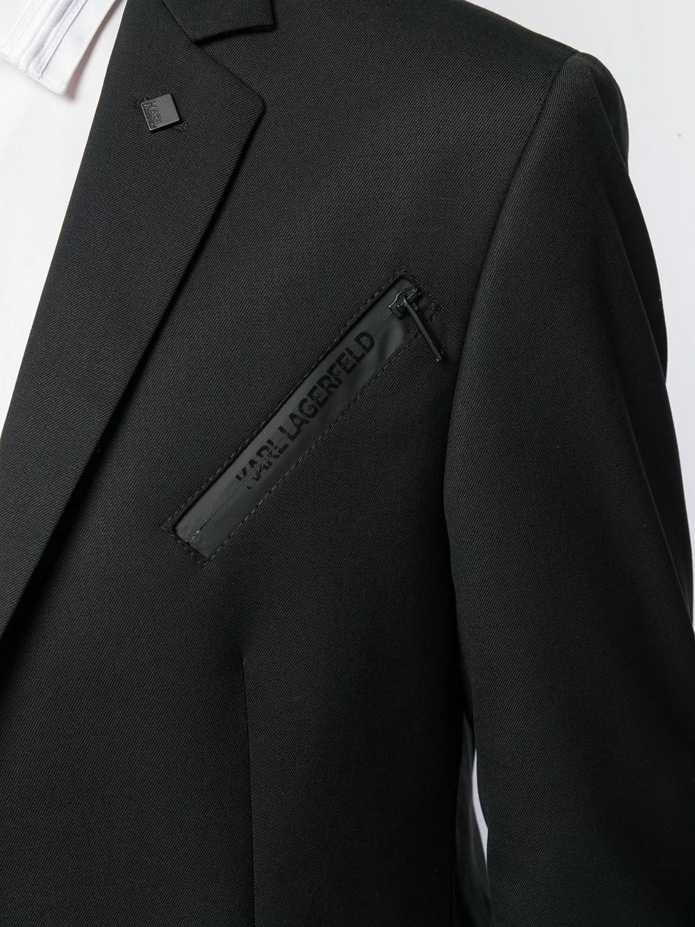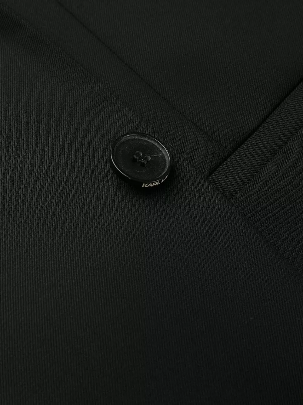Black wool blend Flash jacket from Karl Lagerfeld featuring a button fastening, a v-neck, two front pockets and long sleeves.