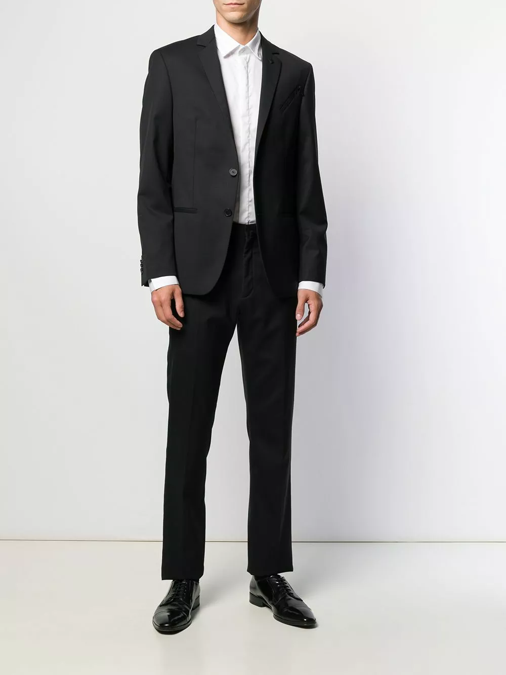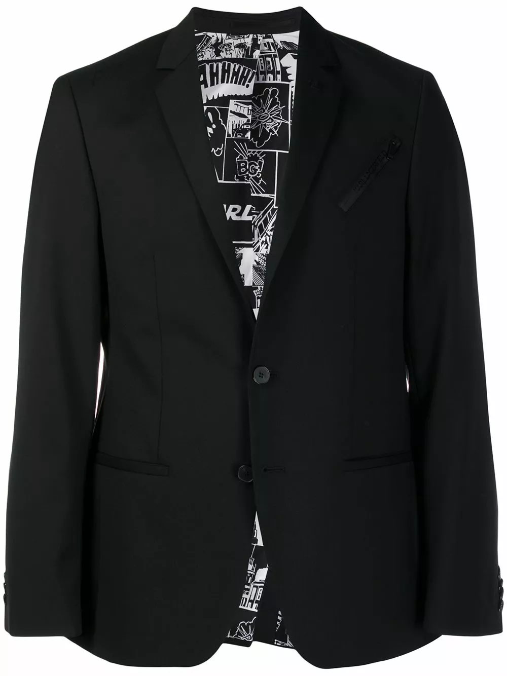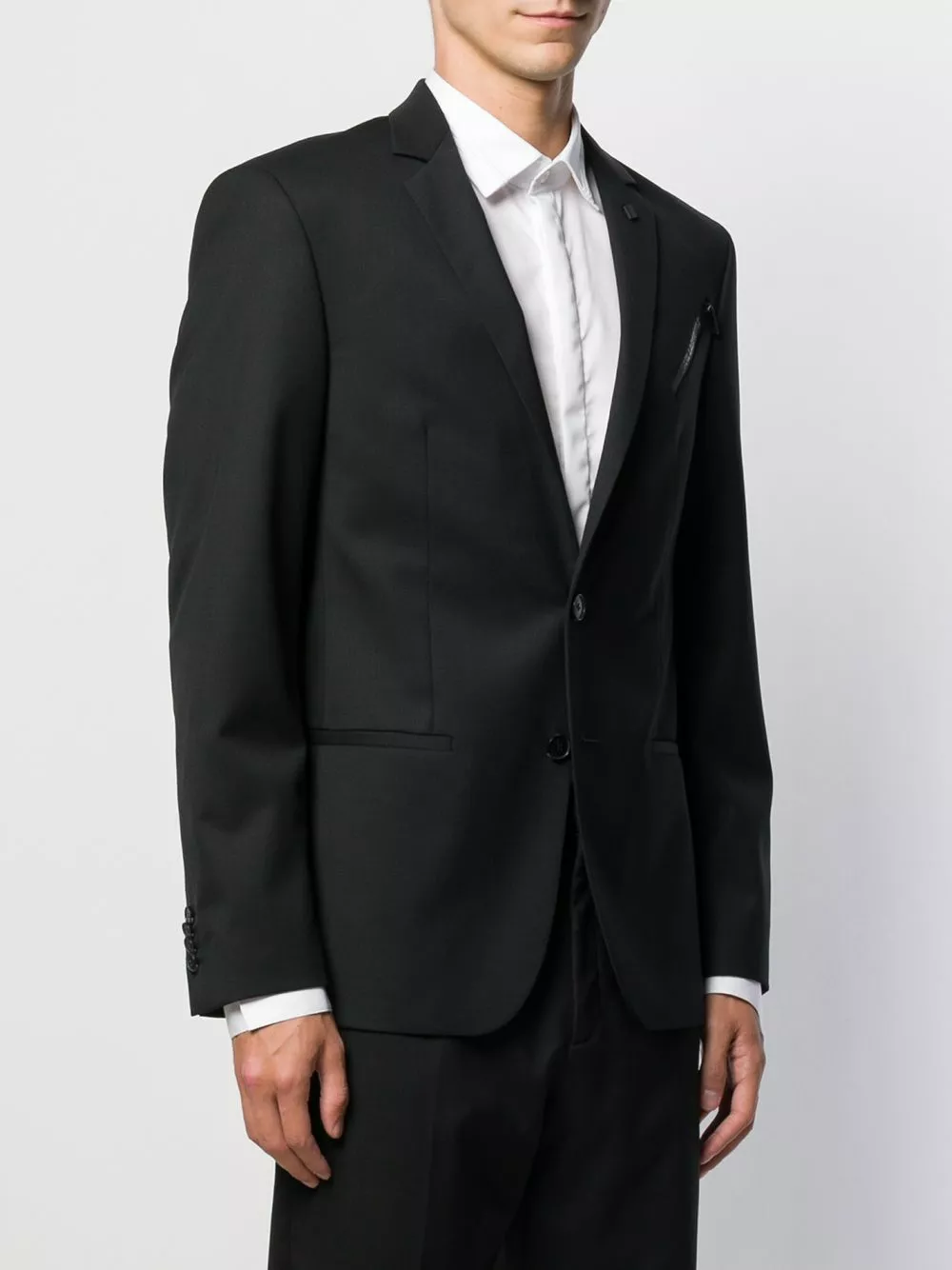 Black wool blend Flash jacket from Karl Lagerfeld featuring a button fastening, a v-neck, two front pockets and long sleeves.