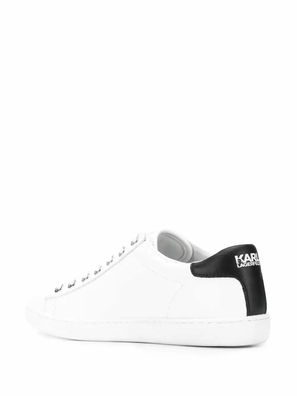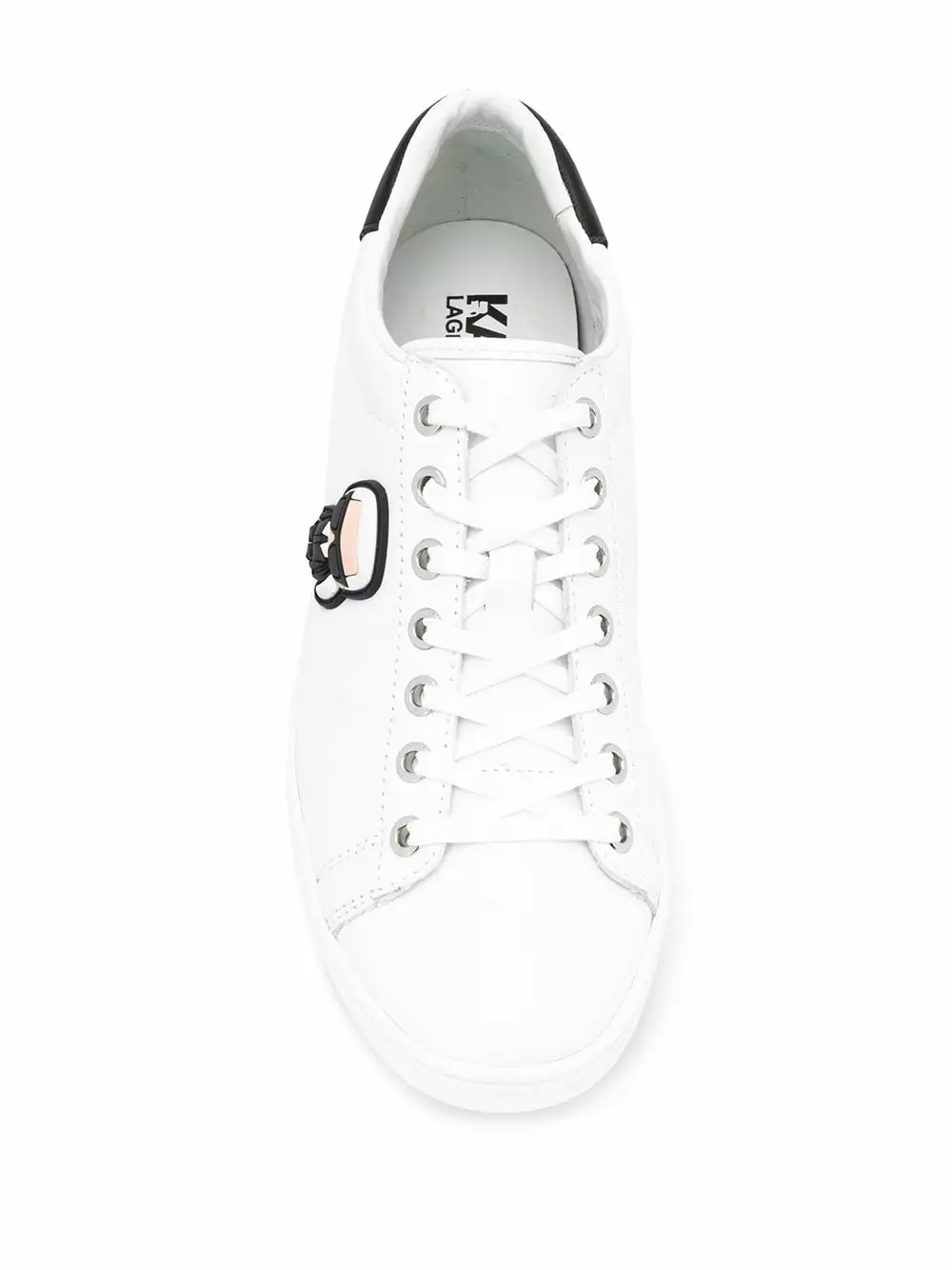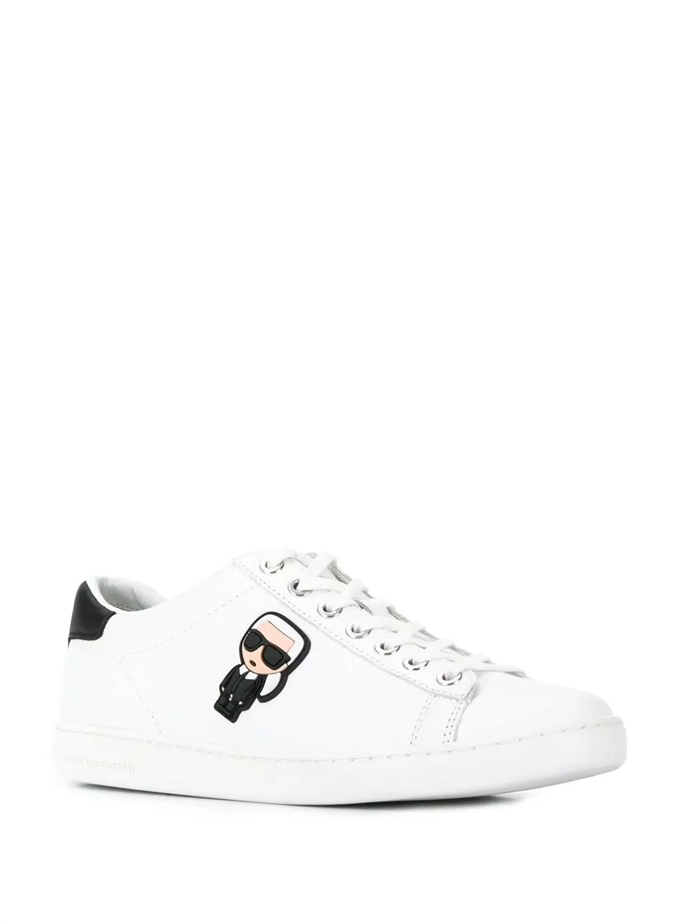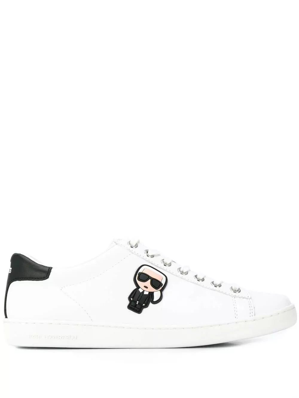 White leather Iconic cupsole sneakers from Karl Lagerfeld featuring a round toe, a lace-up front fastening, a brand embossed insole, a contrasting heel counter, a white rubber sole and Karl silicon side detail.