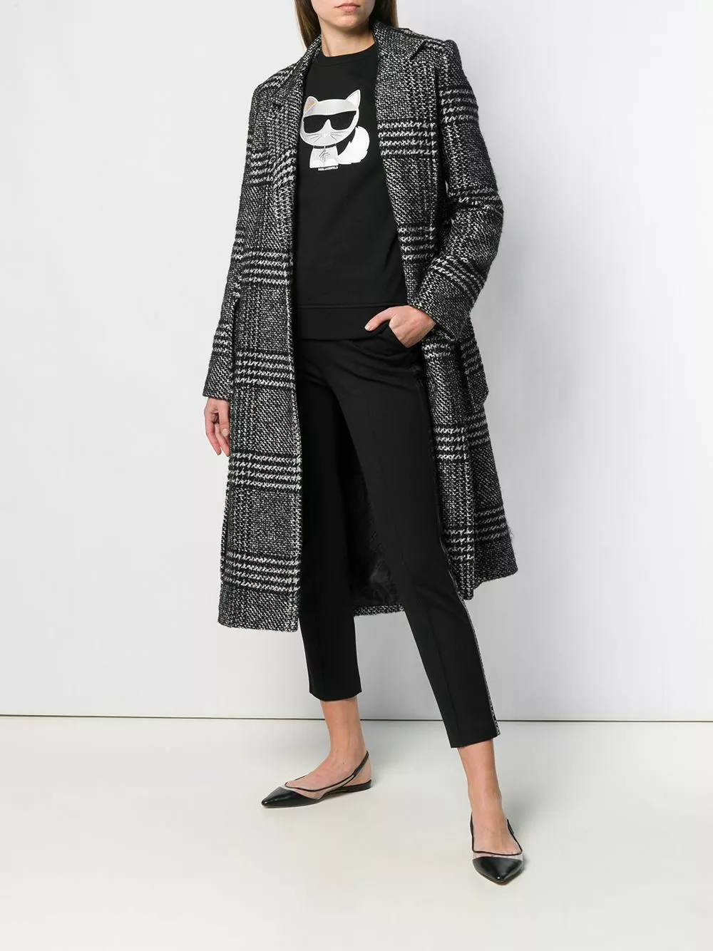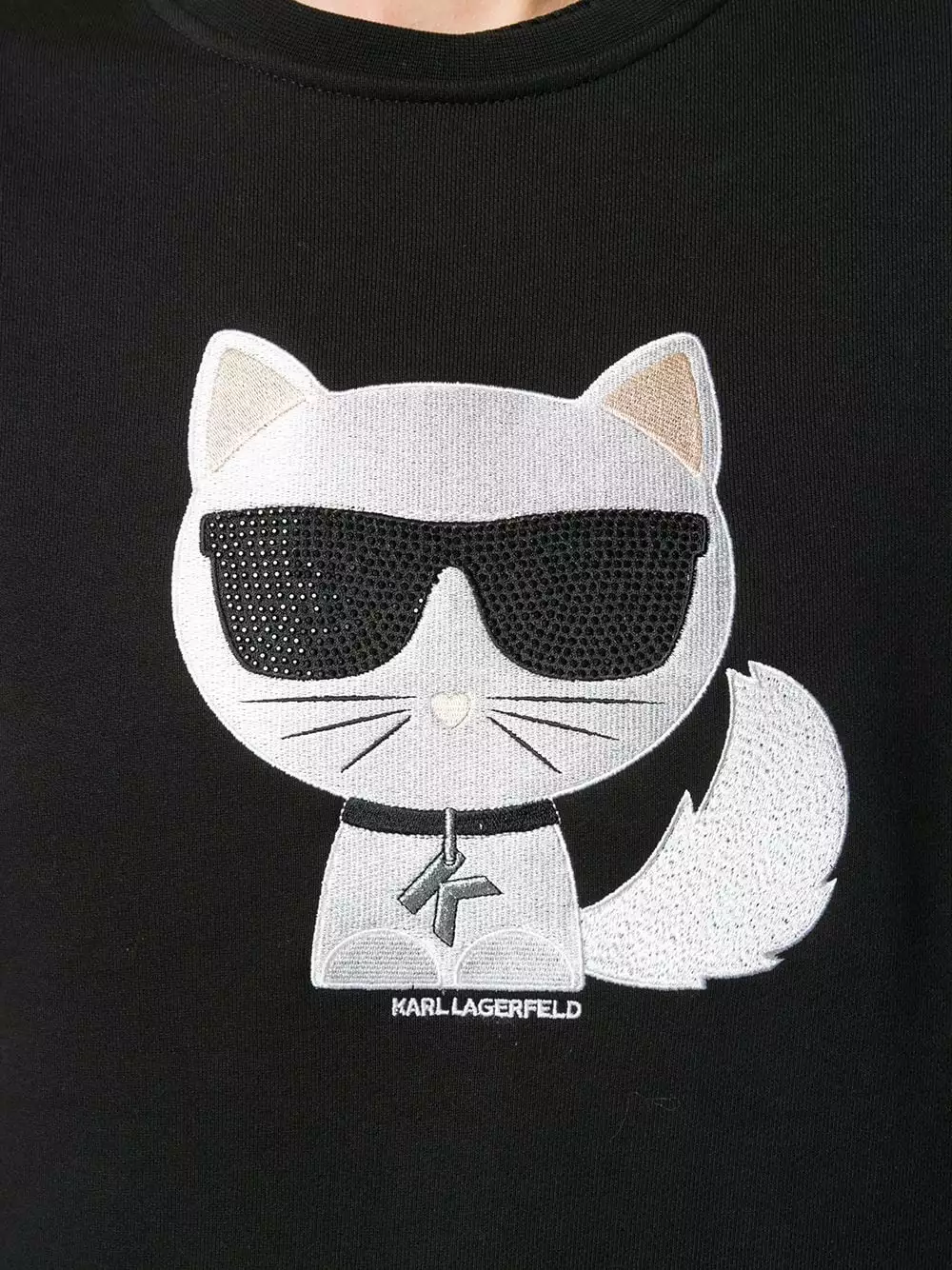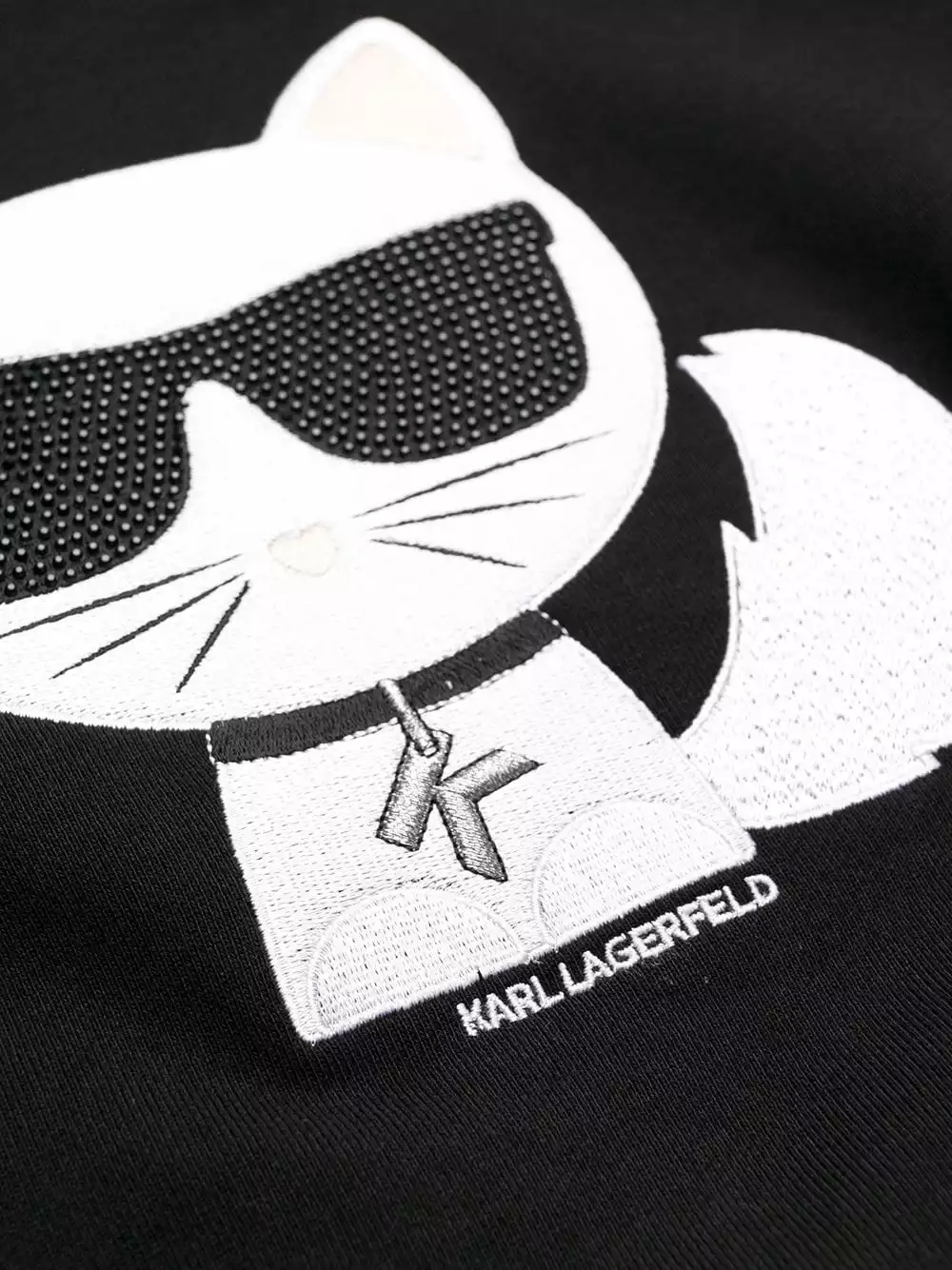 Black cotton Ikonik Choupette sweater from Karl Lagerfeld featuring a graphic print, a straight hem, a crew neck with welt finishing and long sleeves.