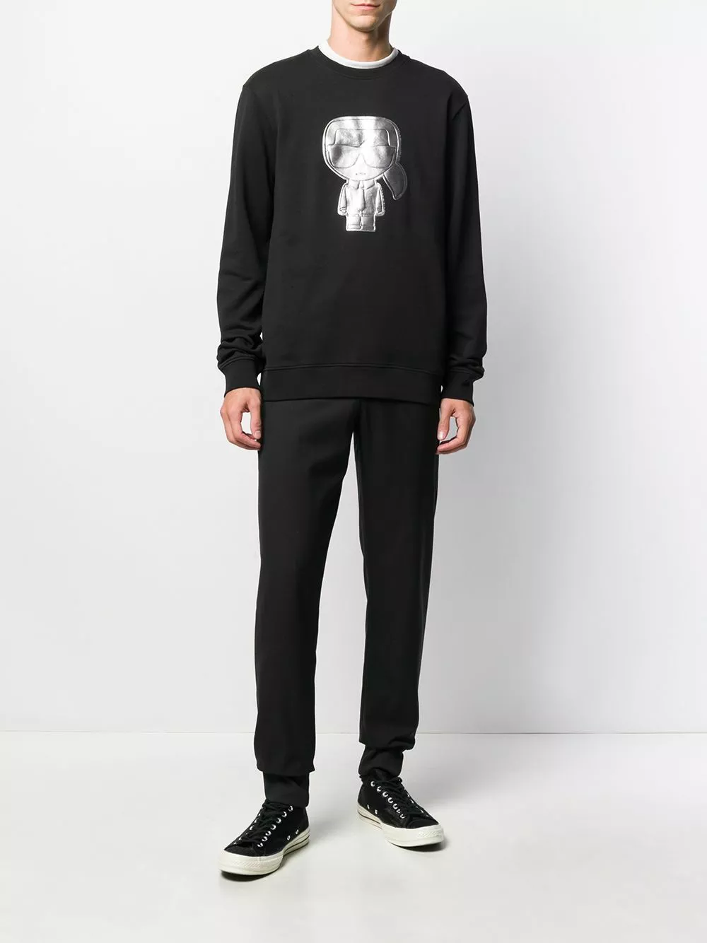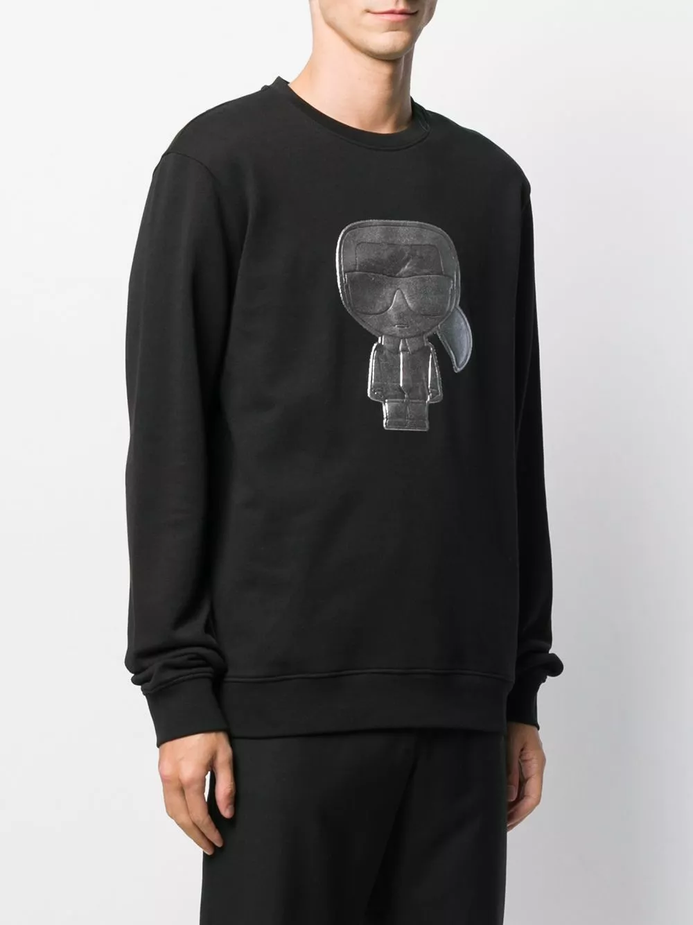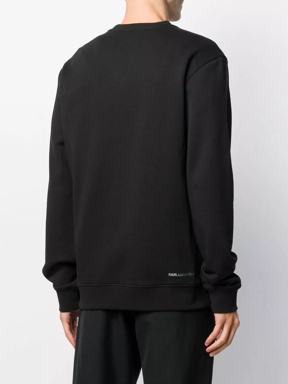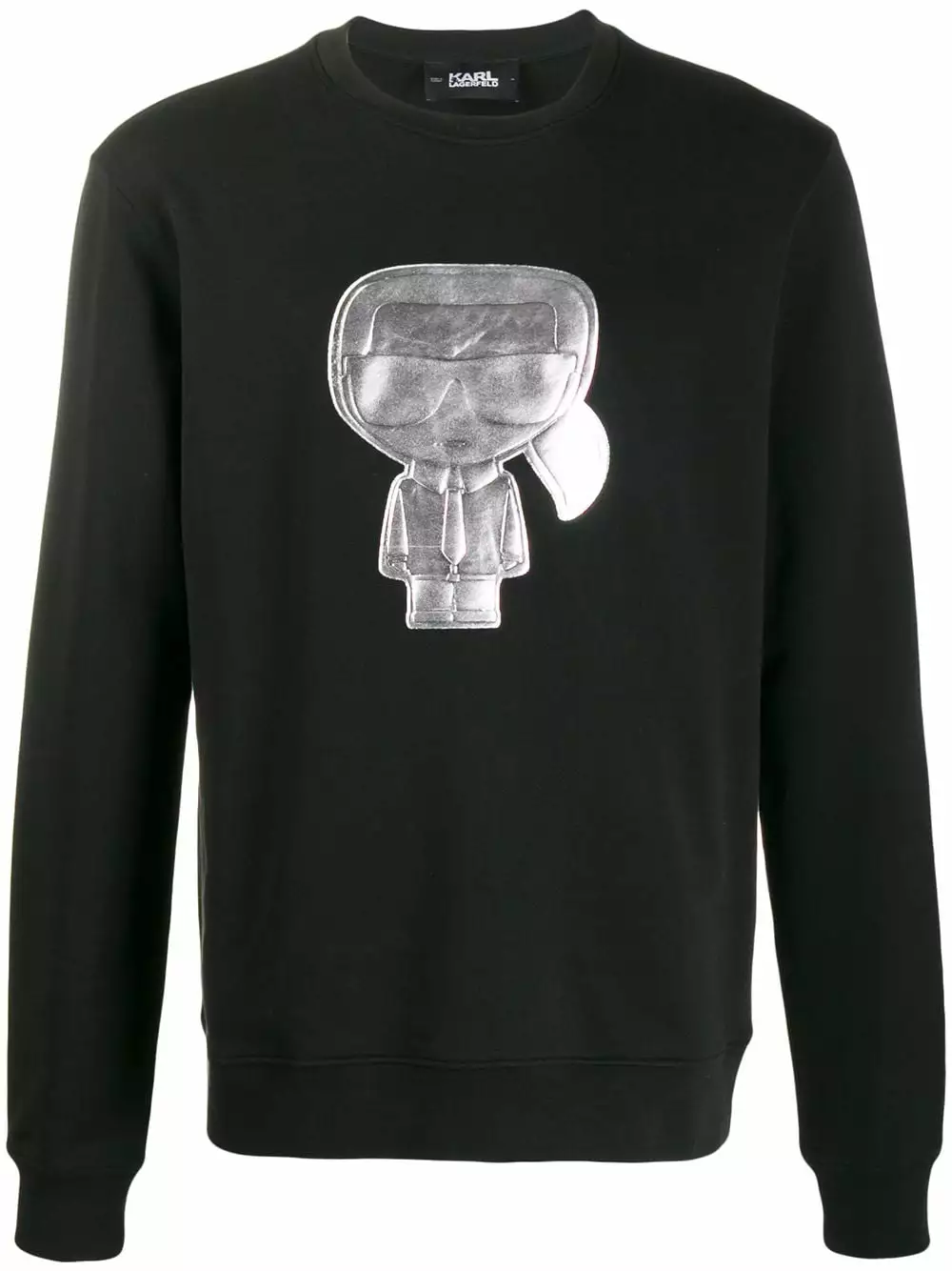 Black and silver-tone cotton Ikonik crew neck sweatshirt from Karl Lagerfeld featuring an embroidered logo to the front, a relaxed fit, long sleeves, fitted cuffs and a straight hem.