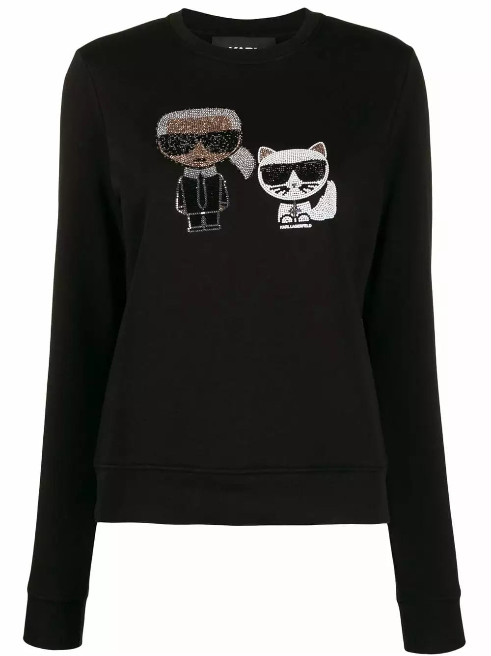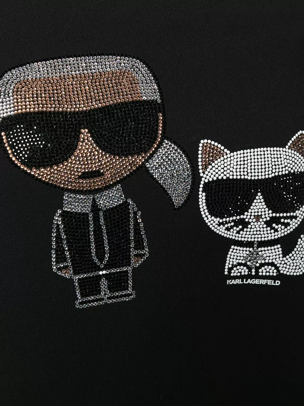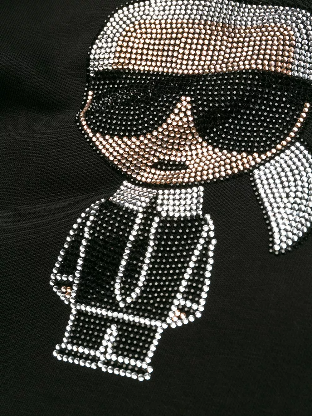 Black cotton Ikonik crystal sweatshirt from Karl Lagerfeld featuring a round neck, long sleeves, a ribbed hem and cuffs and crystal embellishments.