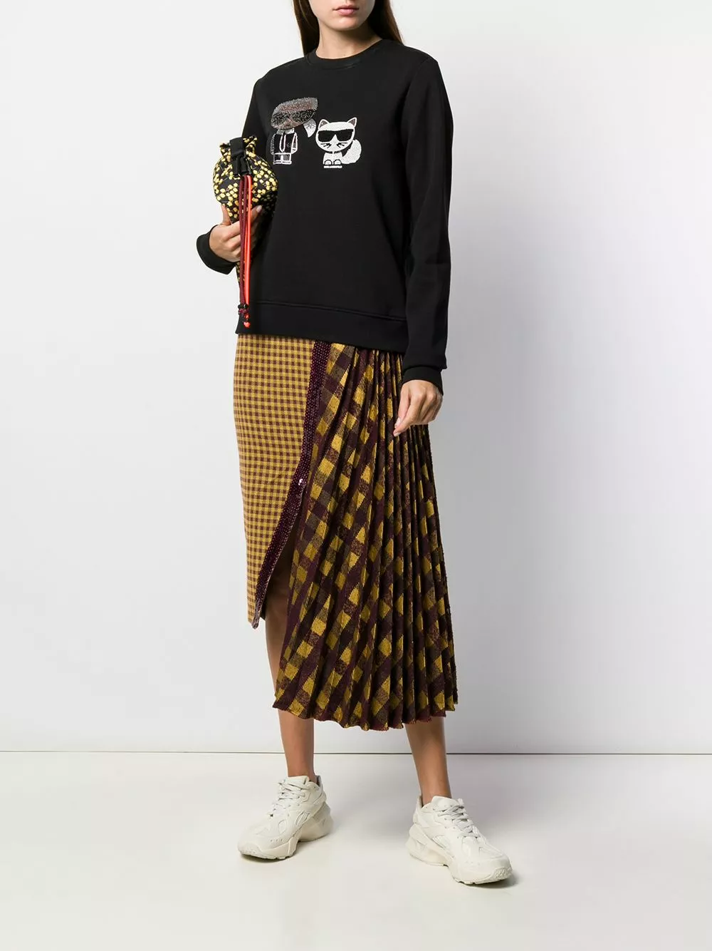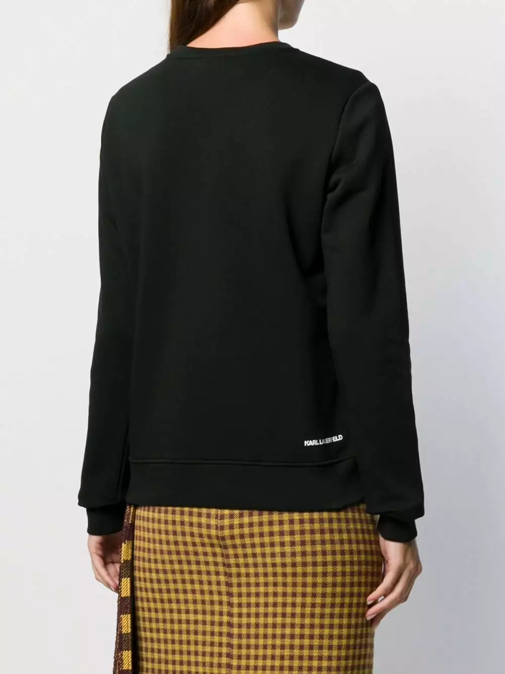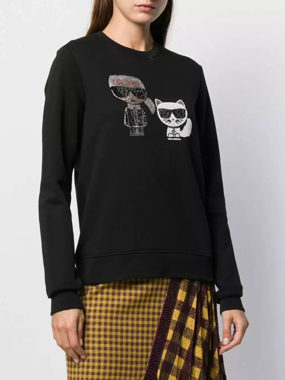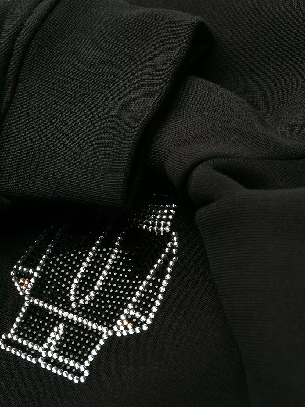 Black cotton Ikonik crystal sweatshirt from Karl Lagerfeld featuring a round neck, long sleeves, a ribbed hem and cuffs and crystal embellishments.