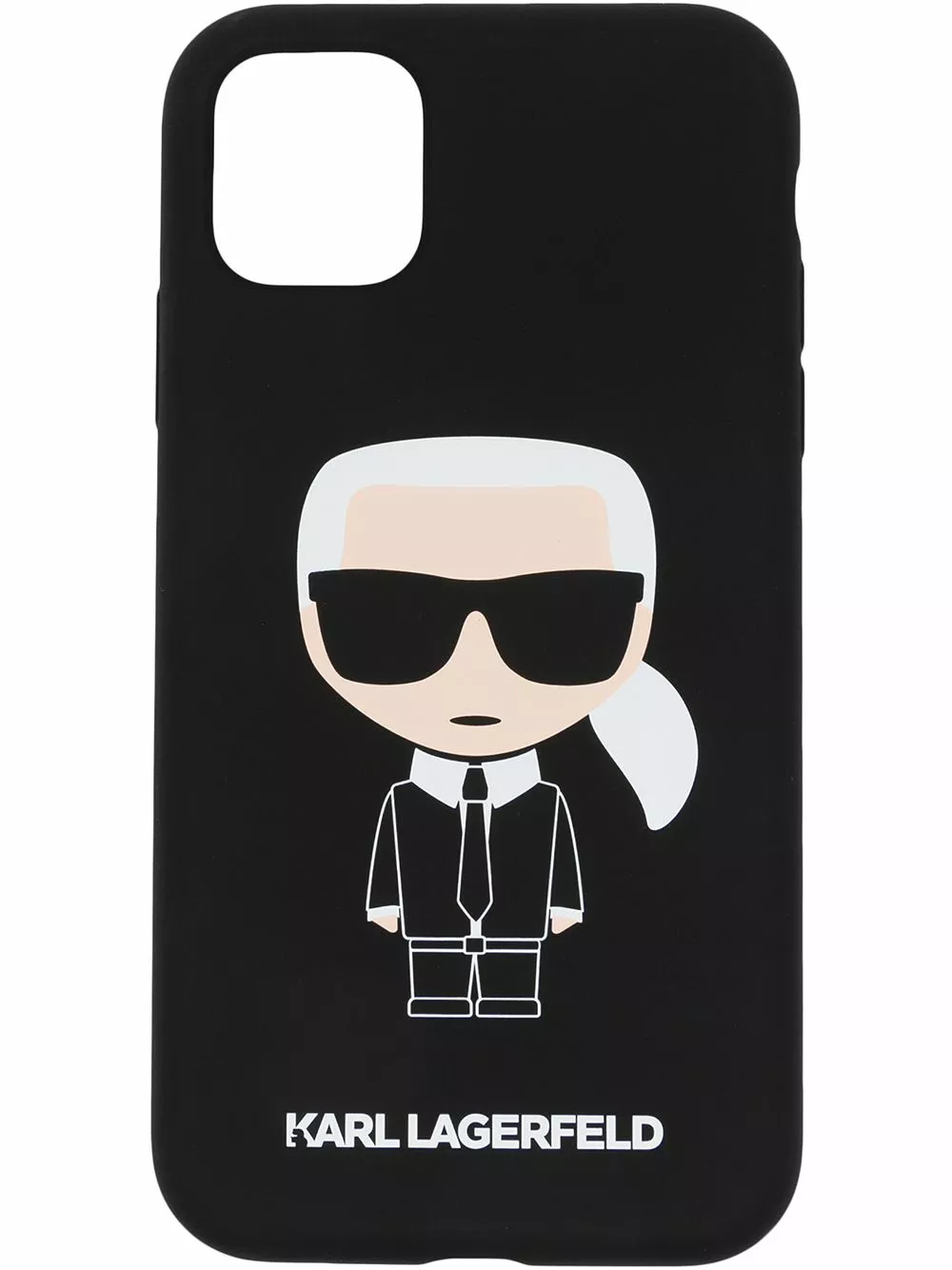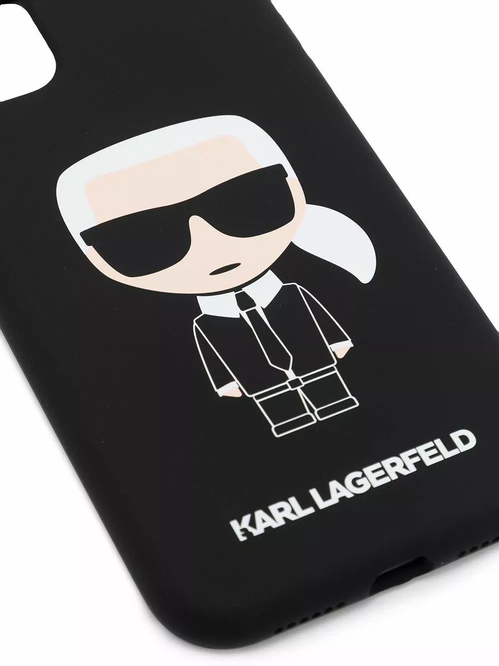 Pitch black iKonik iPhone 11 case from KARL LAGERFELD featuring iPhone 11 compatible, signature Ikonik print and camera slot.