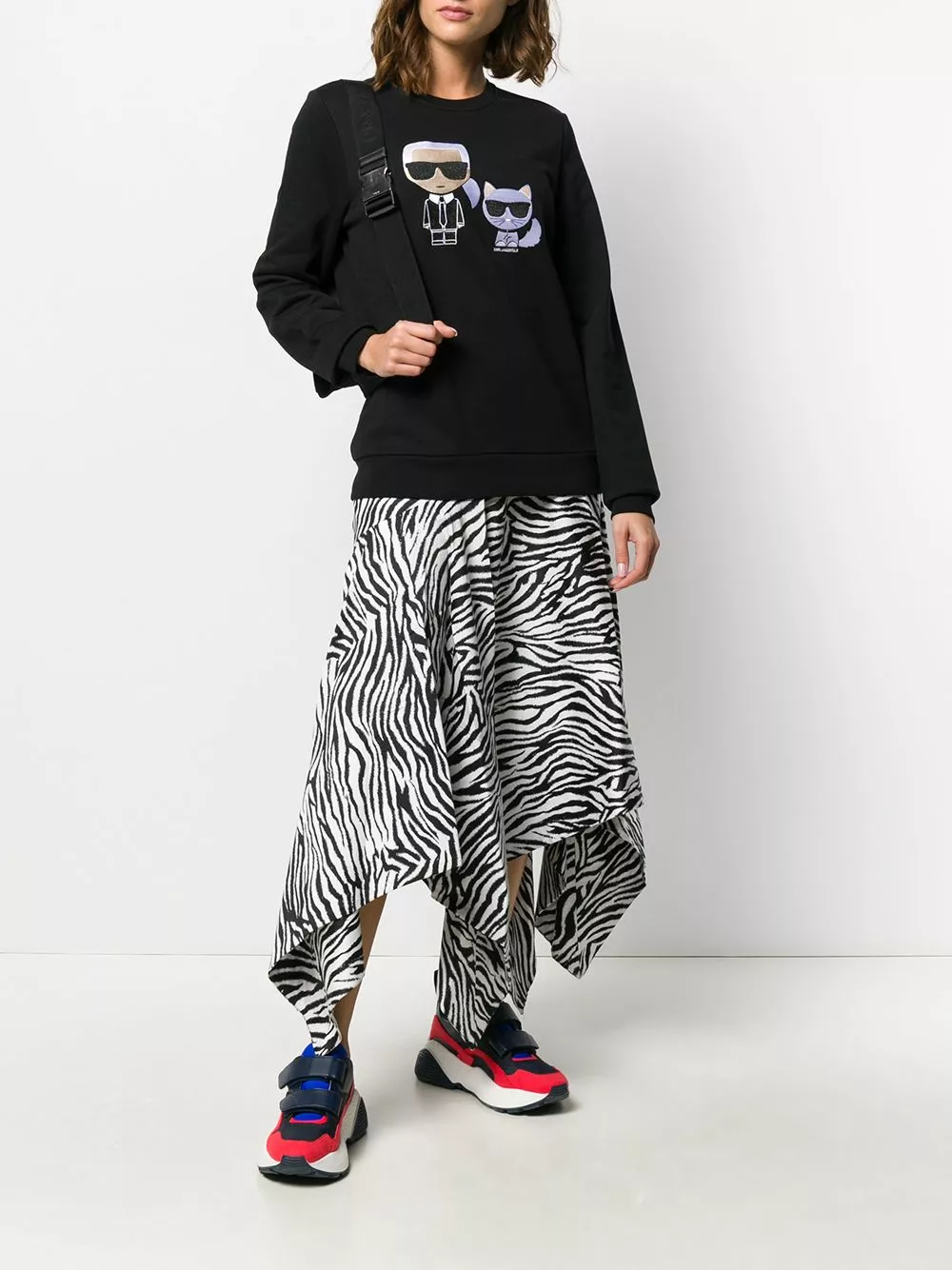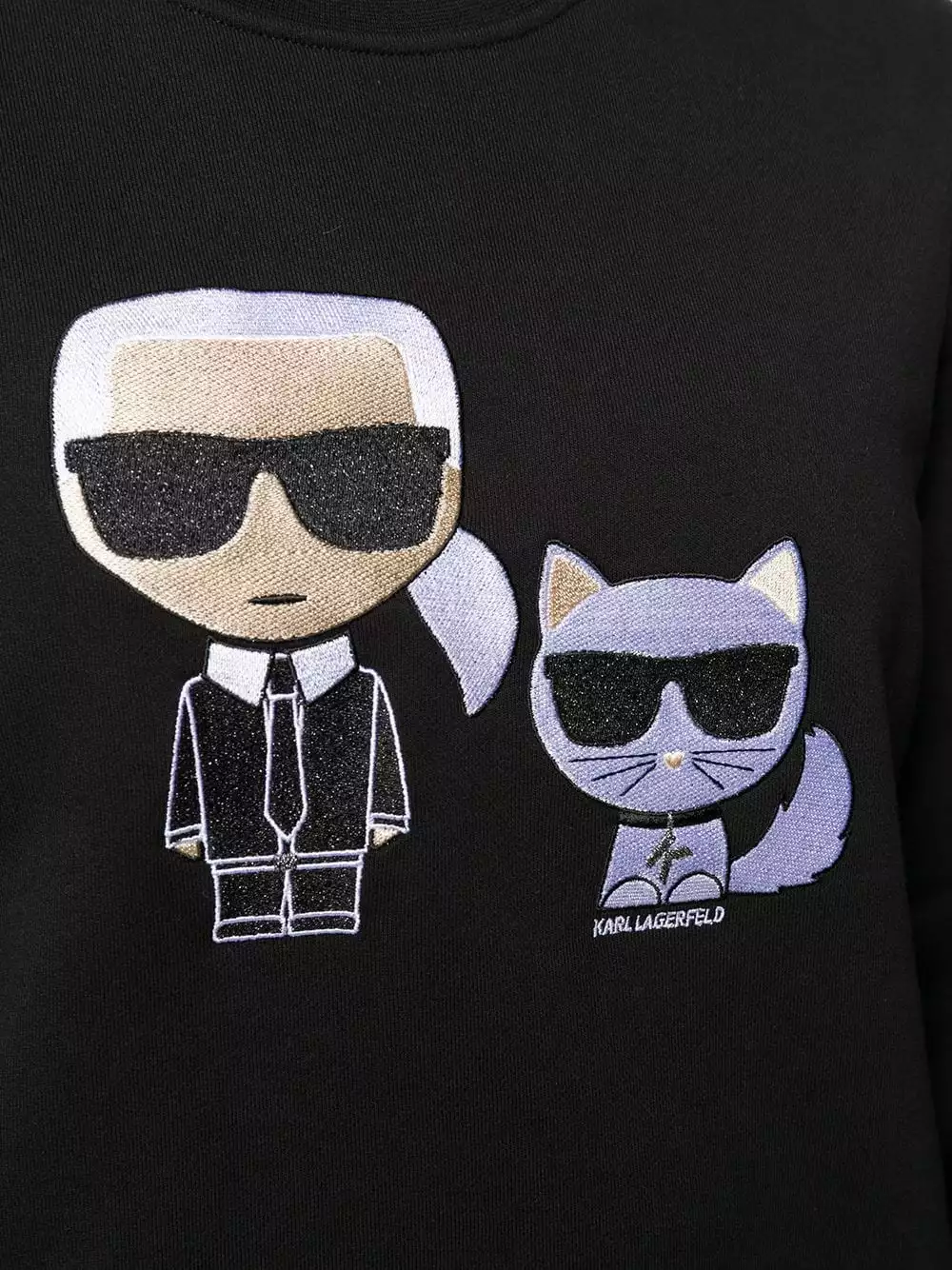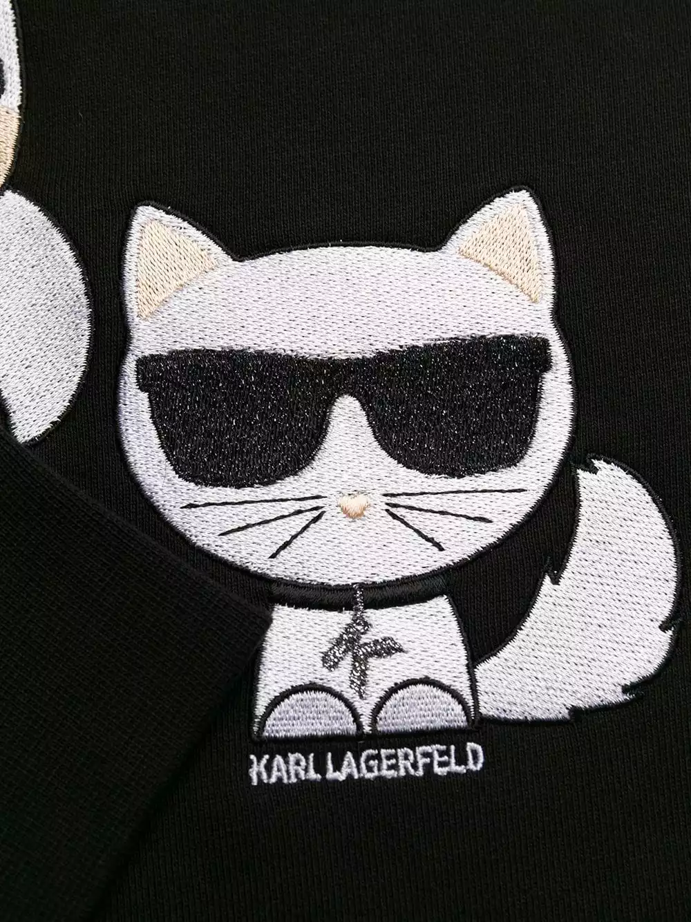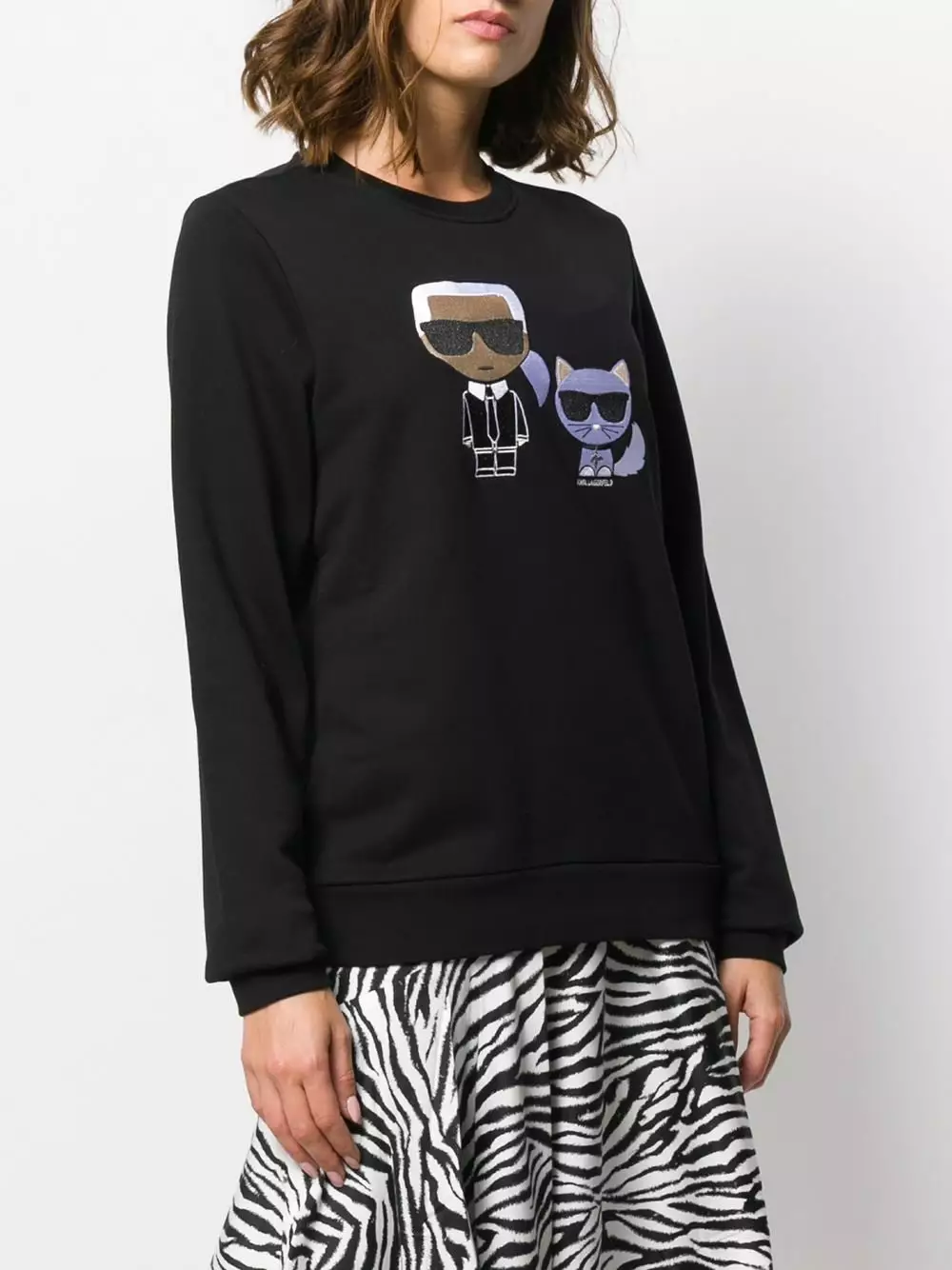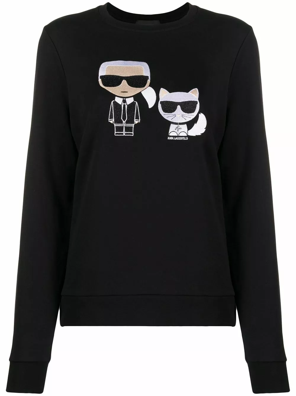 Black cotton Ikonik Karl Choupette jumper from Karl Lagerfeld featuring a round neck, long sleeves and a ribbed hem and cuffs.