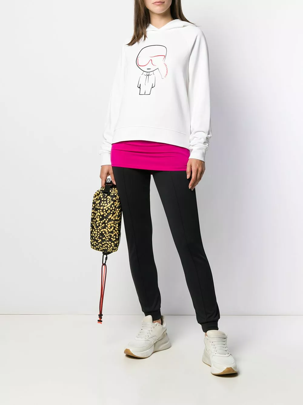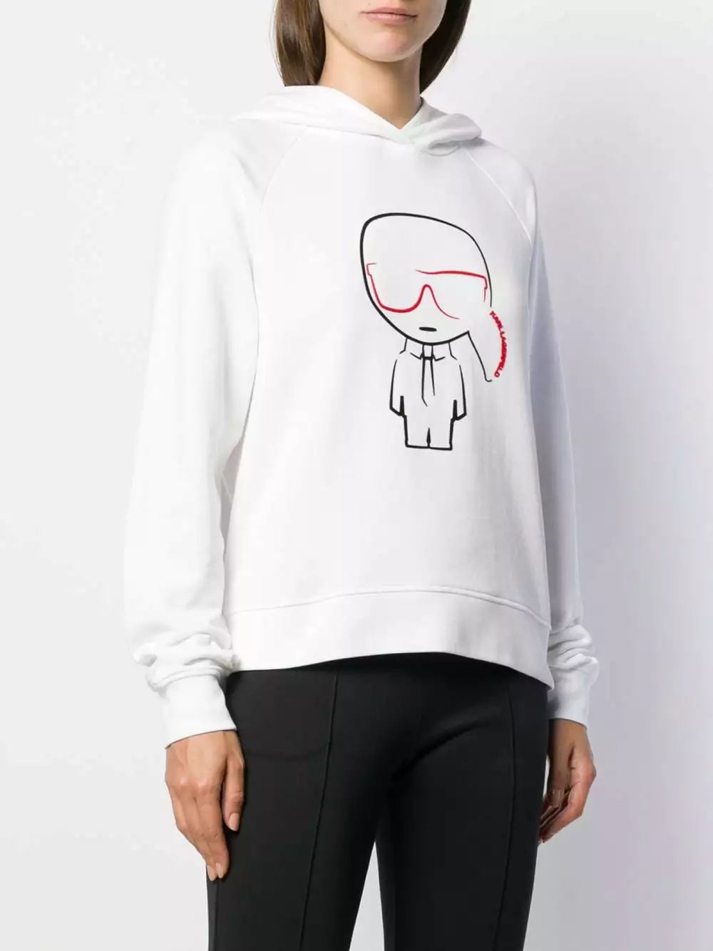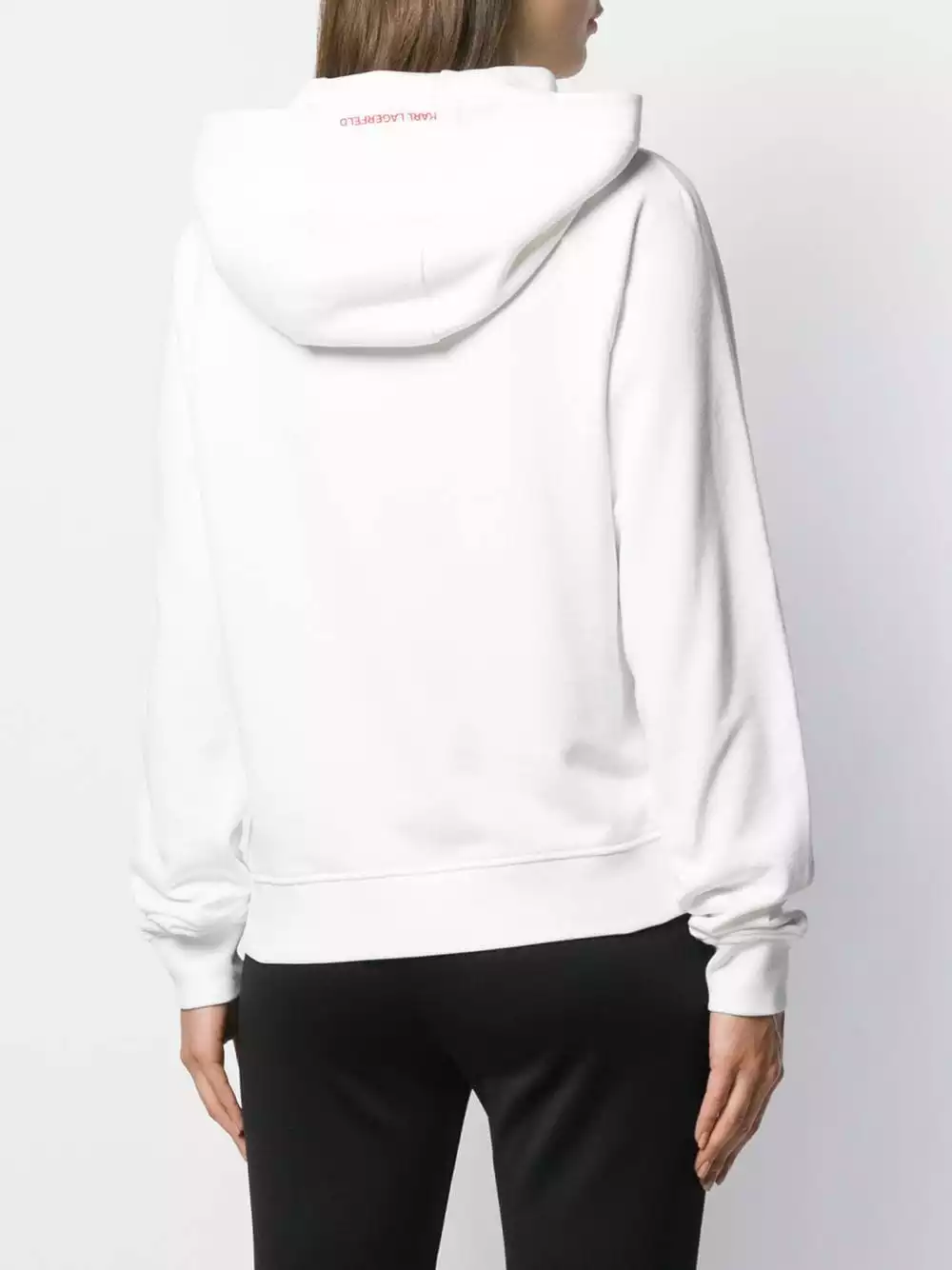 White cotton Ikonik Karl hoodie from Karl Lagerfeld featuring a hood, long sleeves and a ribbed hem and cuffs.