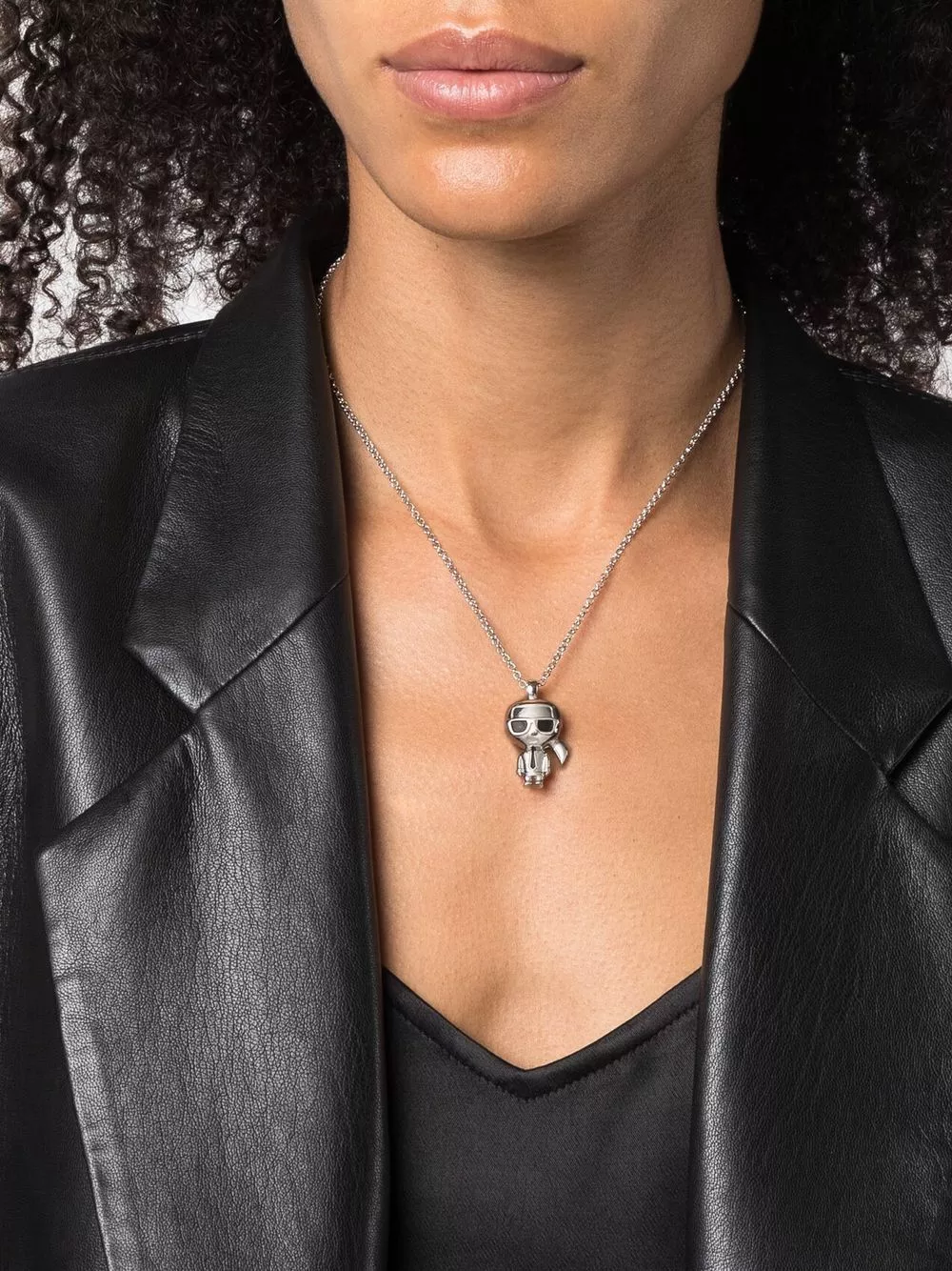 If there is one thing instantly recognisable about the label Karl Lagerfeld, it’s the founding designer’s persona. Found throughout the latest jewellery collection, this Ikonik Karl necklace comes crafted from silver-tone sterling silver and features a pendant charm of the late Lagerfeld’s character.Â
