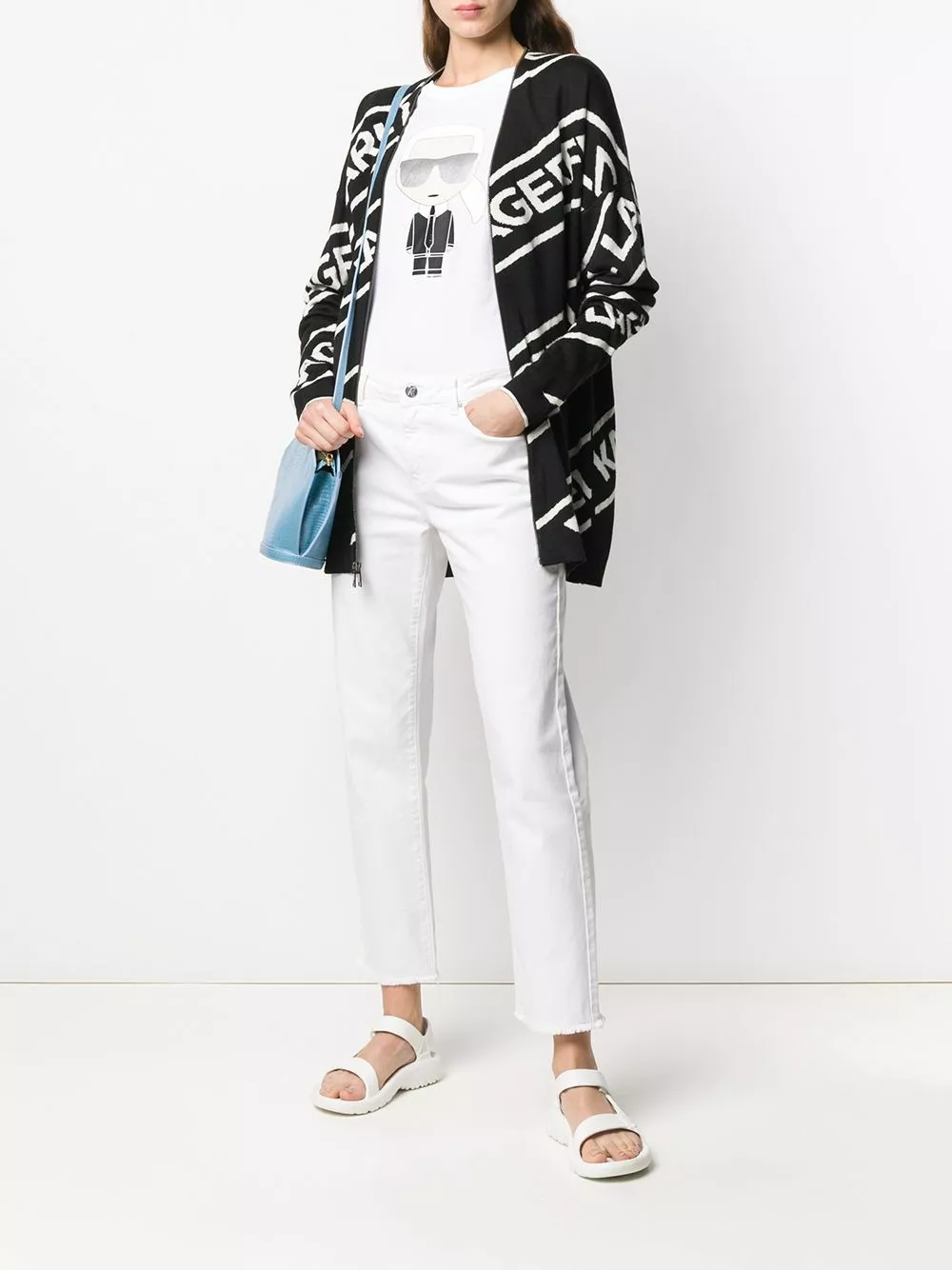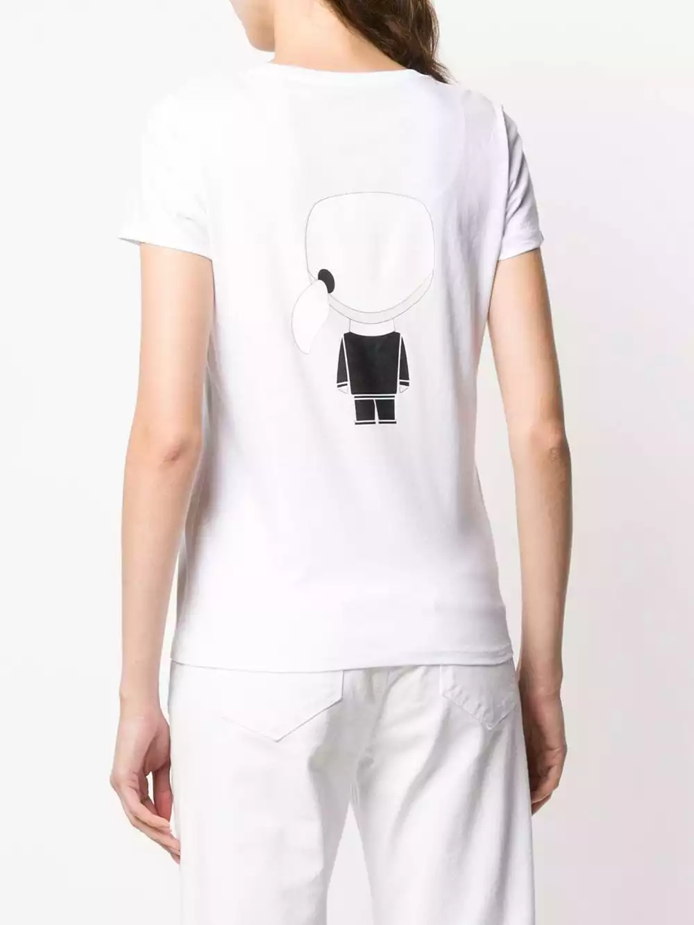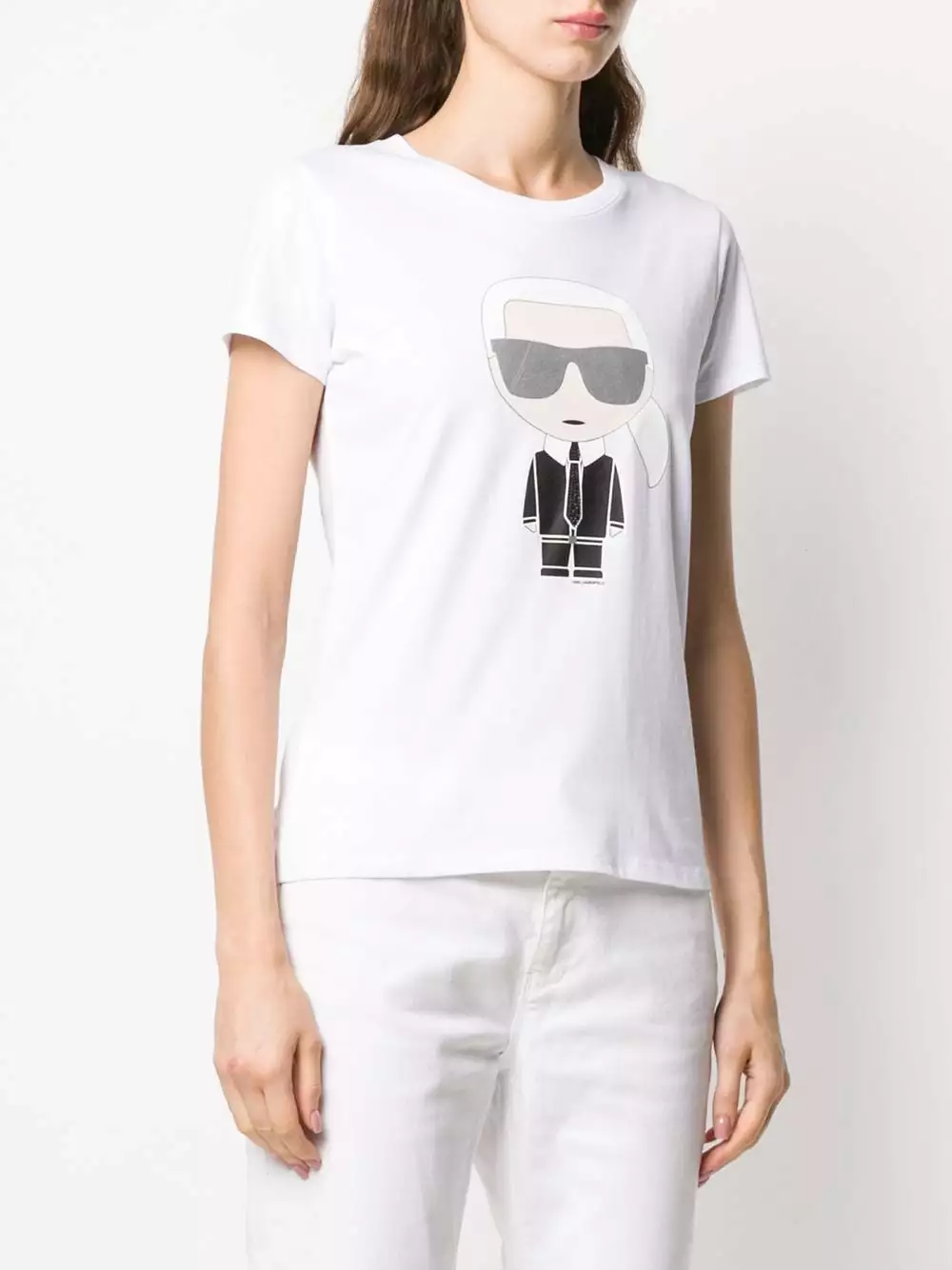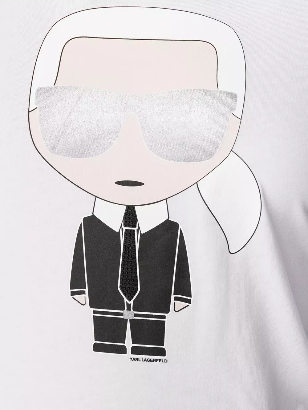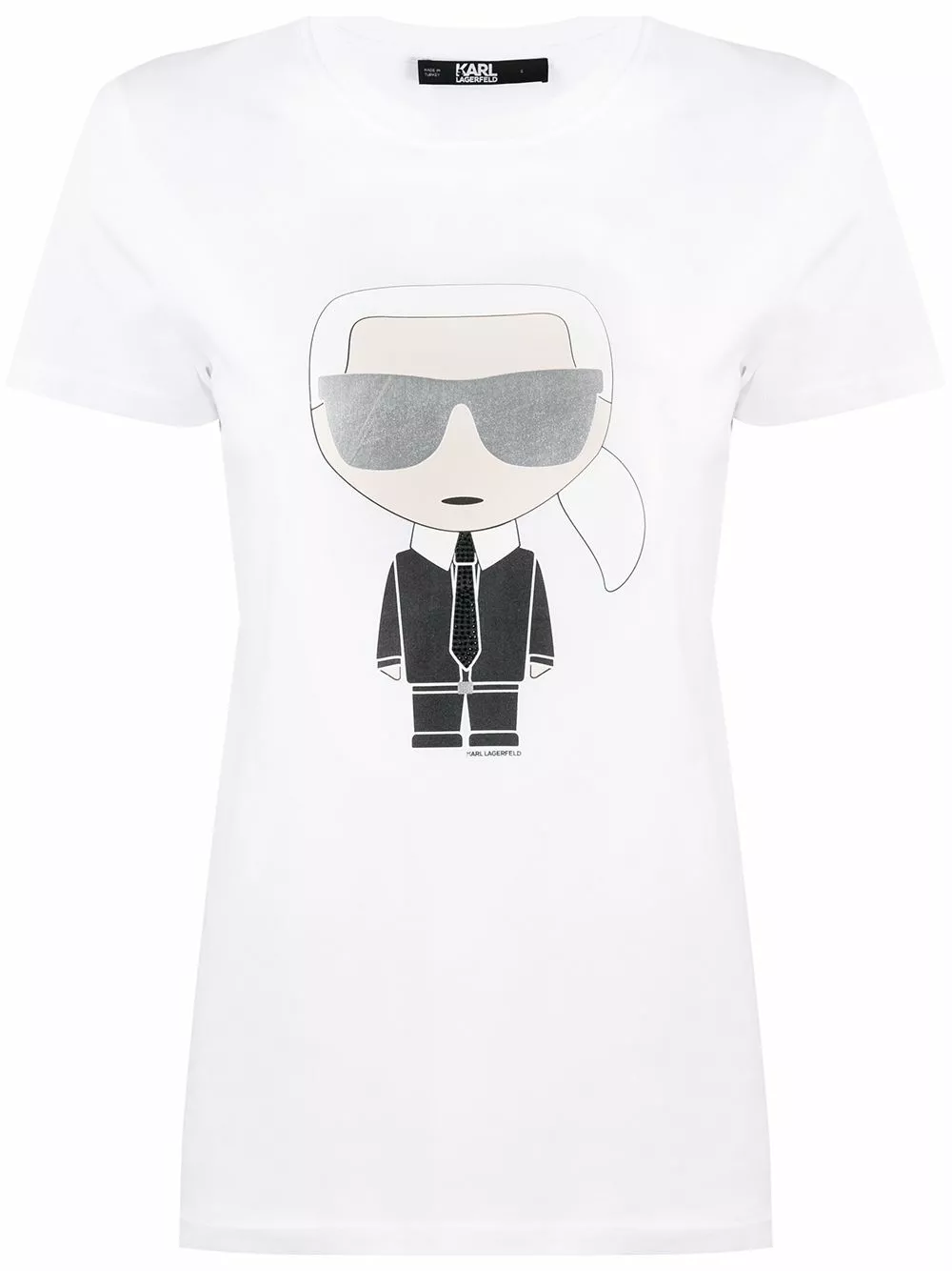 White cotton Ikonik Karl T-shirt from Karl Lagerfeld featuring a round neck, a graphic print, rhinestone embellishments and short sleeves.
