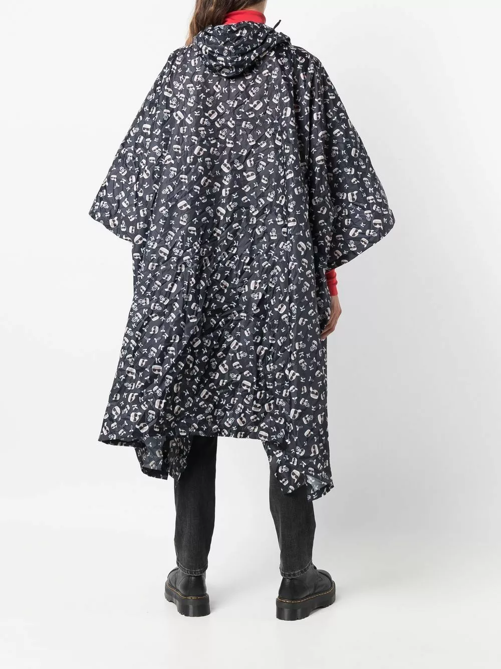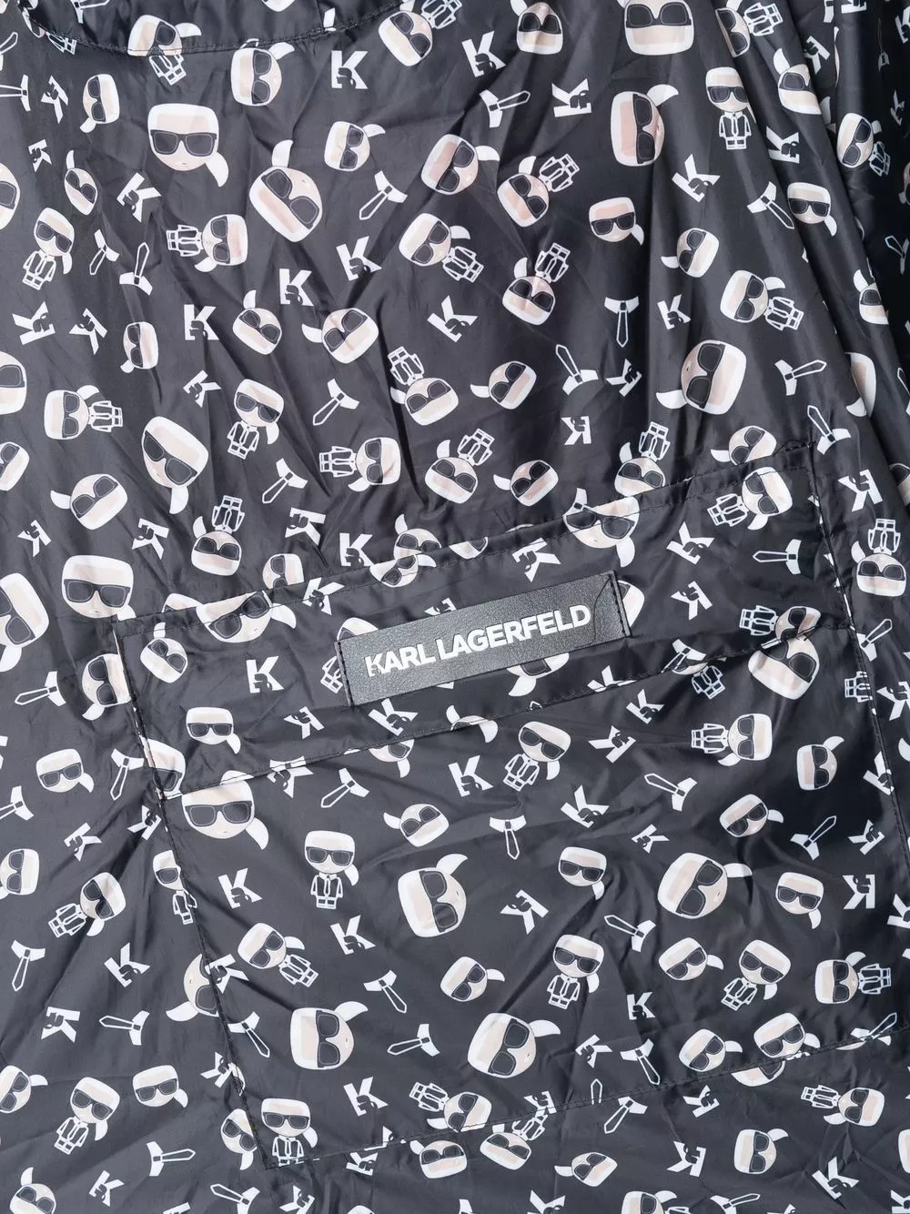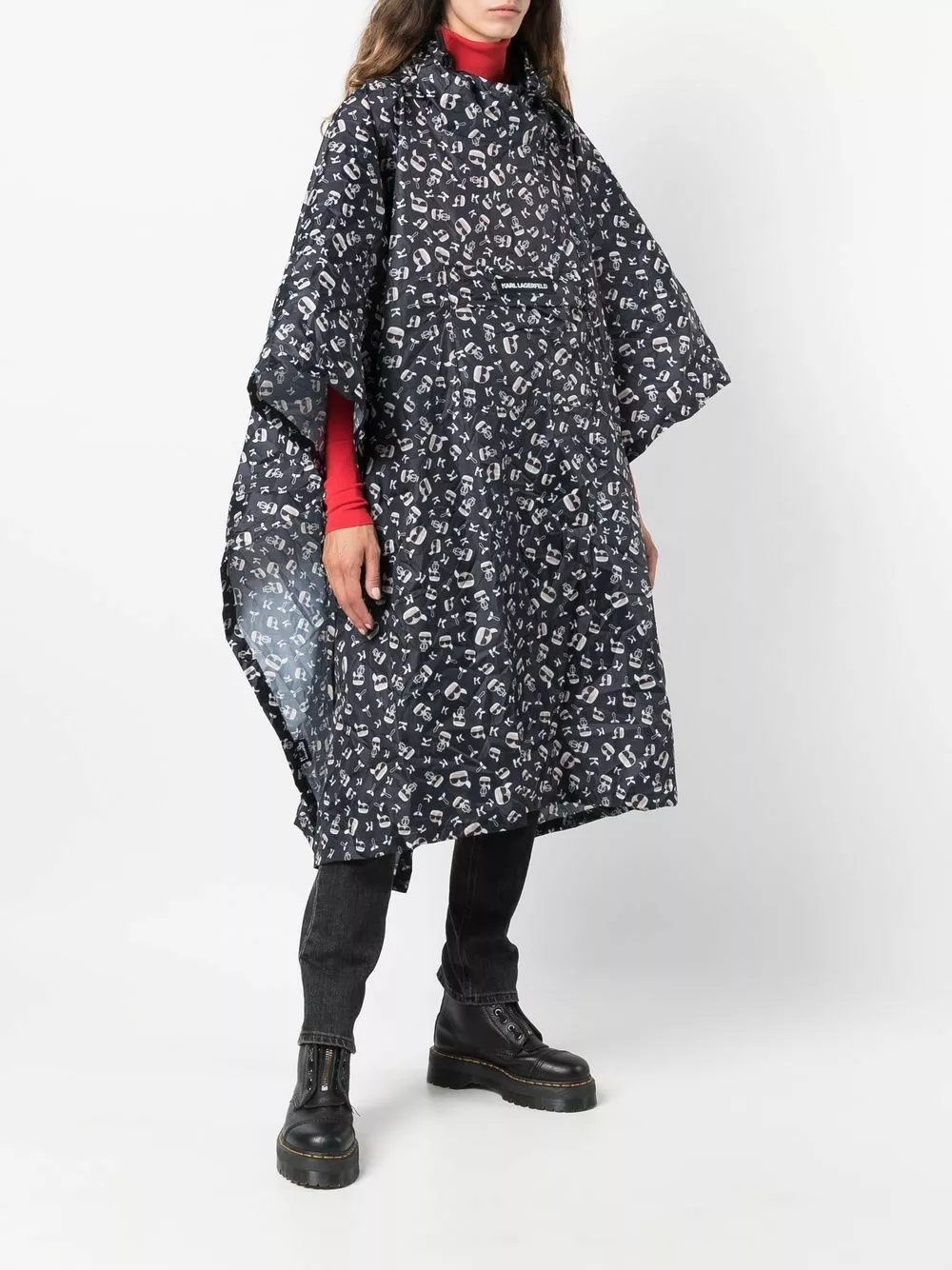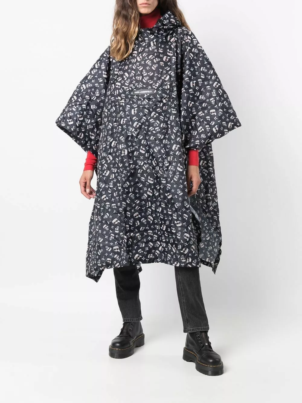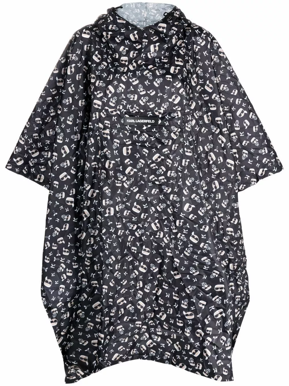 The Ikonik print is a playful take on Karl Lagerfeld, with a cartoon-like look. Made from recycled nylon, this rain poncho offers a stylish solution to drizzly days.