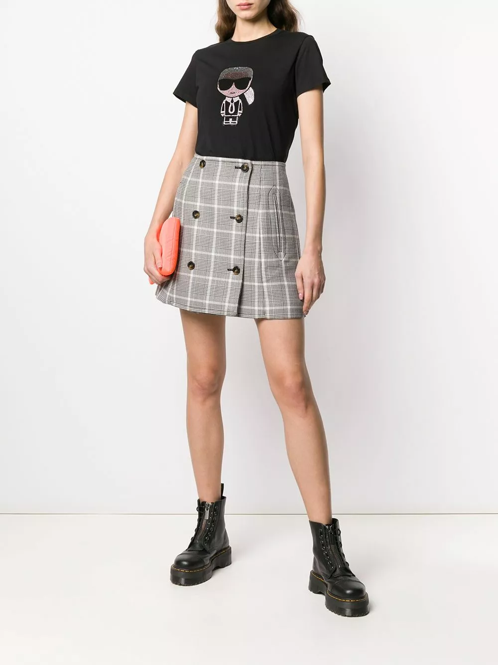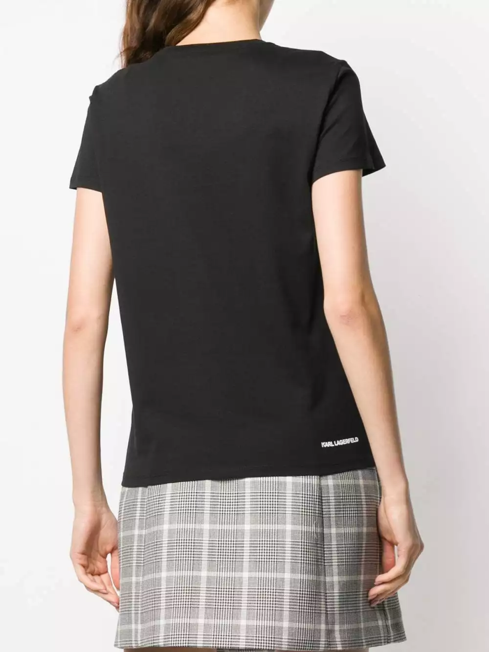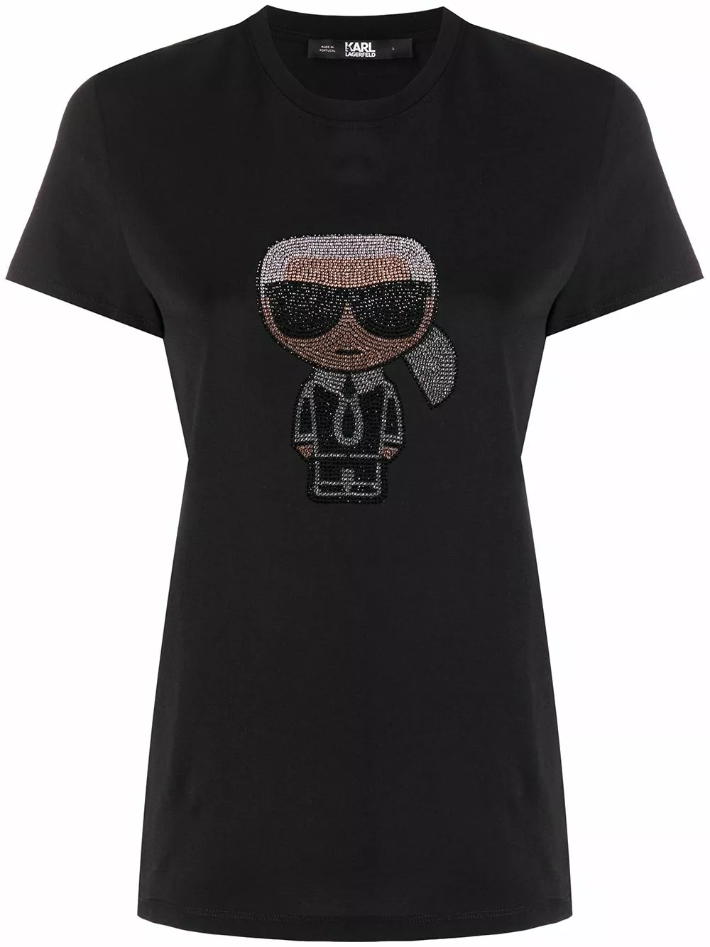 Black cotton Ikonik rhinestone Karl T-Shirt from Karl Lagerfeld. Featuring a ribbed round neck, short sleeves, a straight hem, a rear logo stamp and rhinestone Karl motif.