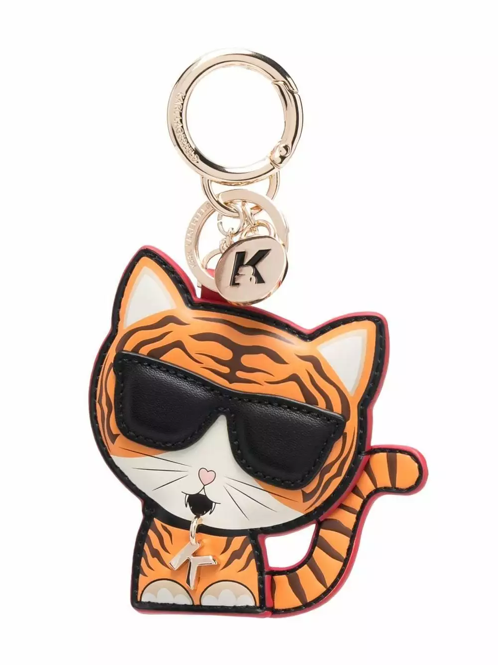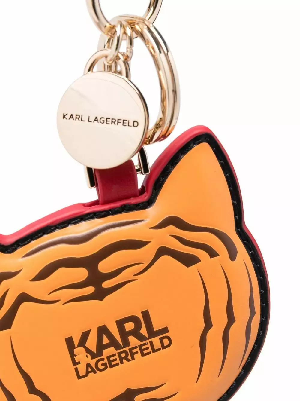 Crafted from leather in orange and black hues, this K/Ikonik keyring from Karl Lagerfeld is a tribute to the designer’s pet cat, Choupette.Â