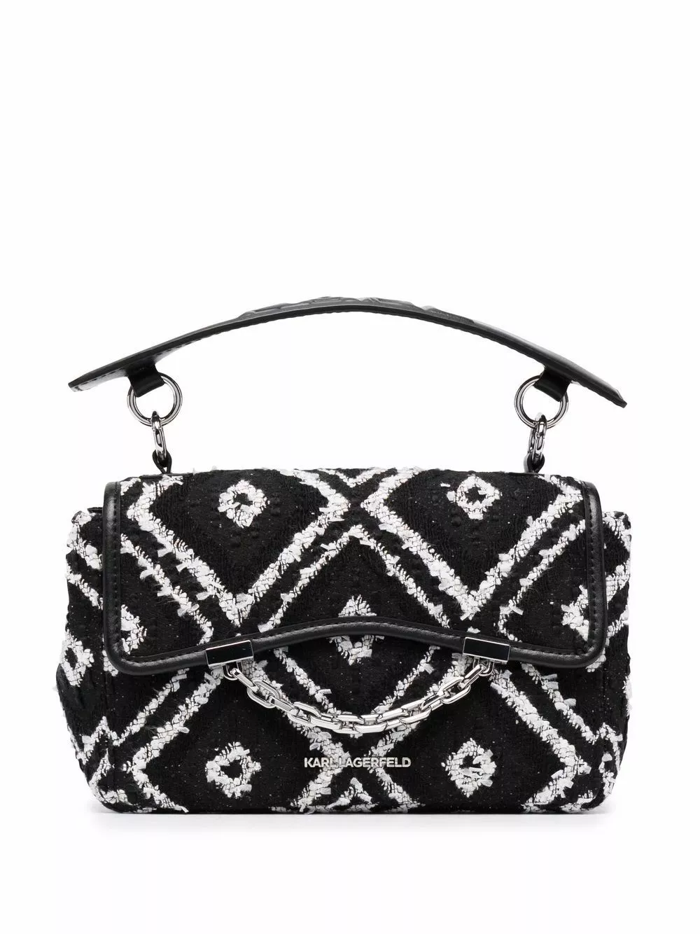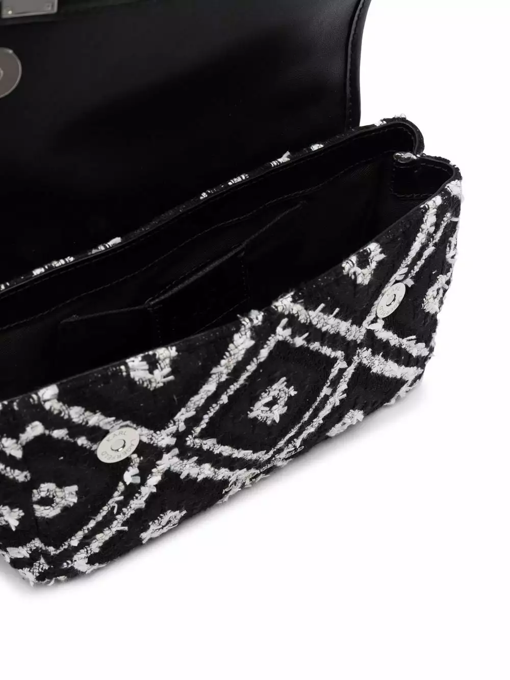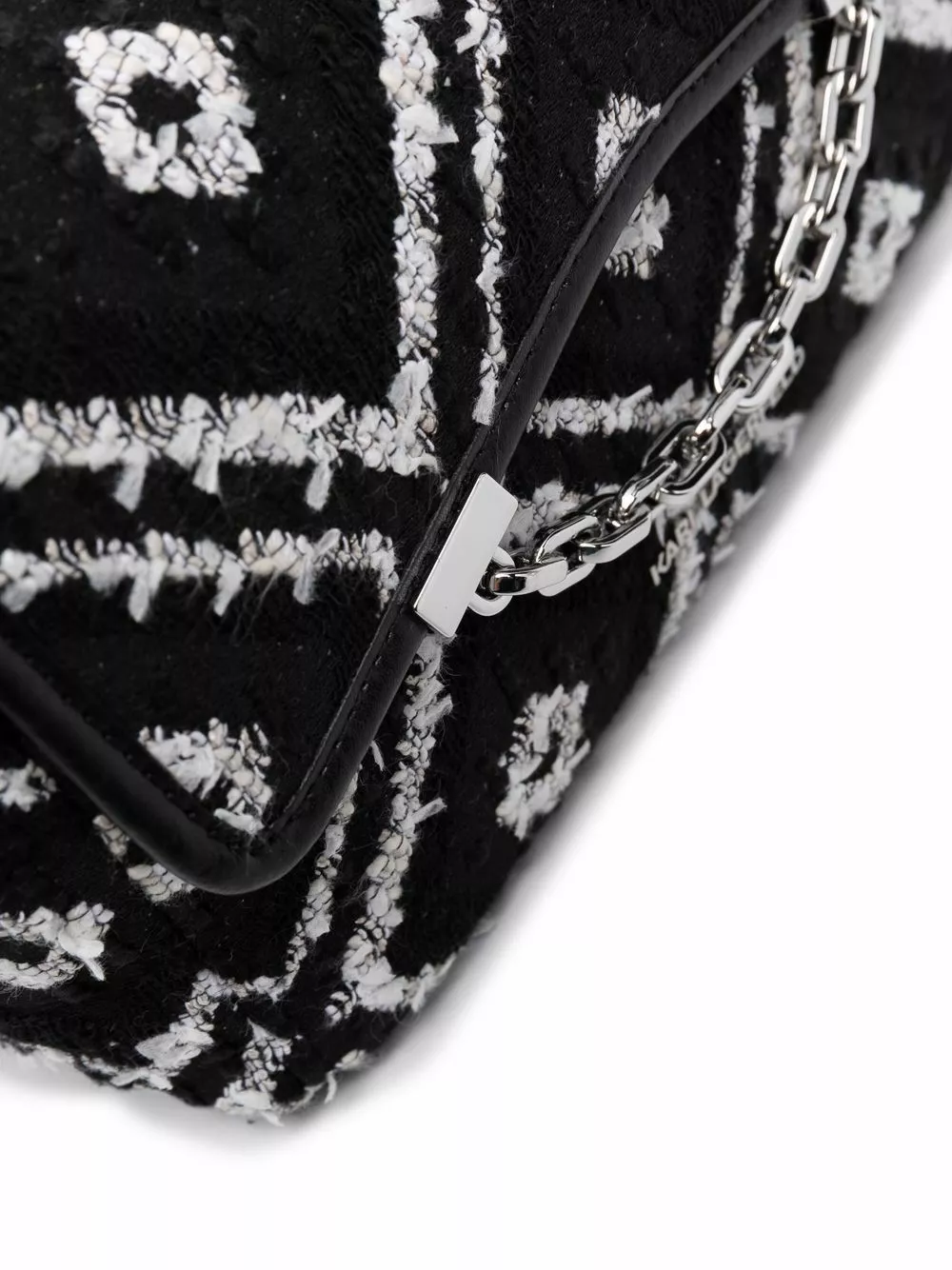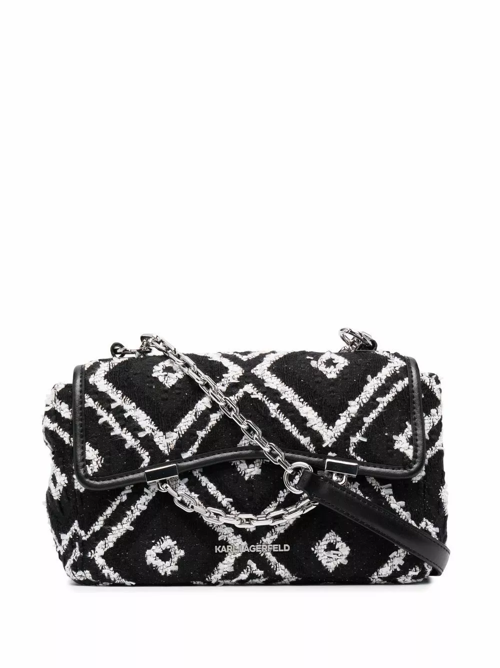 Karl Lagerfeld will remain one of the most emblematic icons of the luxury fashion industry. With his name, this K/Karl Seven soft crossbody bag stands out for its patterned jacquard in black and white and calf leather-cotton blend construction.