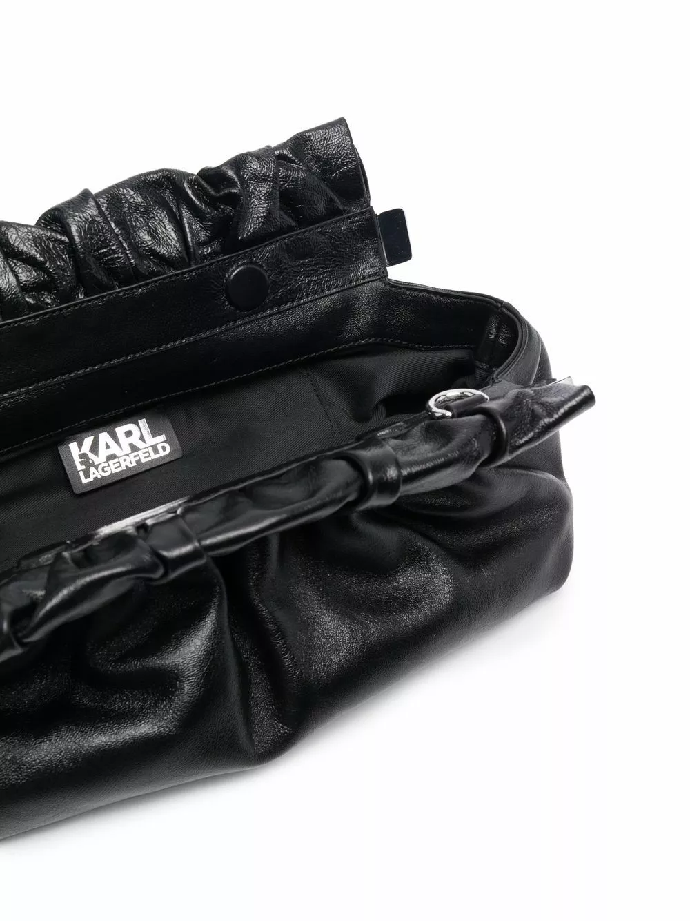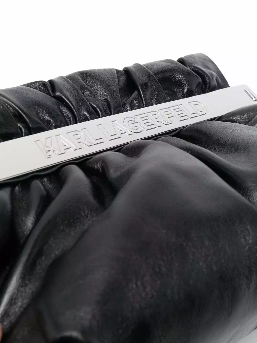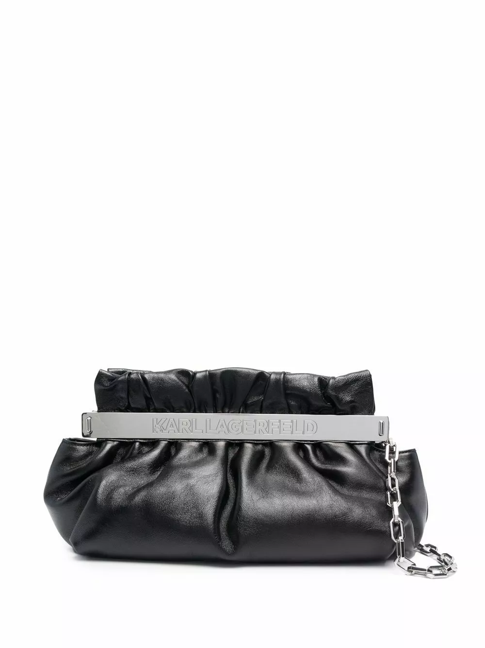The K/Kross bag is one of Karl Lagerfeld’s new signature styles for SS22. Presented in a black hue, this clutch iteration is distinguished by the silver-tone logo-engraved plaque to the front.
