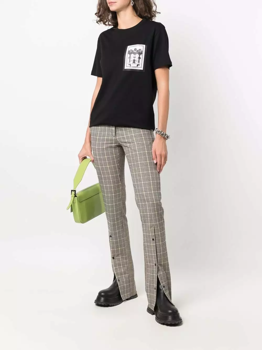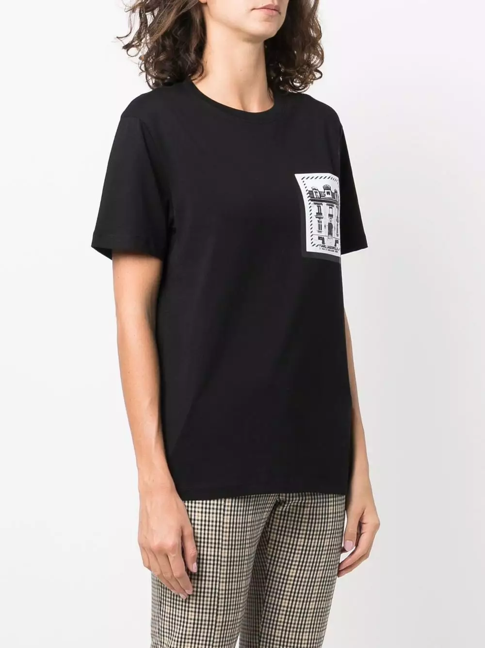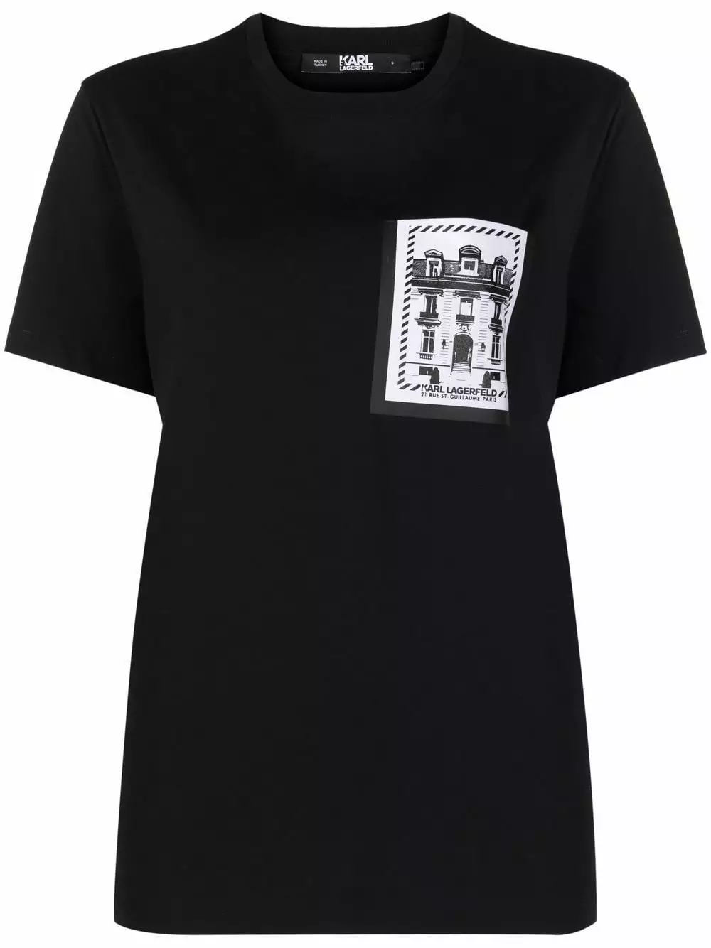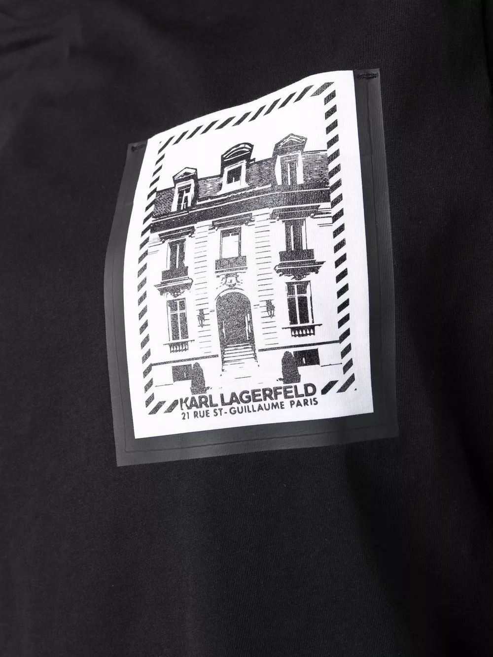 Black/white cotton K/Maison-print cotton T-shirt from KARL LAGERFELD featuring logo print at the chest, round neck, short sleeves and straight hem.