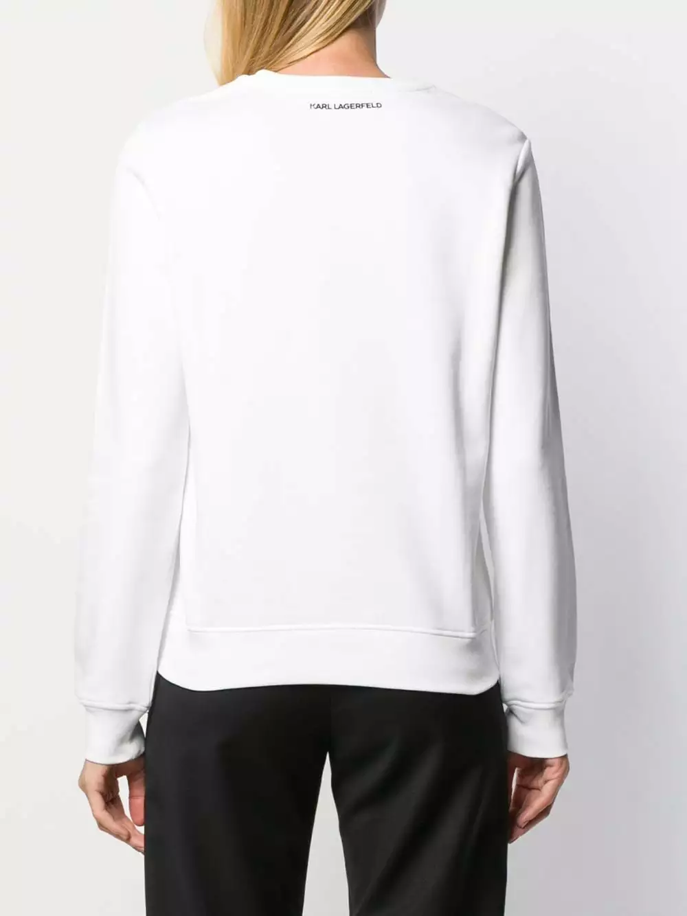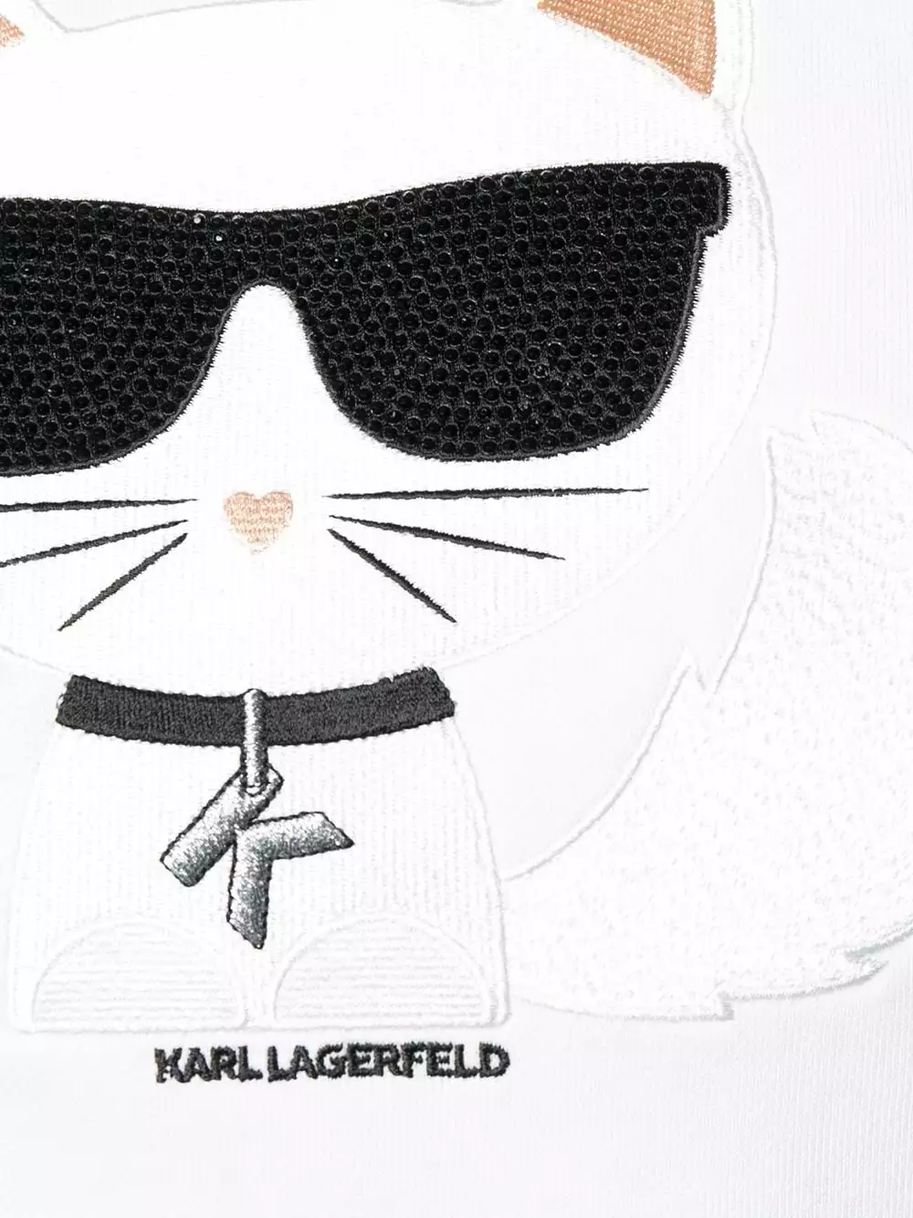 White cotton Karl Cat jumper from Karl Lagerfeld featuring embroidered details, glitter details and a crew neck.
