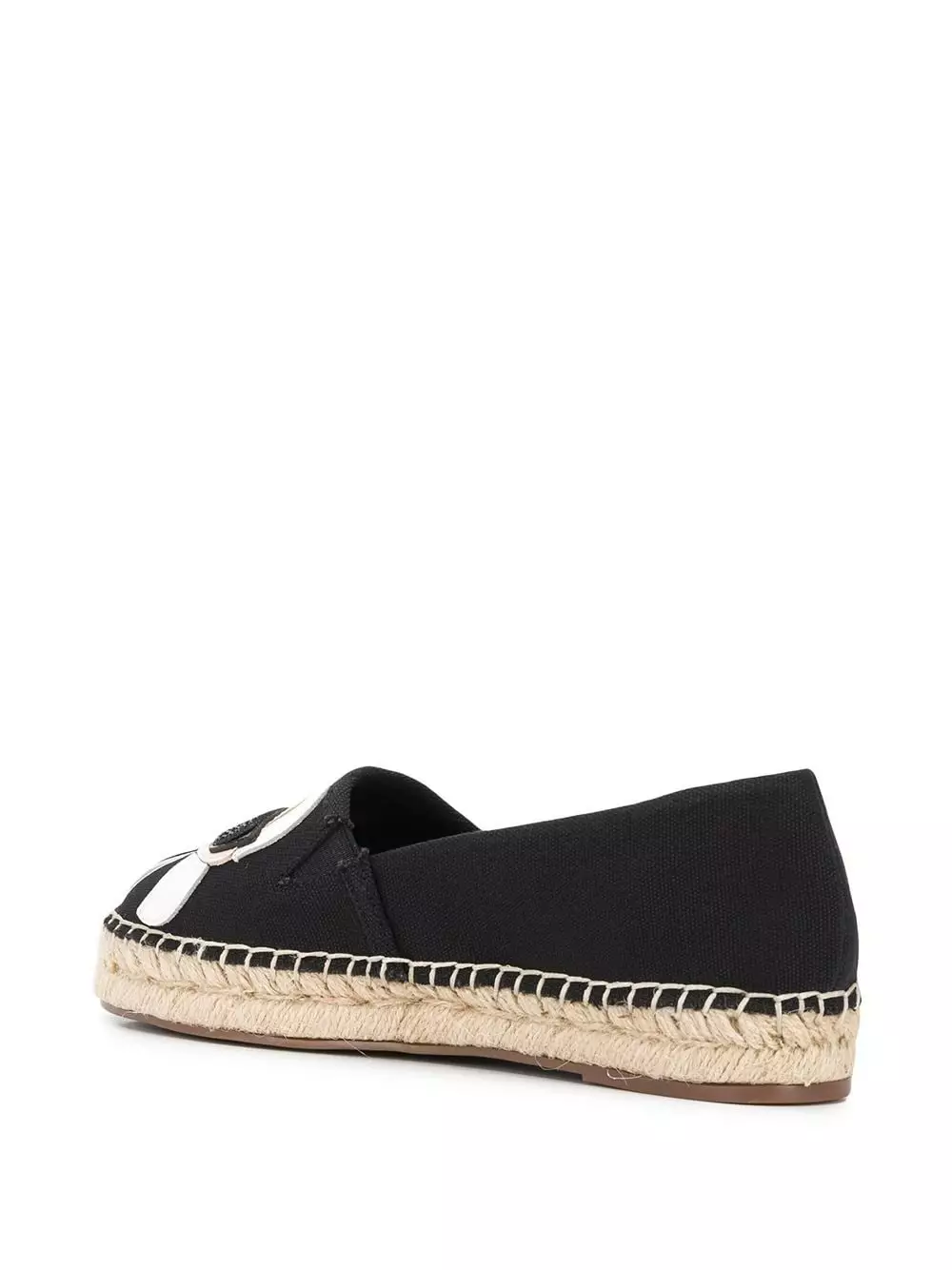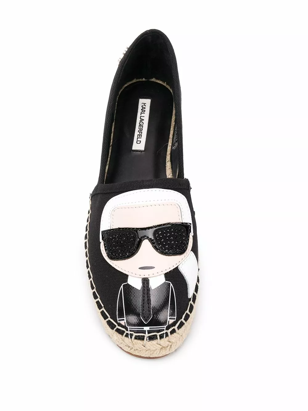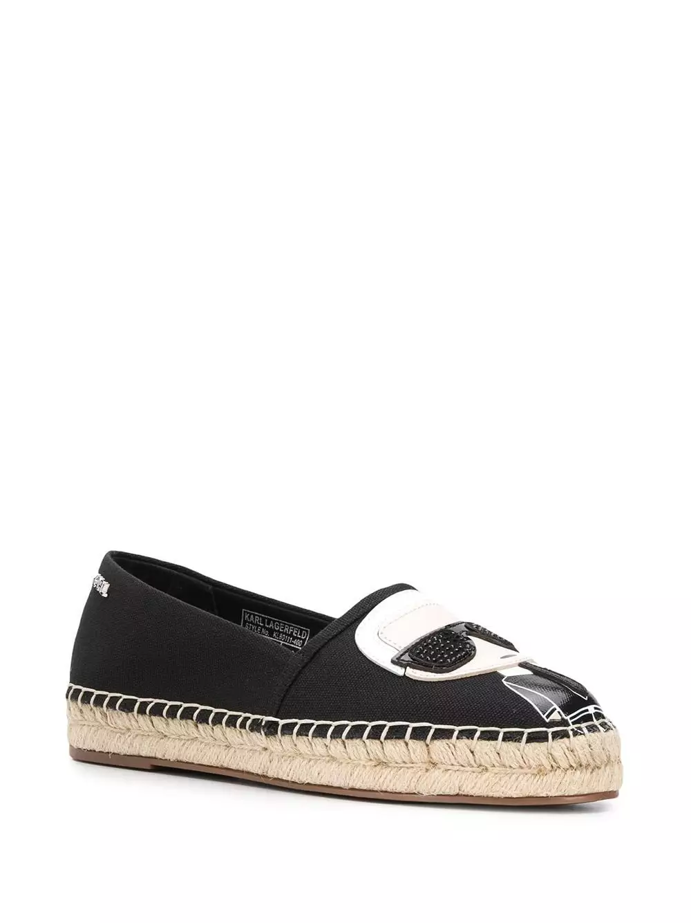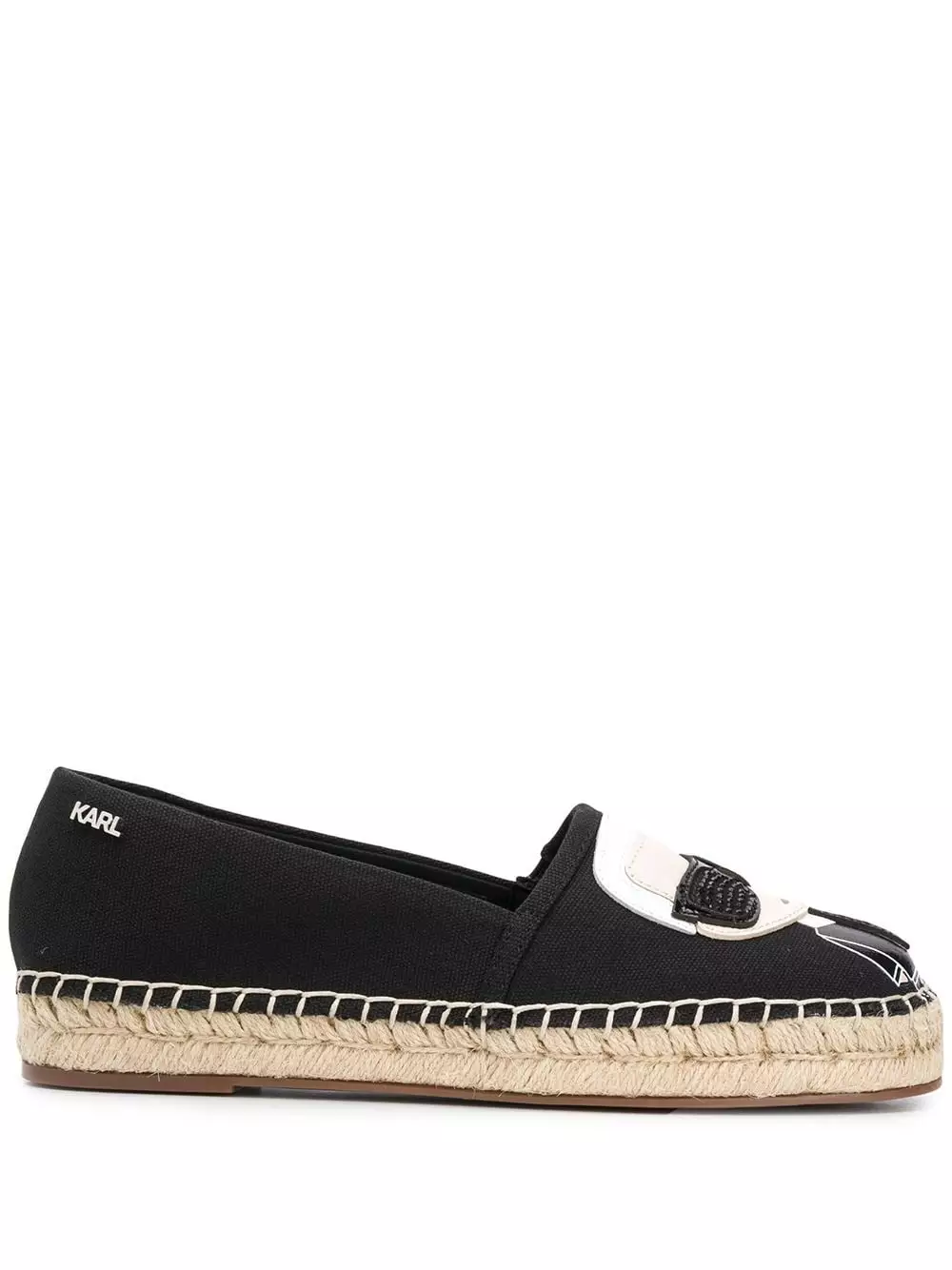 Black Karlito slip-on espadrilles from Karl Lagerfeld featuring an embroidered design, an almond toe, a branded insole, a flat sole and a flat heel.