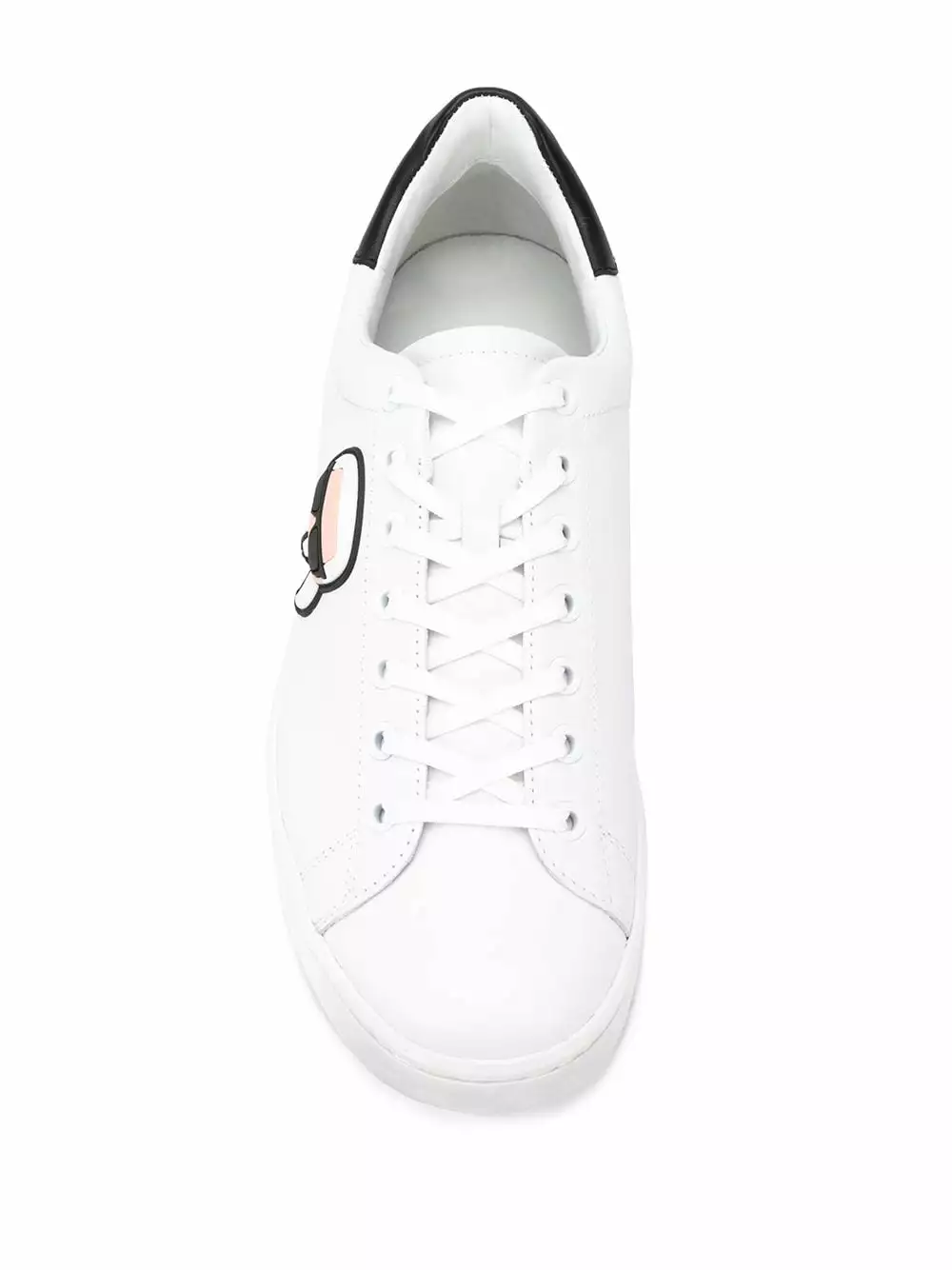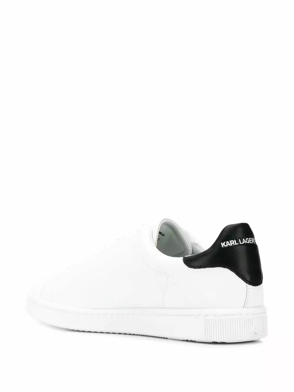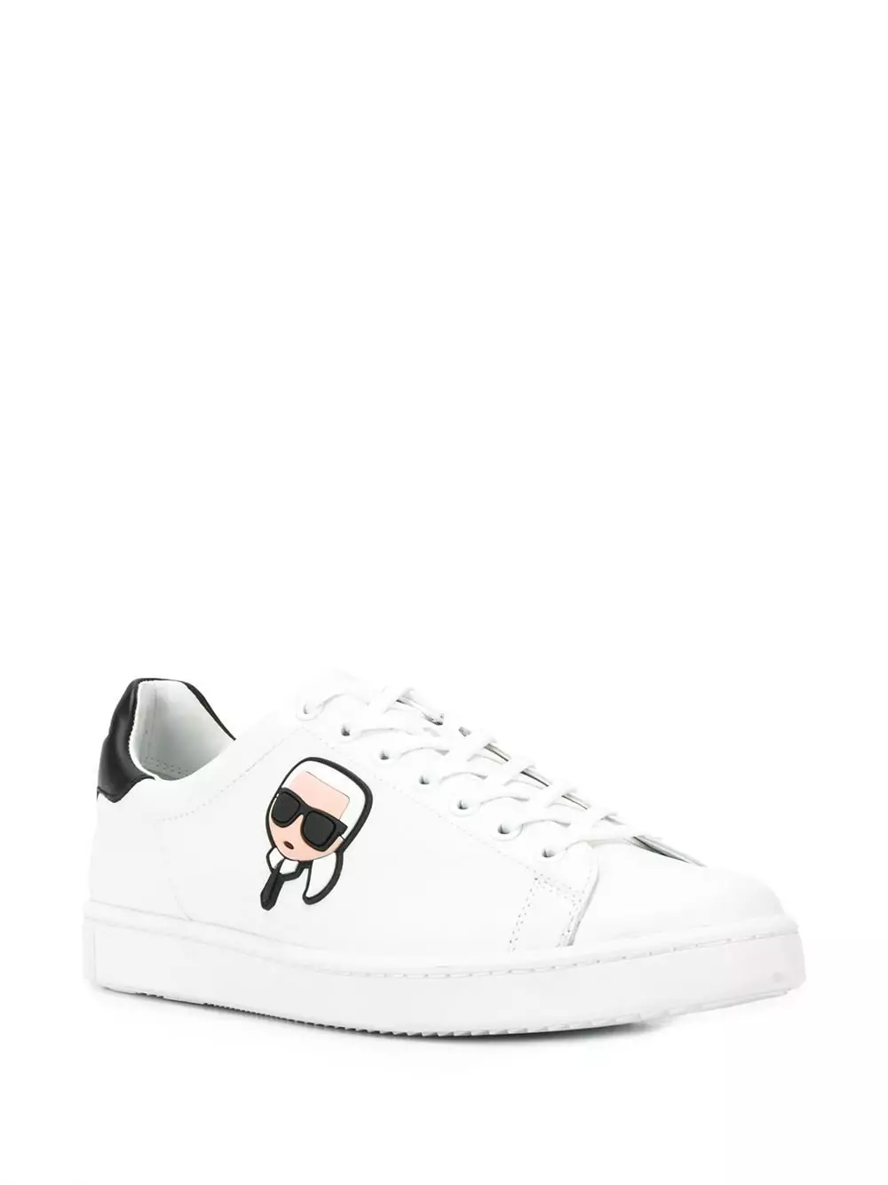 White leather Kourt Karl Ikonik 3d sneakers from Karl Lagerfeld featuring a round toe, a flat rubber sole, a lace-up front fastening and a branded rear patch.