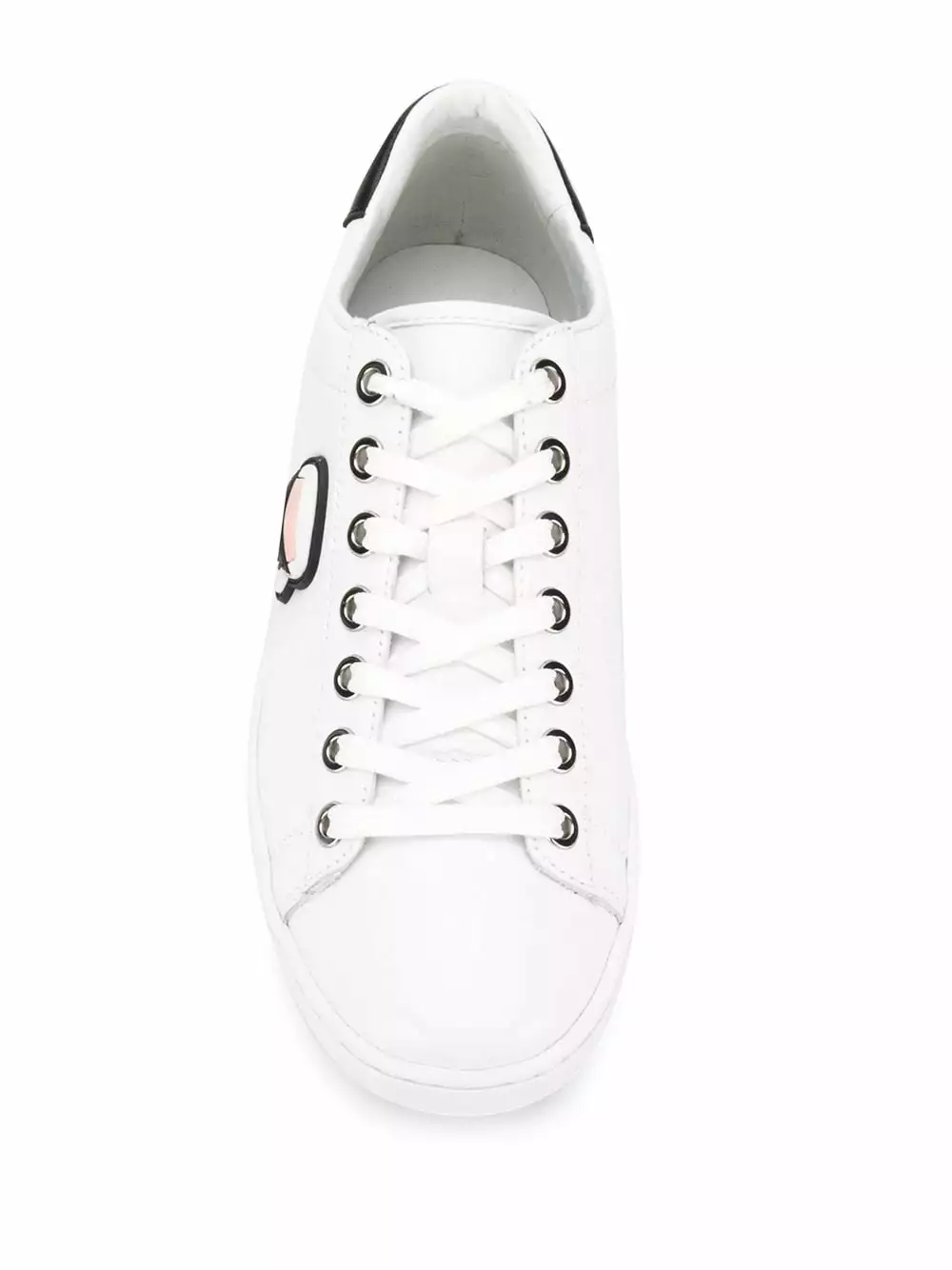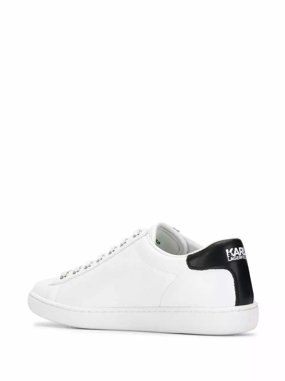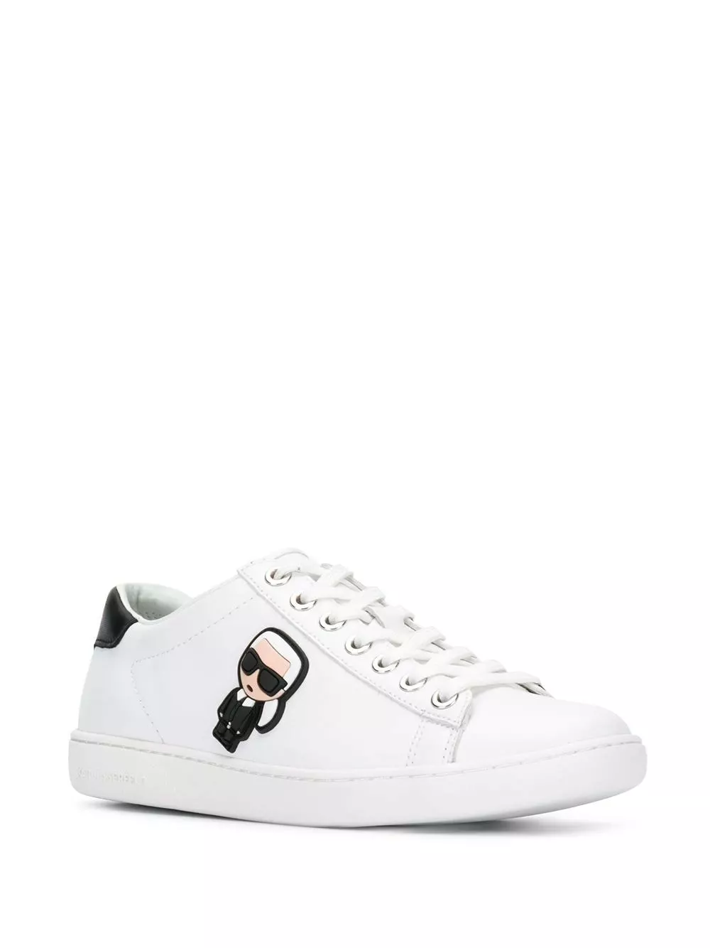 White leather Kupsole II Ikonik low-top sneakers from Karl Lagerfeld featuring an Ikonik Karl patch to the side, a flat rubber sole, a lace-up front fastening, a contrasting heel counter and a round toe.