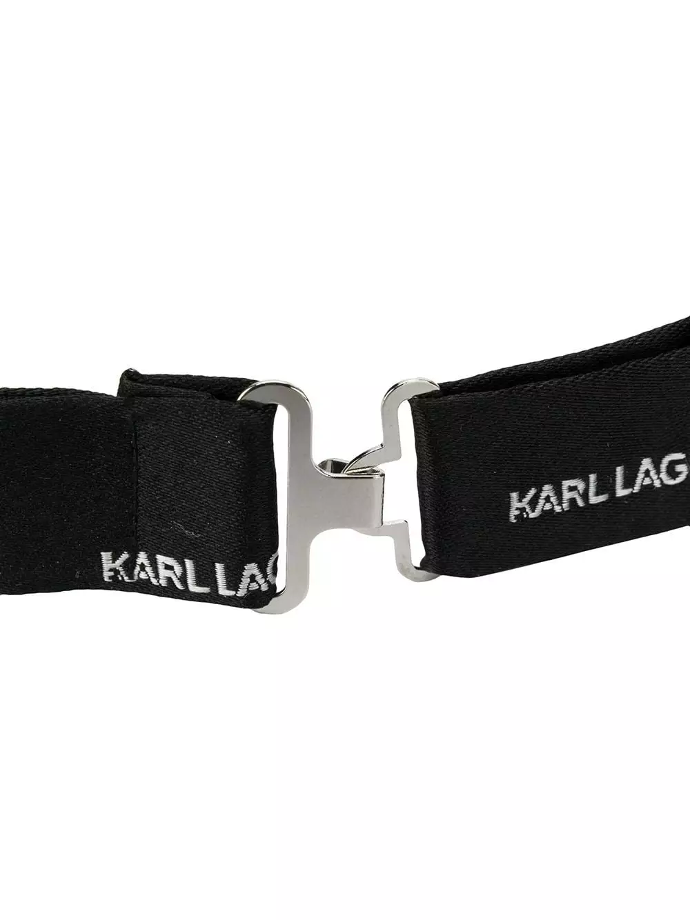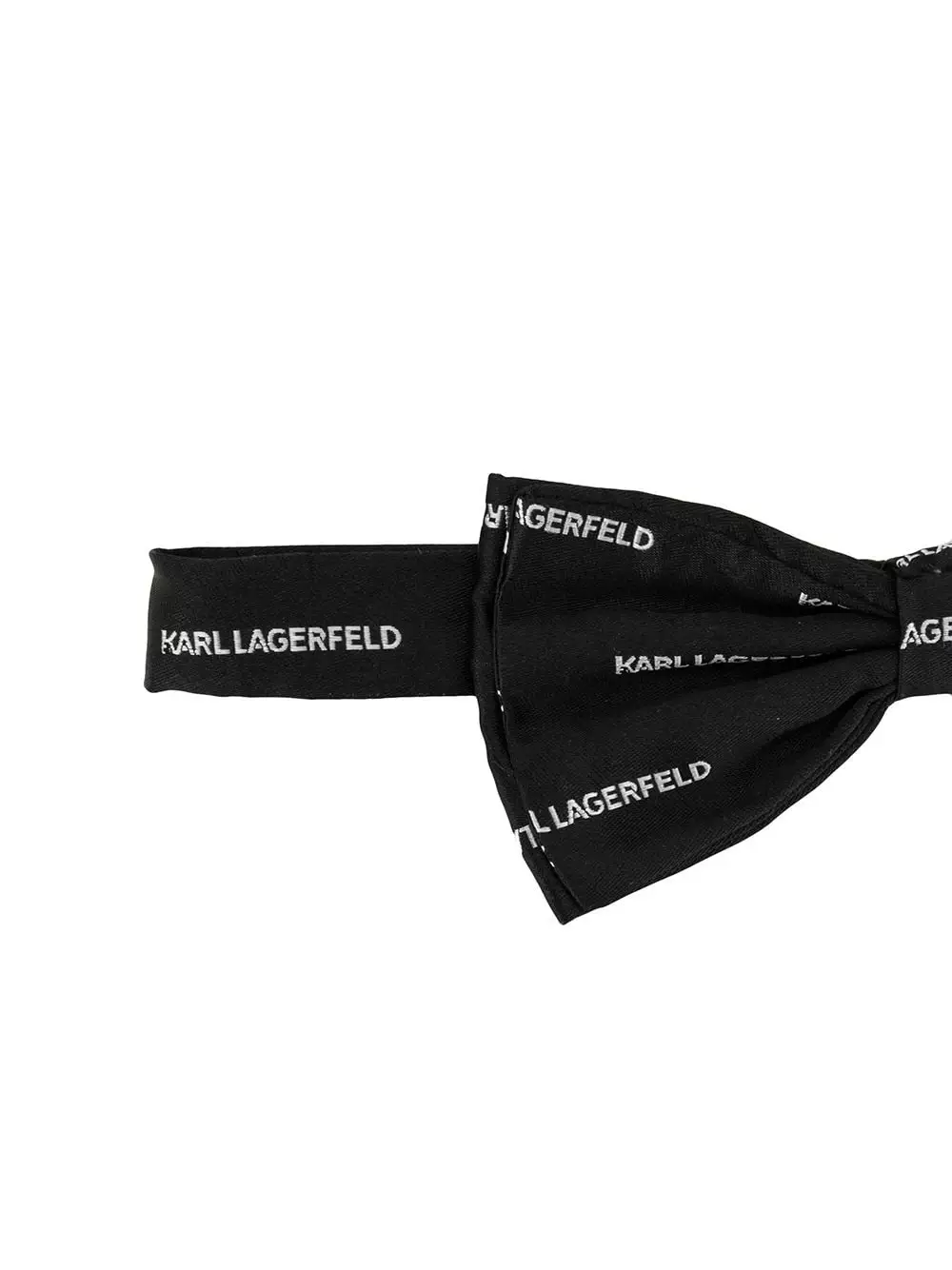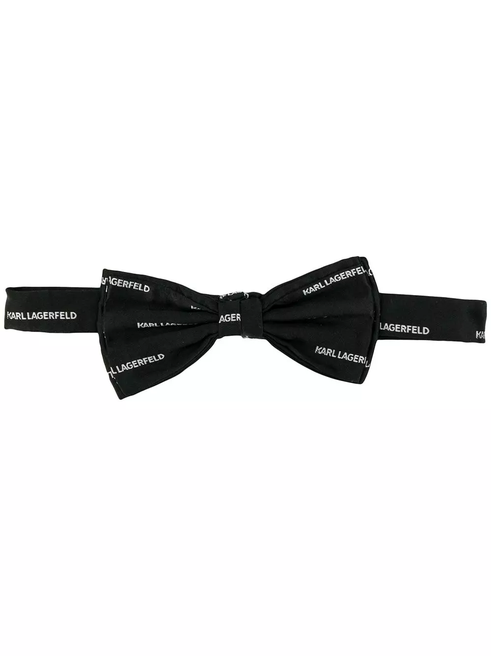 Black silk logo bow tie from Karl Lagerfeld featuring a hook fastening, an all-over logo print and an adjustable fit.