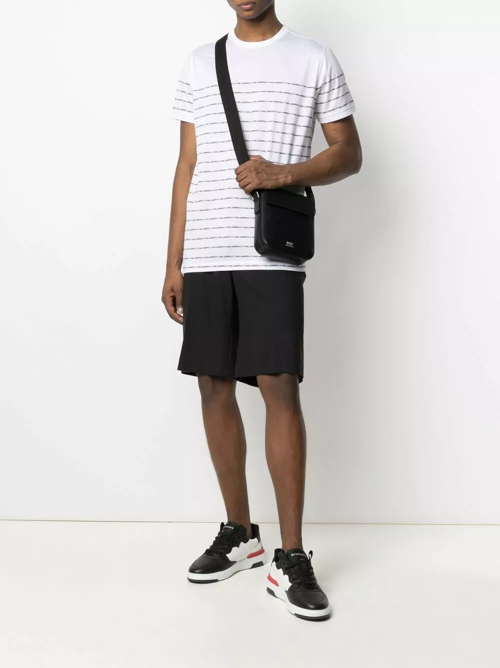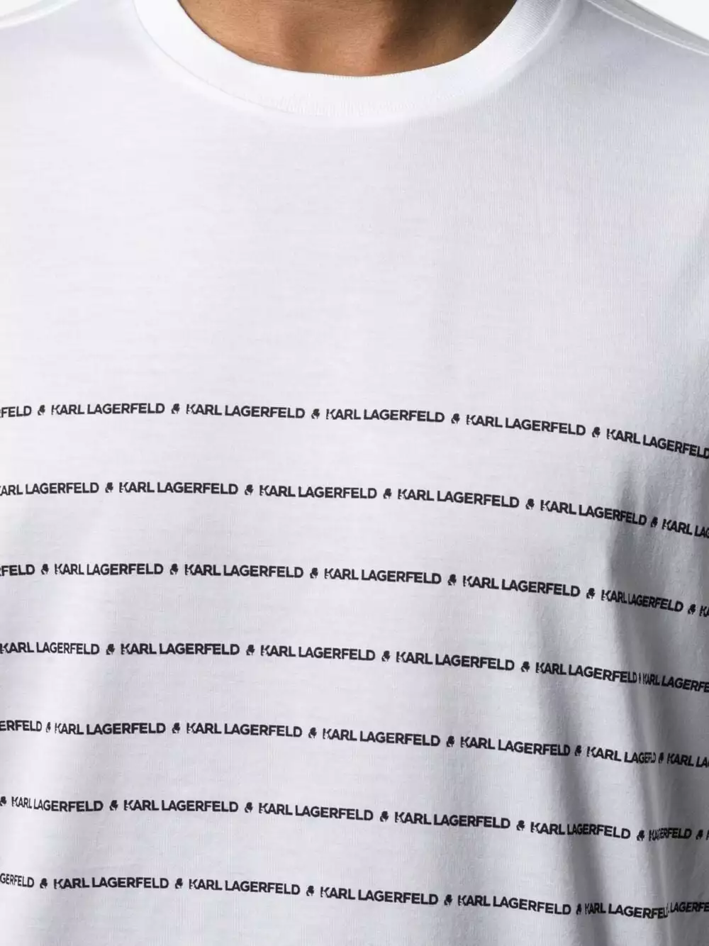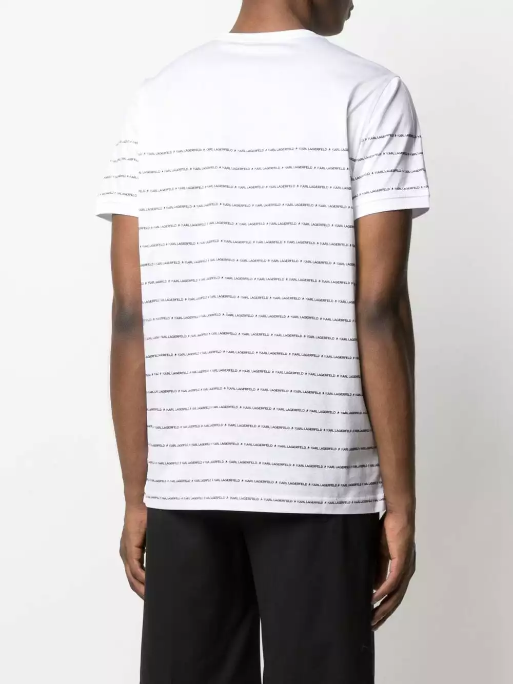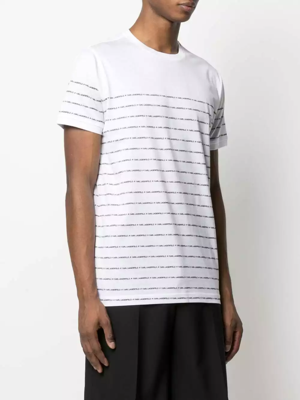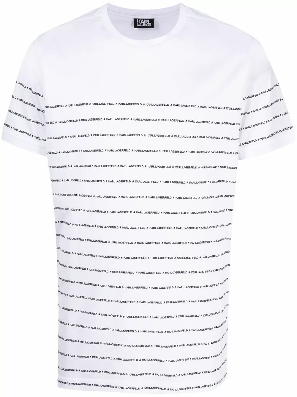 White/black cotton logo crew-neck T-shirt from KARL LAGERFELD featuring logo print to the front, crew neck and short sleeves.