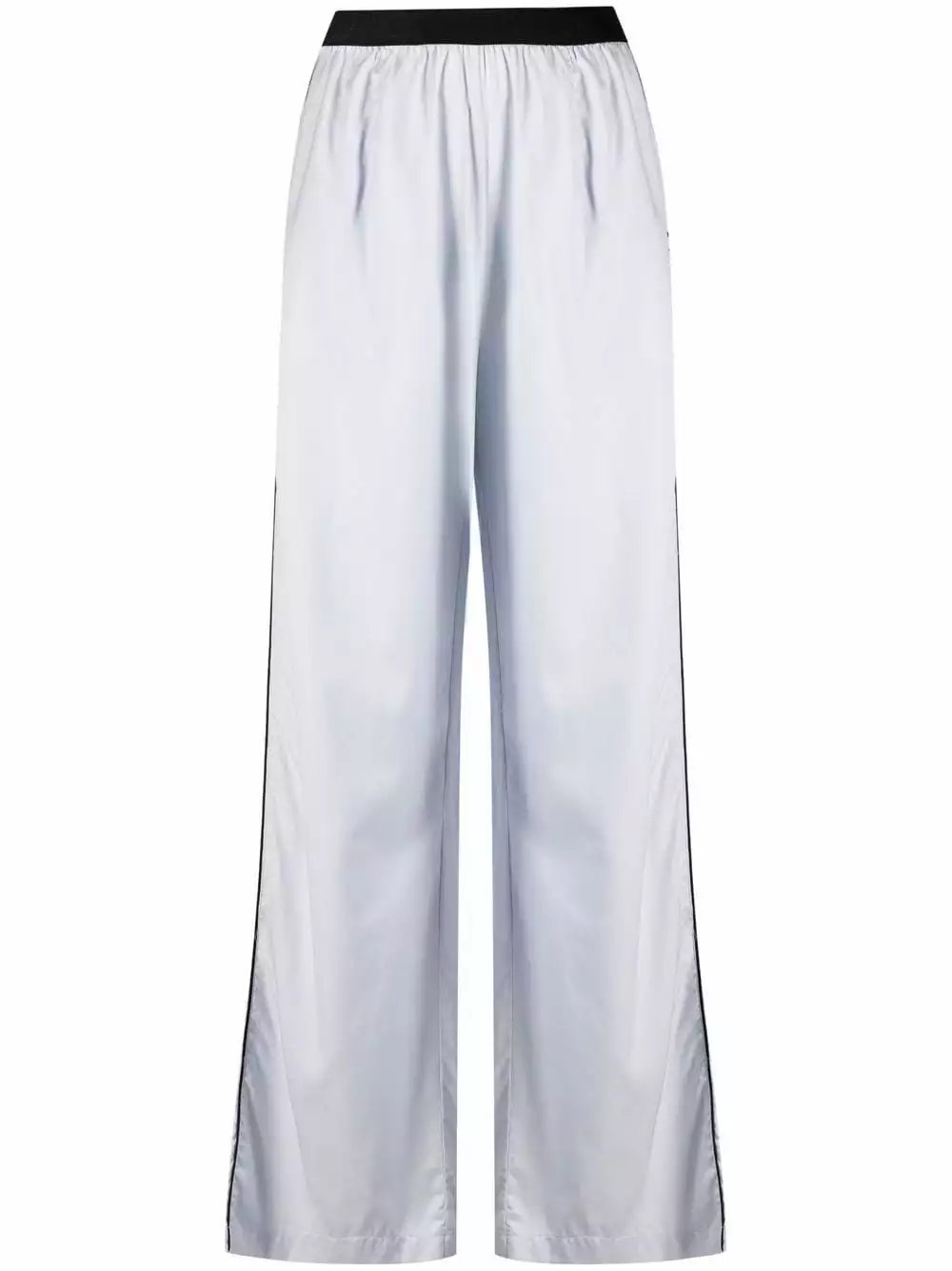 White/black cotton-blend logo-embroidered pajama trousers from KARL LAGERFELD featuring elasticated waistband, embroidered logo and straight leg.