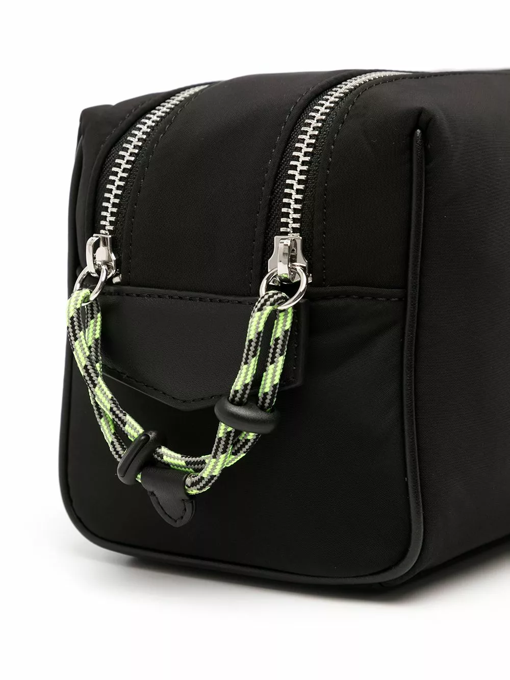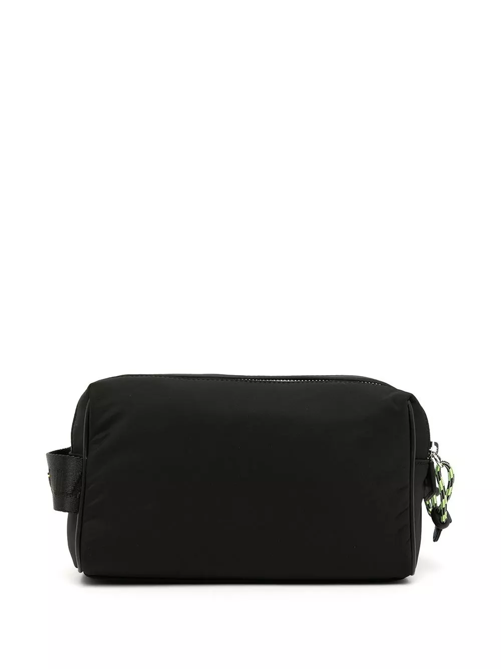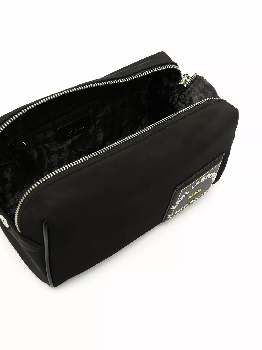 Black logo-patch wash bag from KARL LAGERFELD featuring logo patch to the front, internal zip-fastening pocket and double zip fastening.