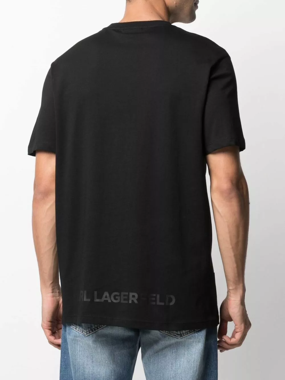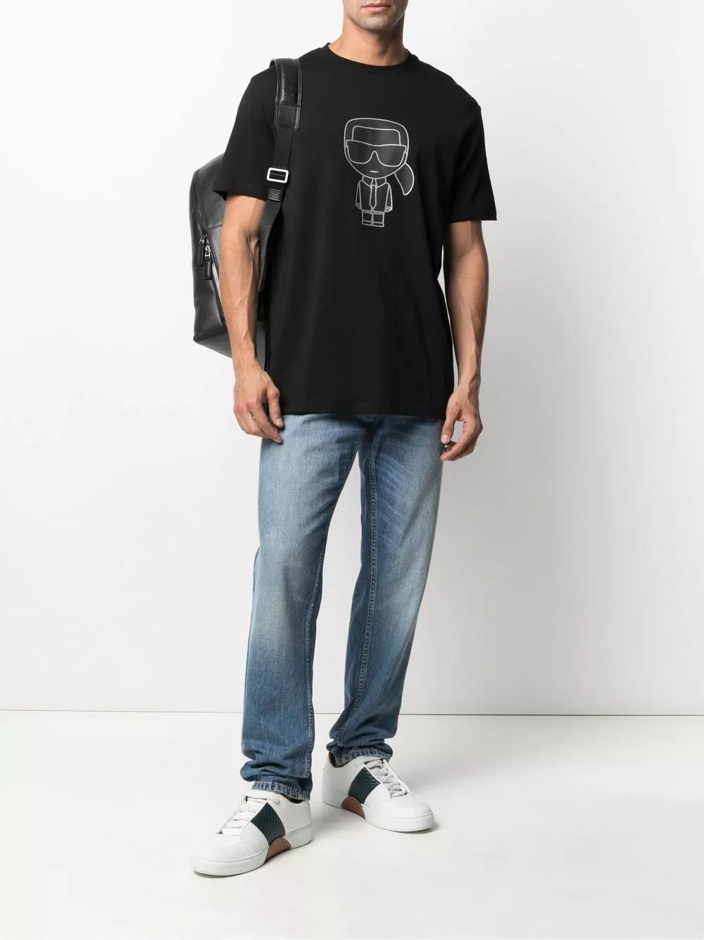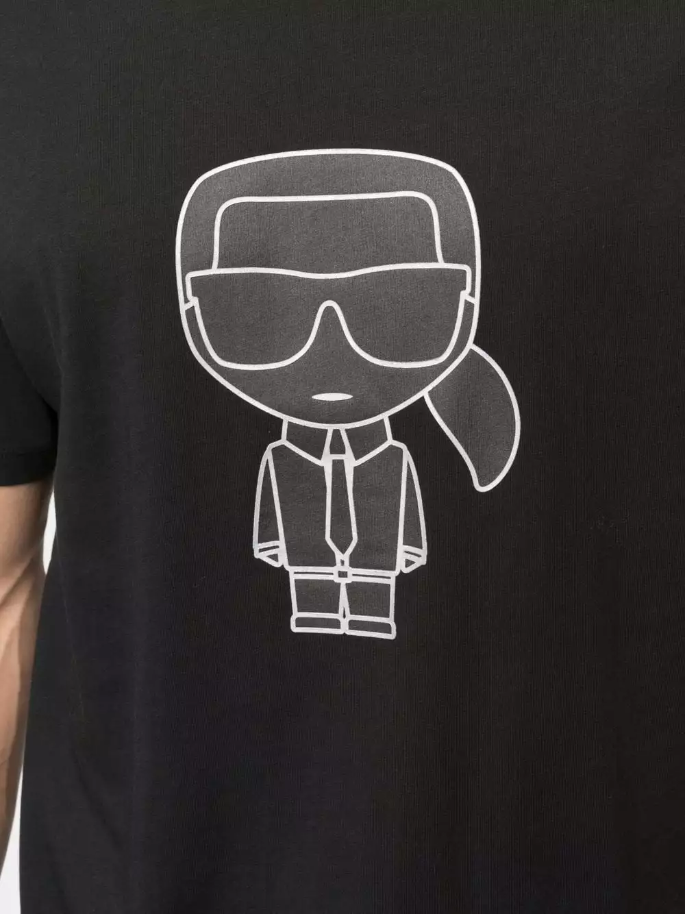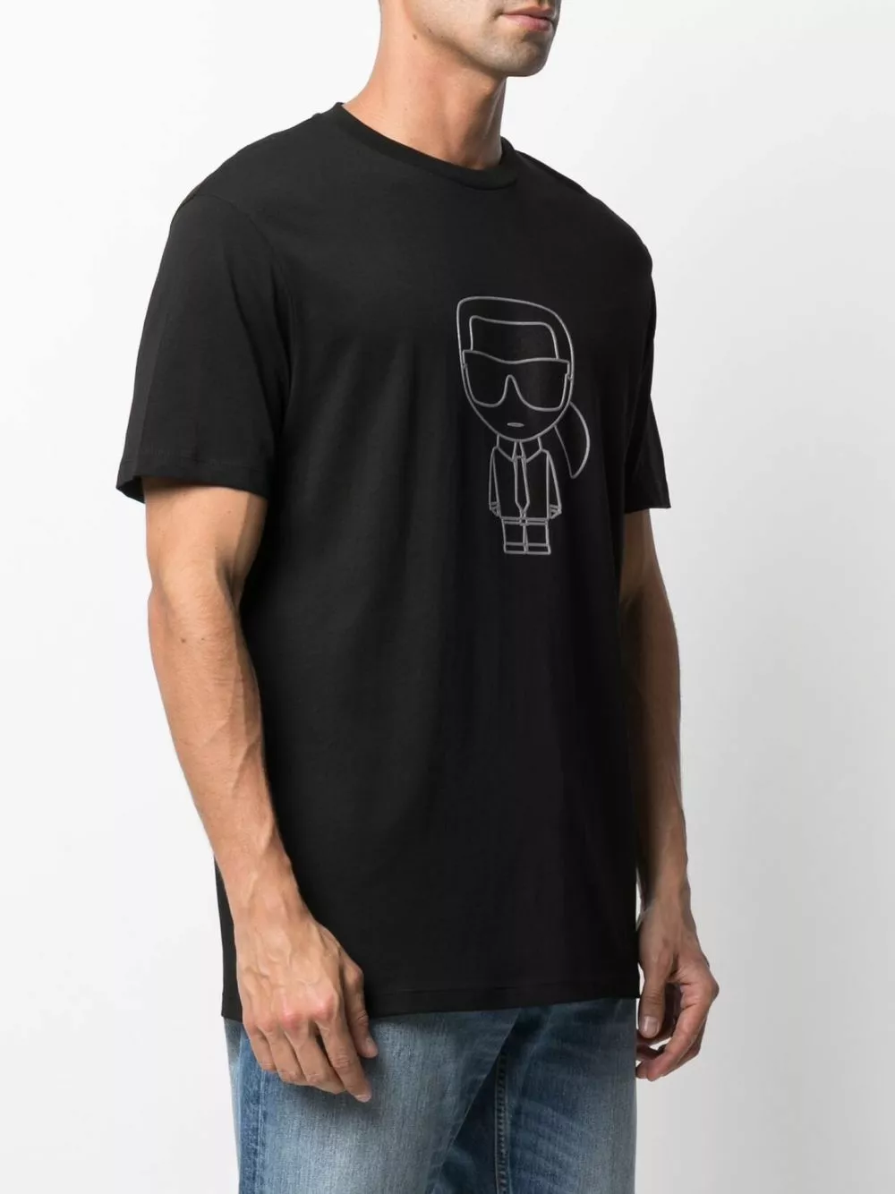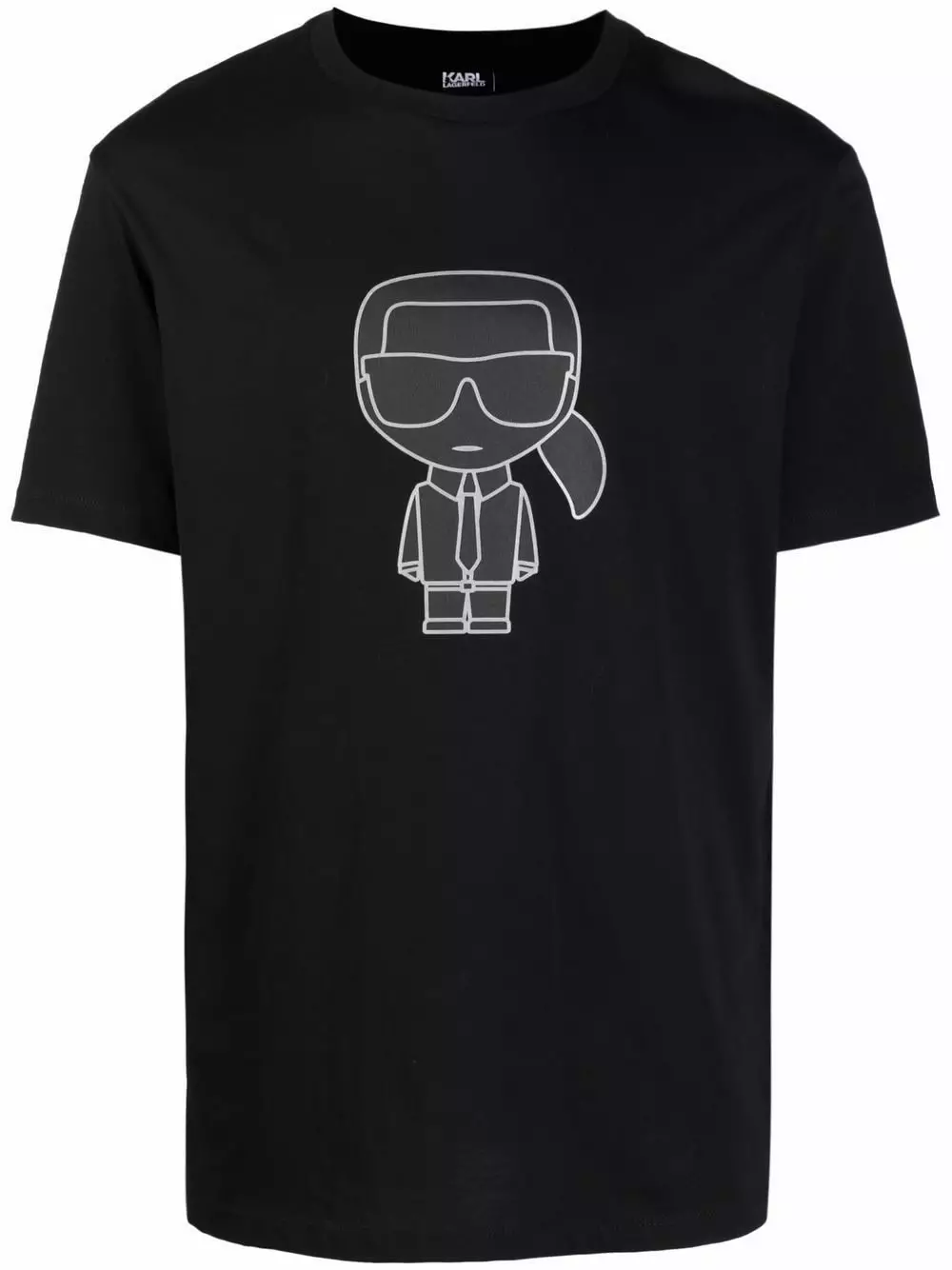 Karl Lagerfeld’s T-shirt pays homage to its namesake founder. This crew-neck style is printed with the cartoon-inspired logo of the late French designer at the chest, as well as his signature at the back.