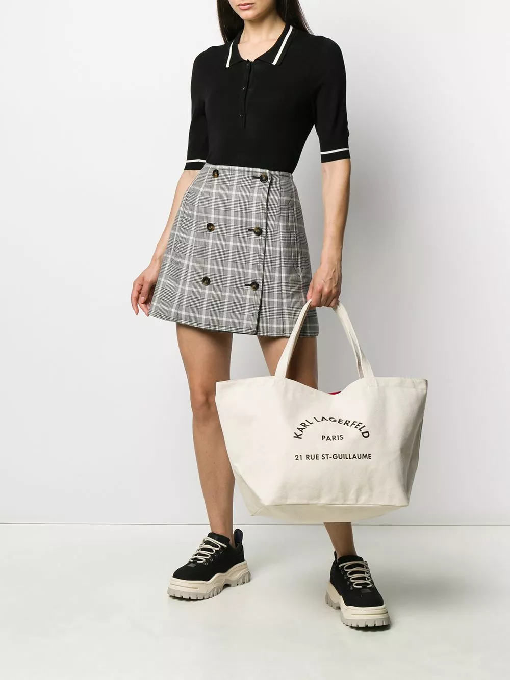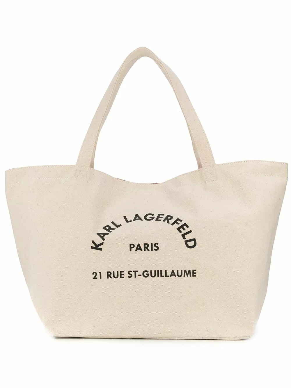 Nude cotton logo-print tote bag from Karl Lagerfeld featuring a printed logo to the front, a snap button closure, top handles, a main internal compartment, an interior zipped compartment and a printed lining.