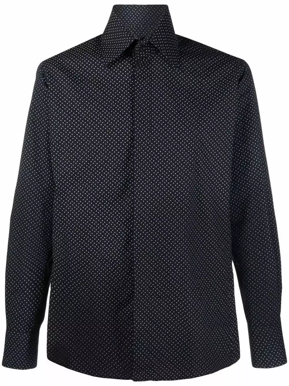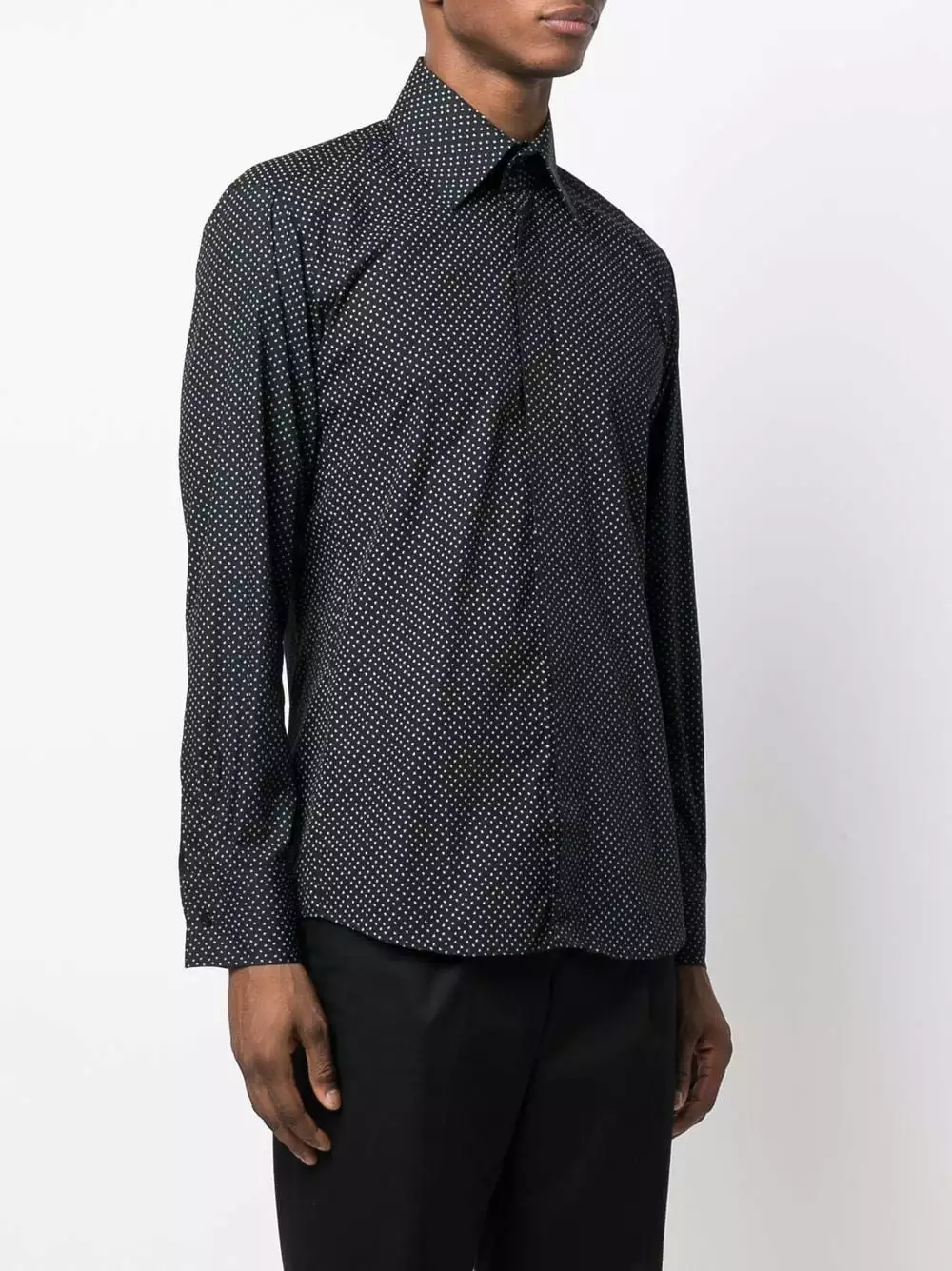 Karl Largerfeld is known for presenting timeless designs with a contemporary finish. This shirt is a fine demonstration, crafted from soft black cotton with an all-over polka dot print.Â