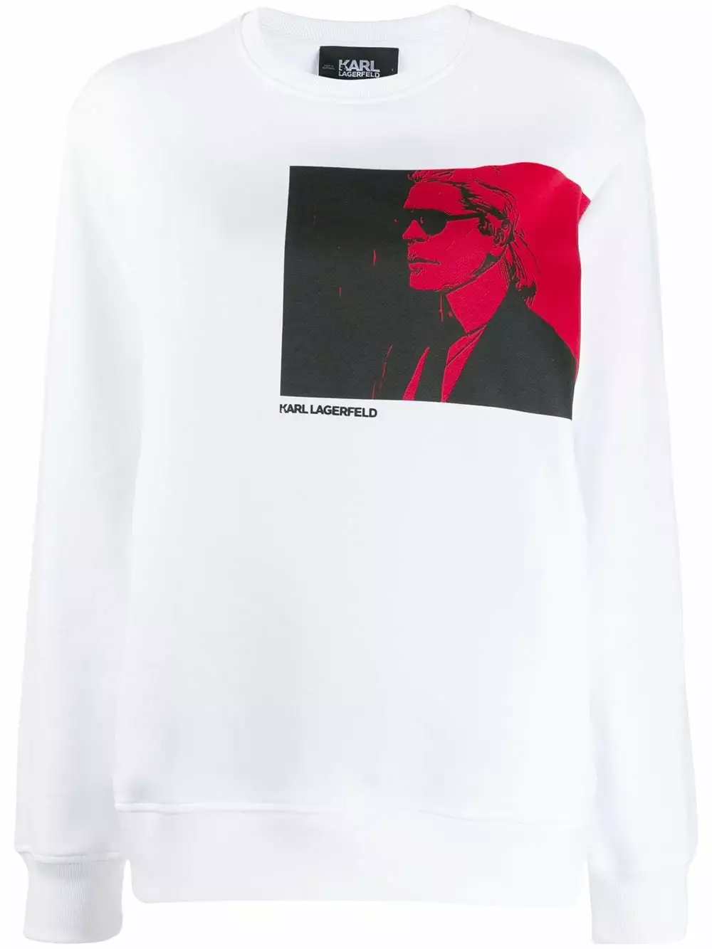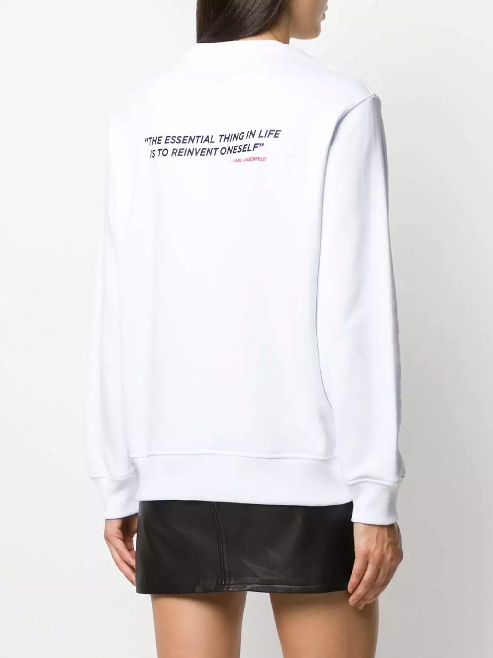 White cotton quote-print Karl sweatshirt from Karl Lagerfeld featuring a Karl artwork print to the front, a Karl Lagerfeld quote print to the rear, a crew neck, long sleeves and a loose fit.