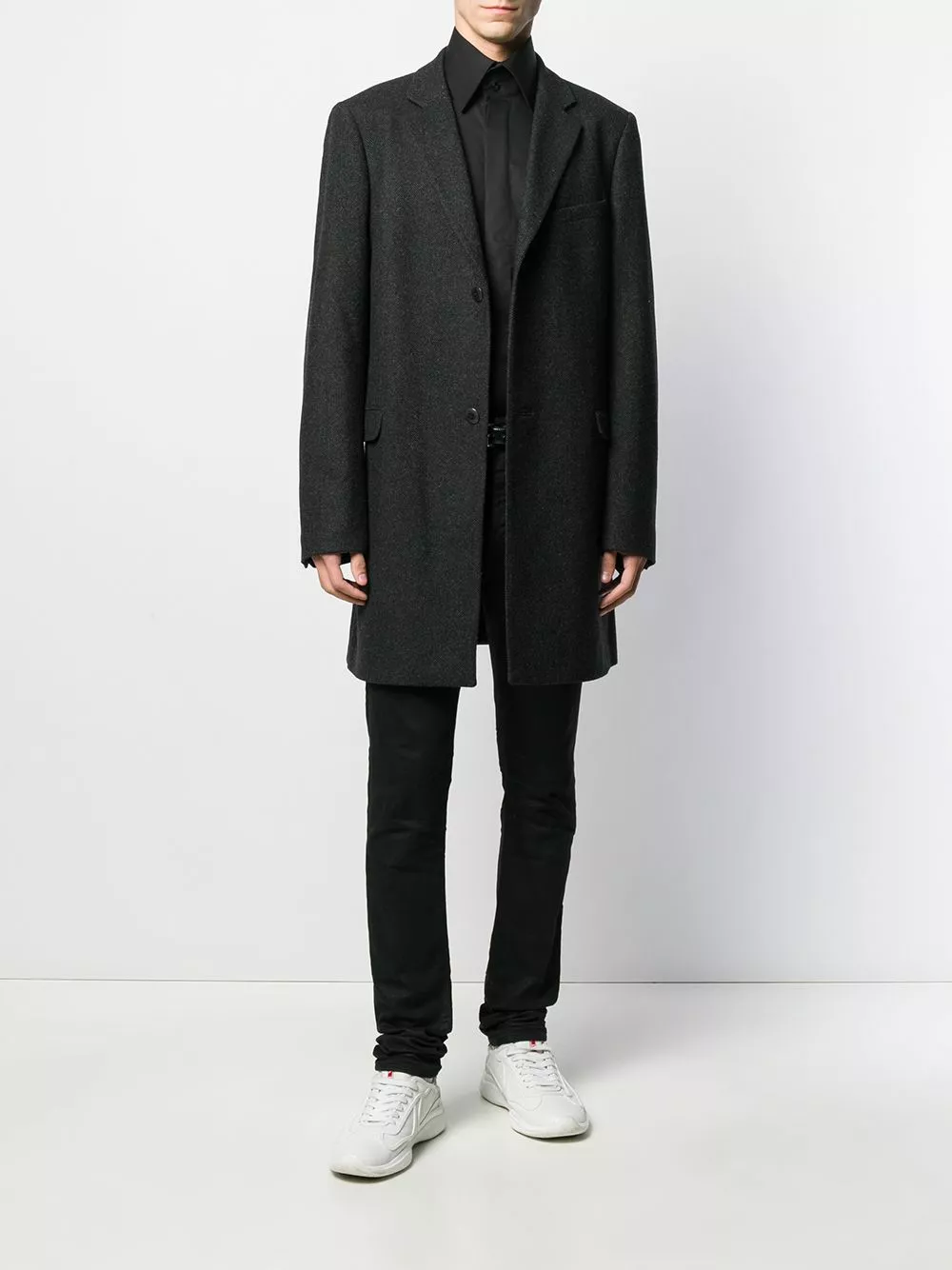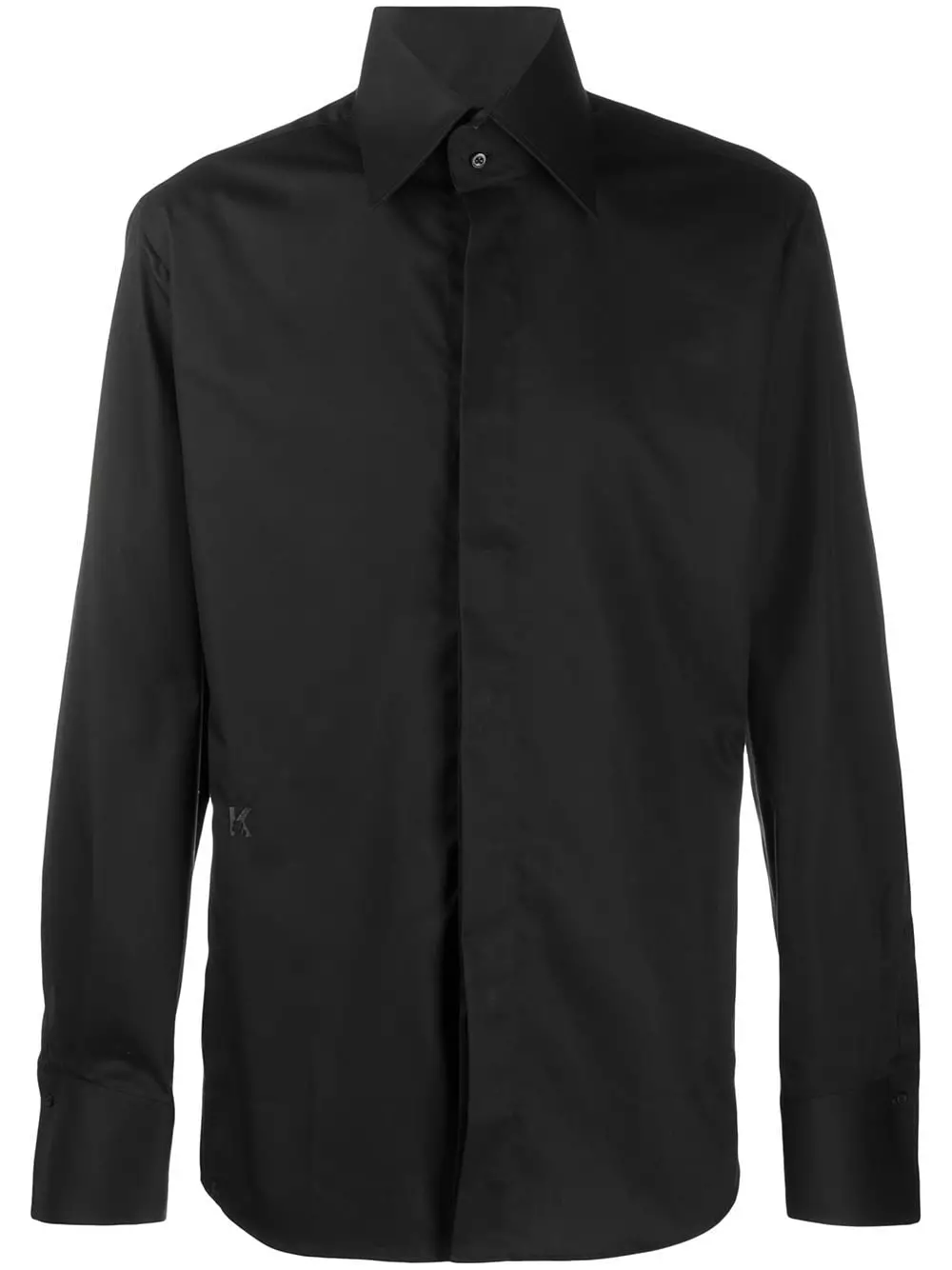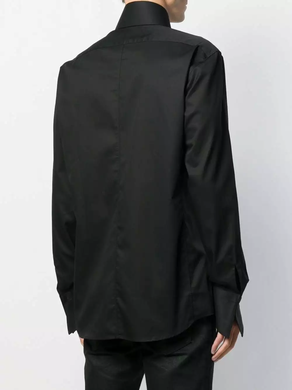 Black cotton shark collar shirt from Karl Lagerfeld featuring a classic collar, a front button placket, long sleeves, button cuffs and a straight hem.