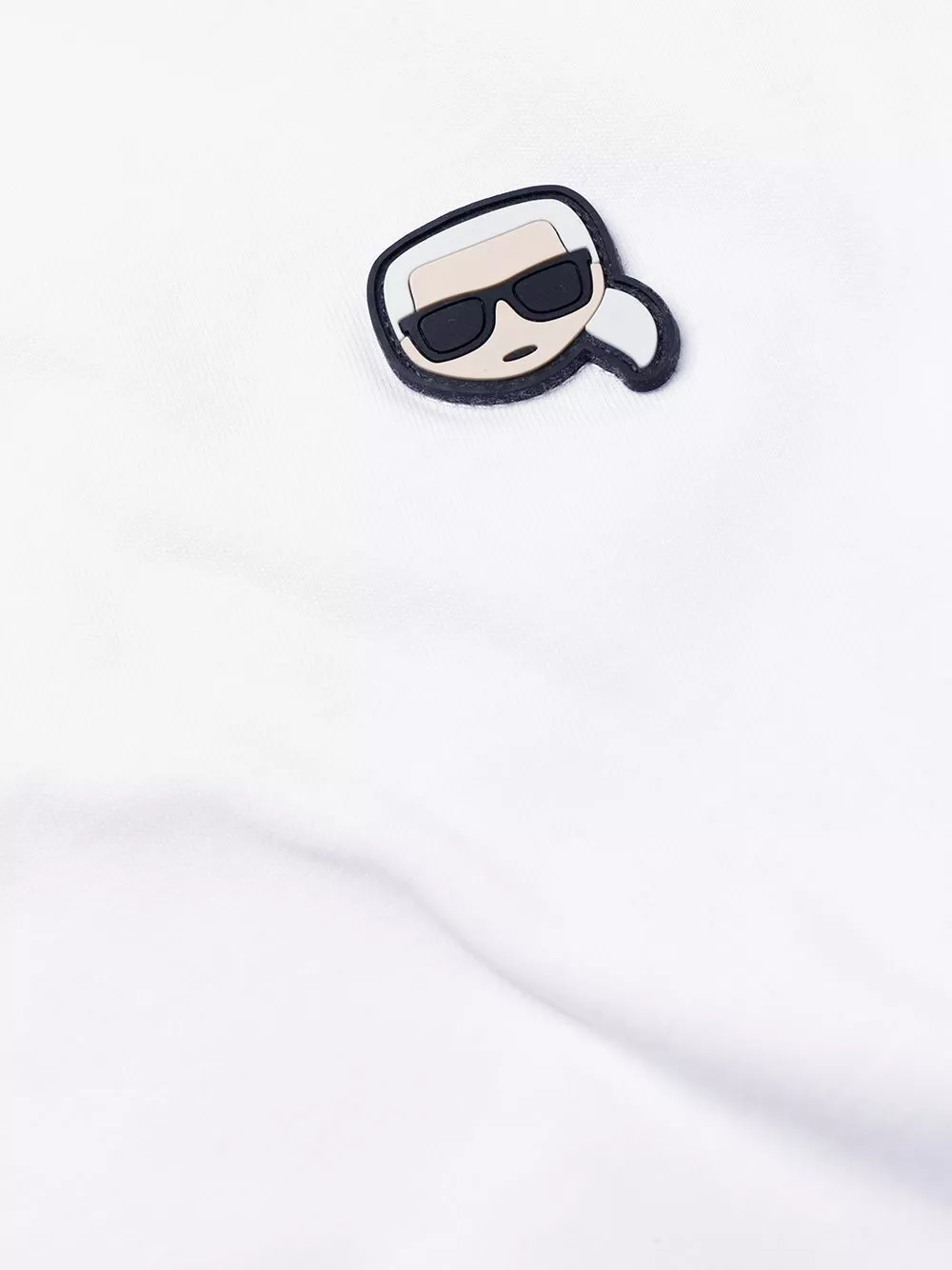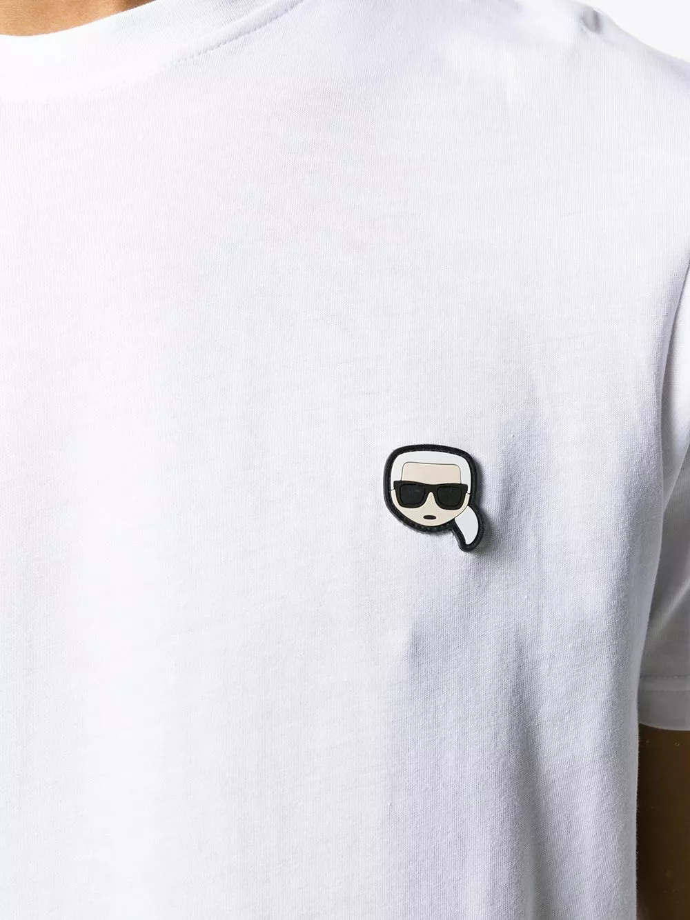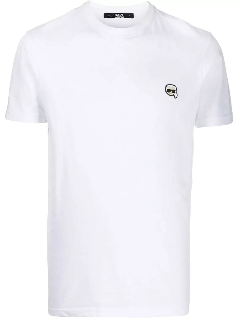 White cotton small patch T-shirt from Karl Lagerfeld featuring a round neck with welt finishing, short sleeves, a front logo patch and a straight hem.