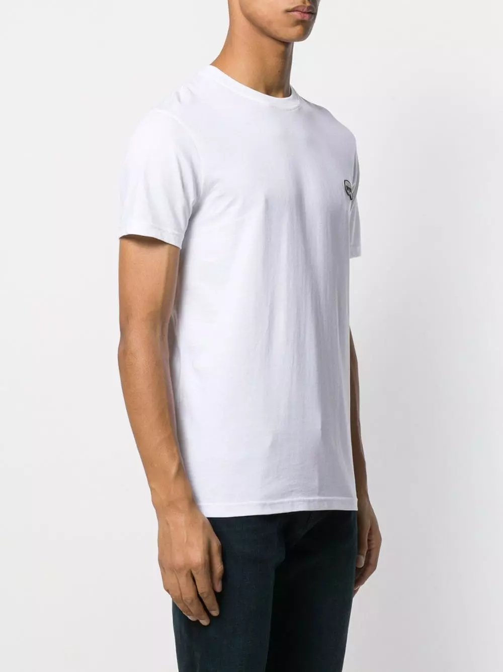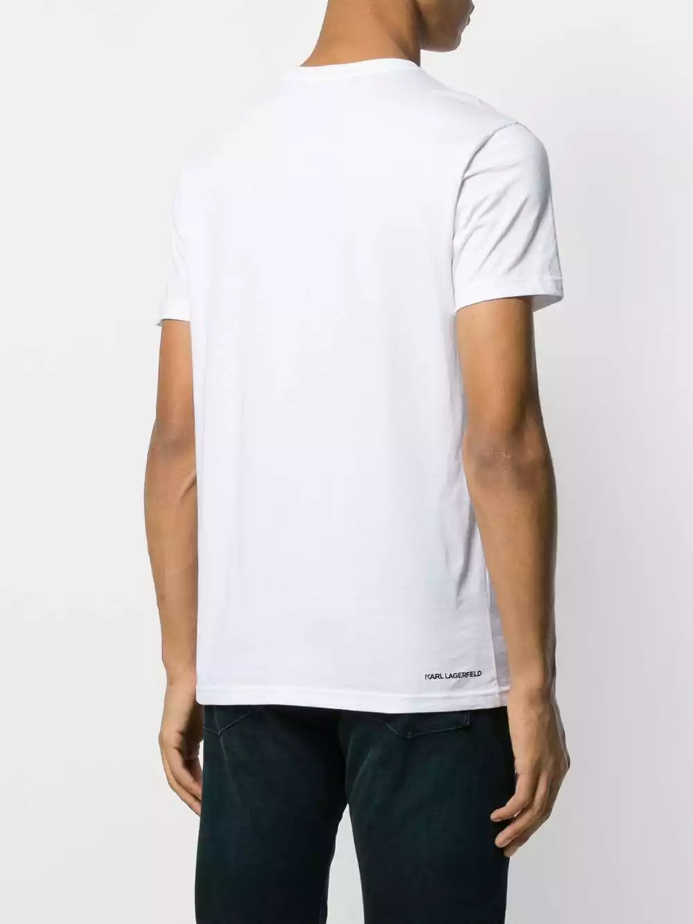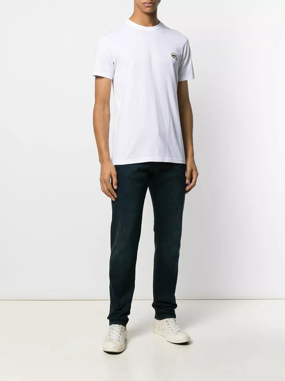White cotton small patch T-shirt from Karl Lagerfeld featuring a round neck with welt finishing, short sleeves, a front logo patch and a straight hem.