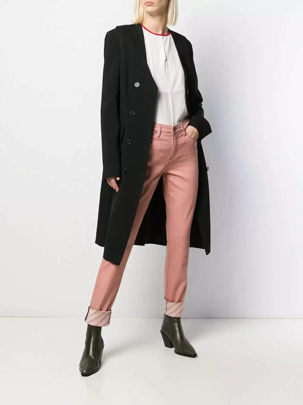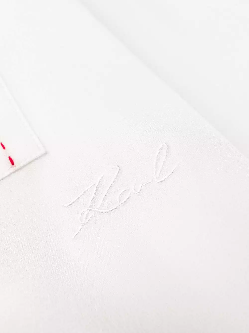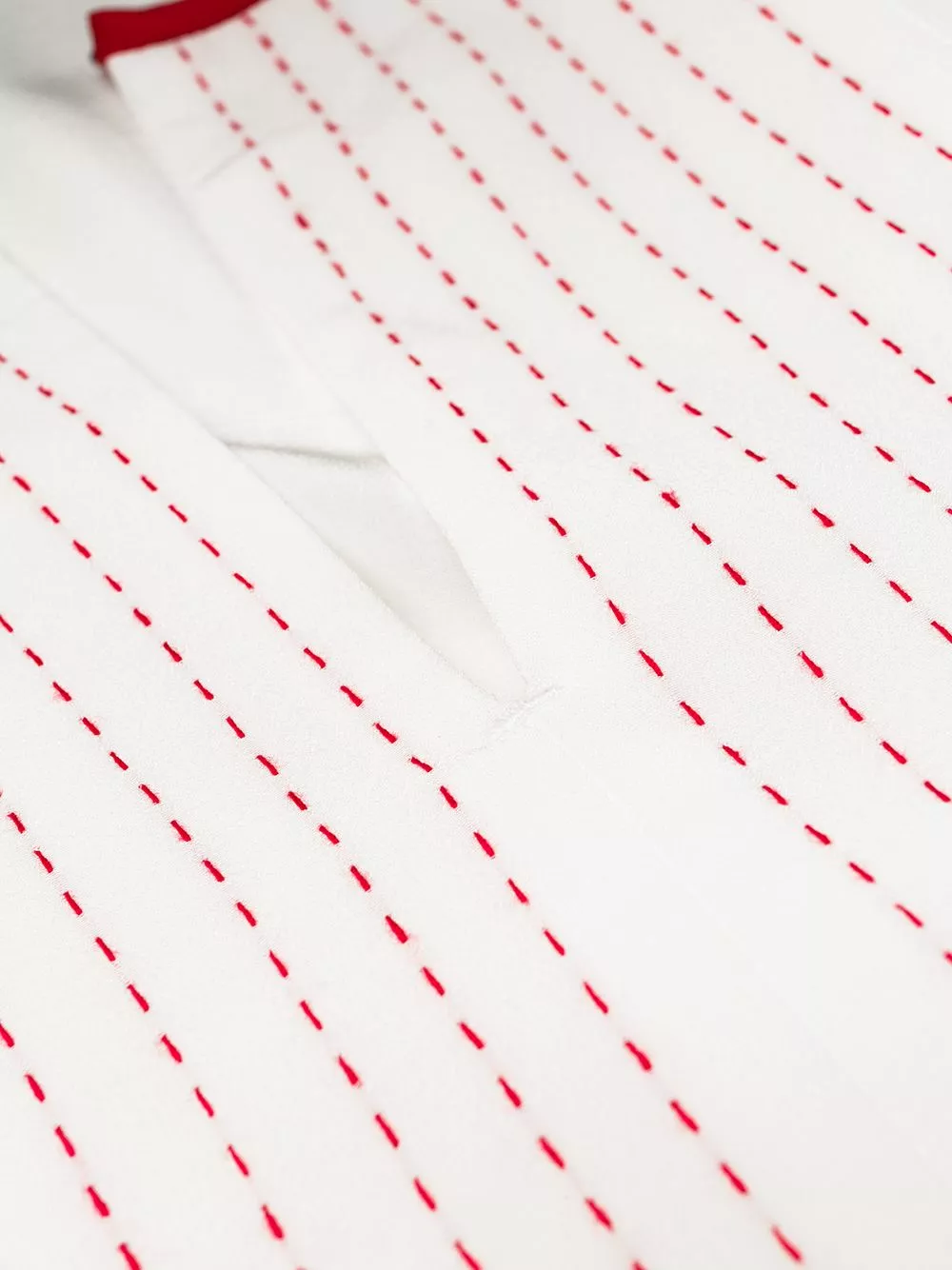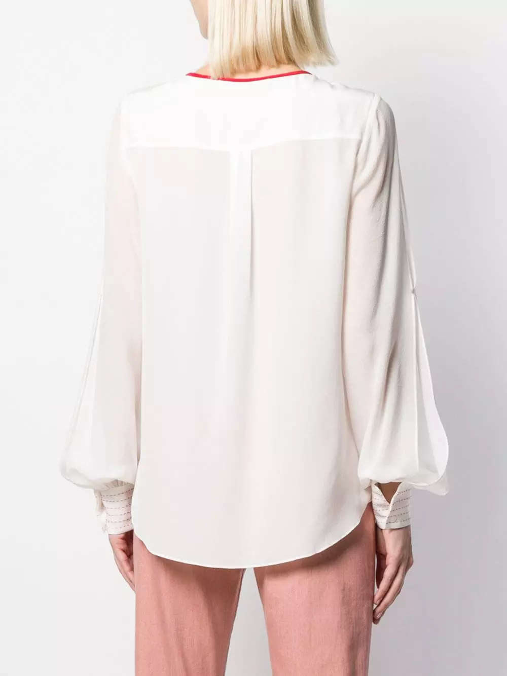 White silk stitched bib detail blouse from Karl Lagerfeld featuring a round neck, long sleeves and a straight hem.