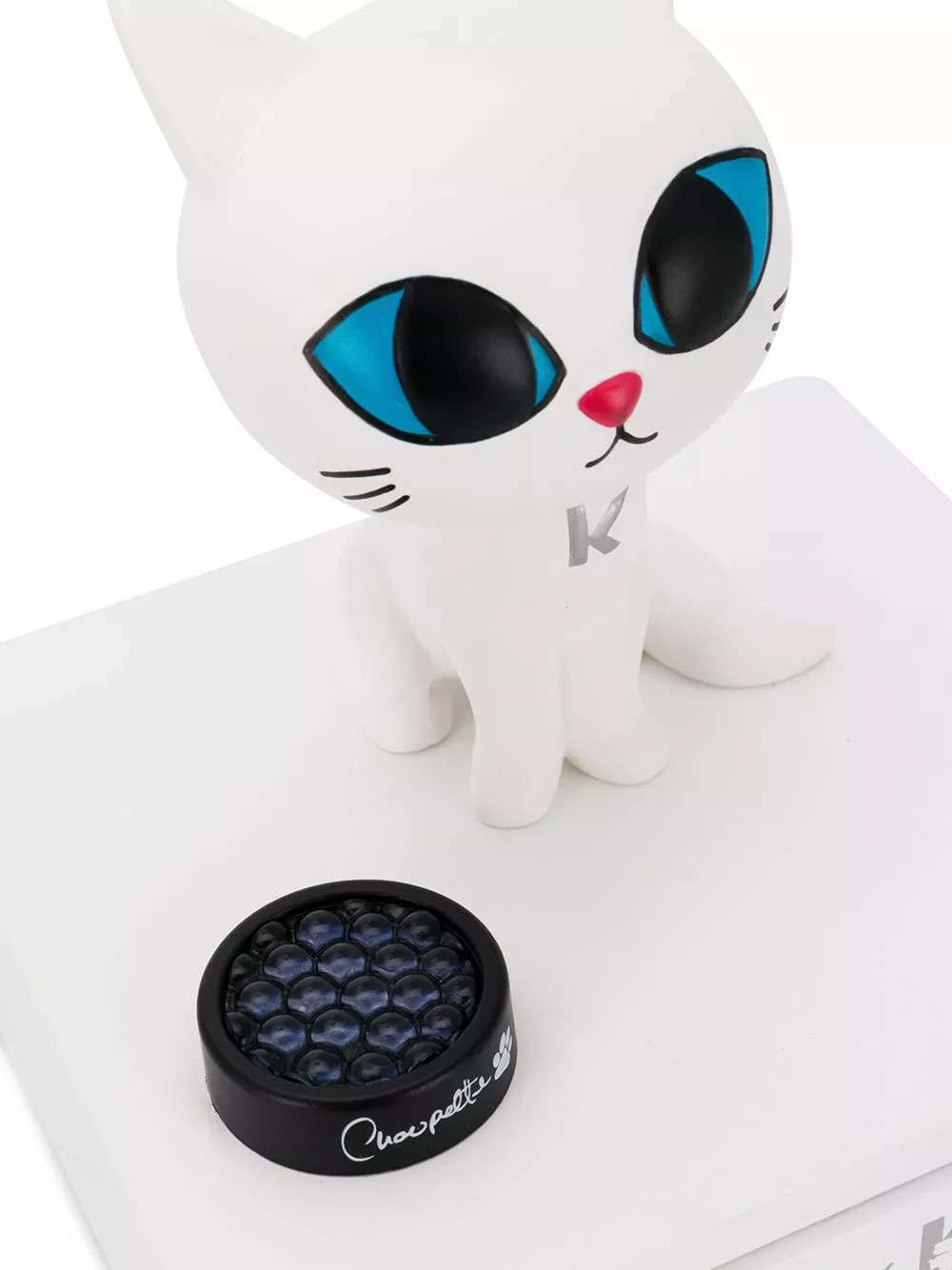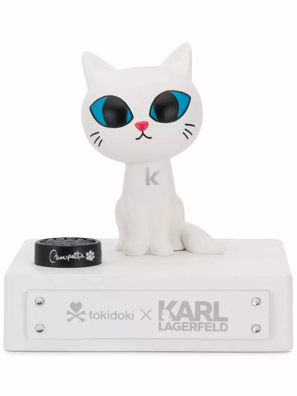 White Toki Doki New Choupette 2018 from Karl Lagerfeld featuring a square stand and a cat toy .