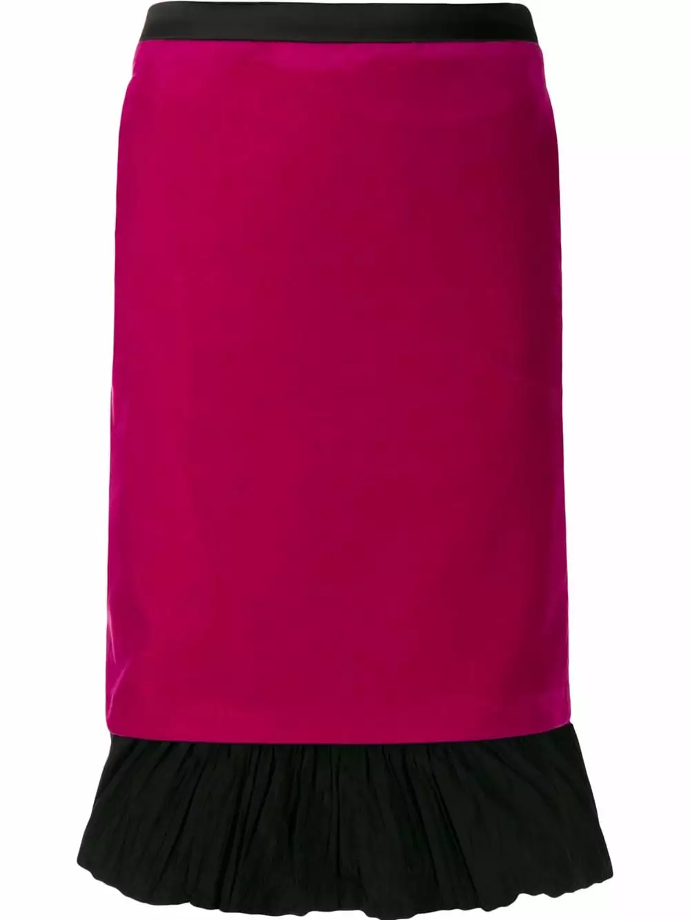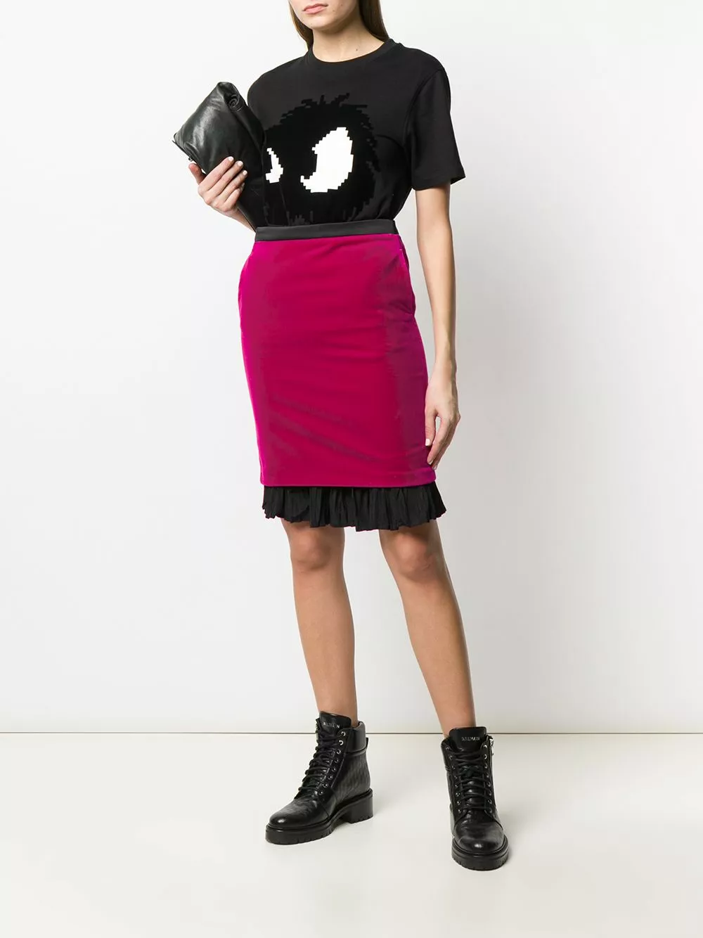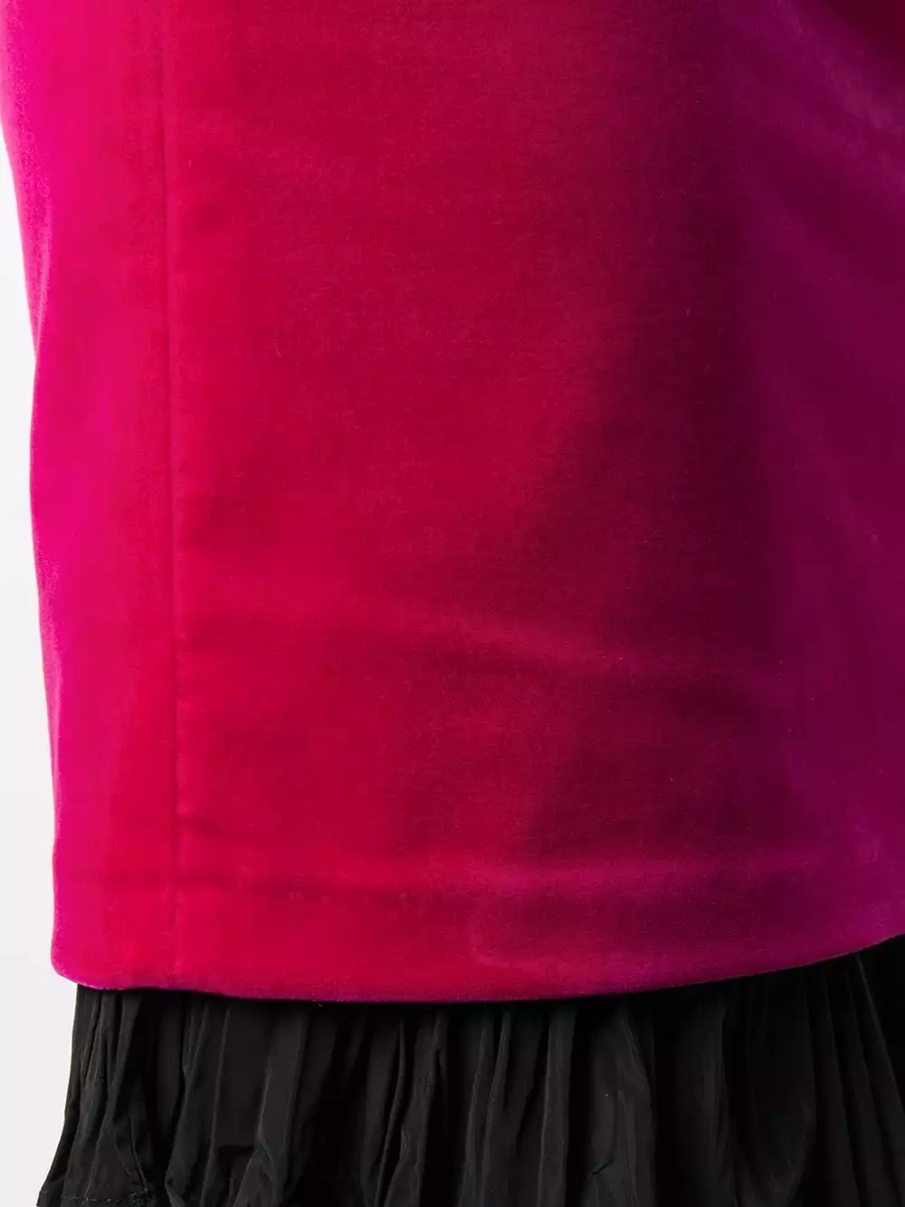Pink x Carine Roitfeld velvet skirt from Karl Lagerfeld featuring a cinched waist, a straight fit, ruched details, a layered design and a concealed rear zip fastening.